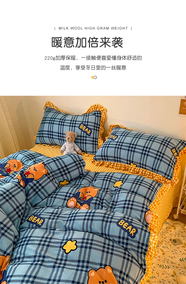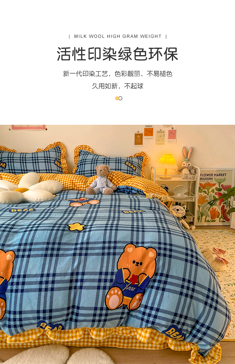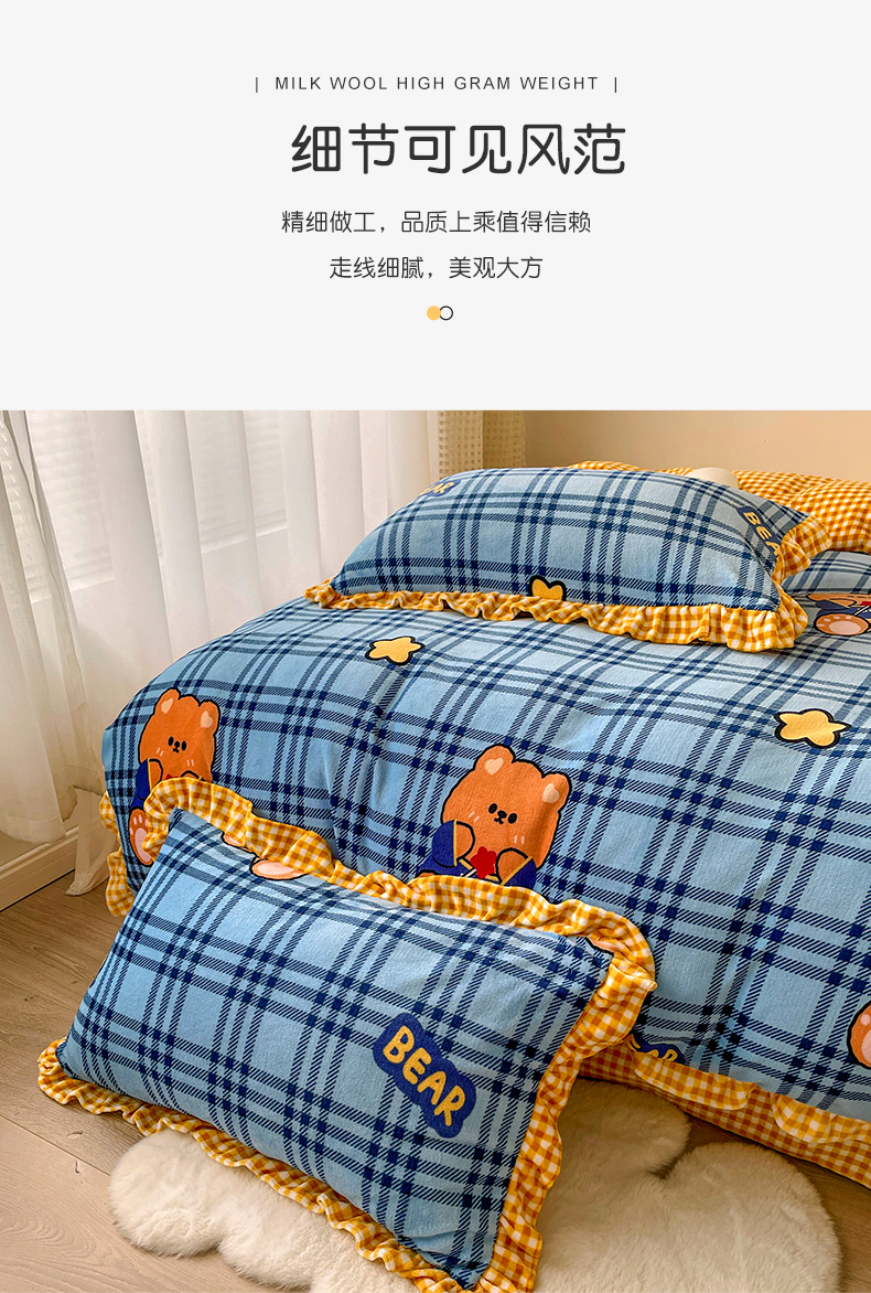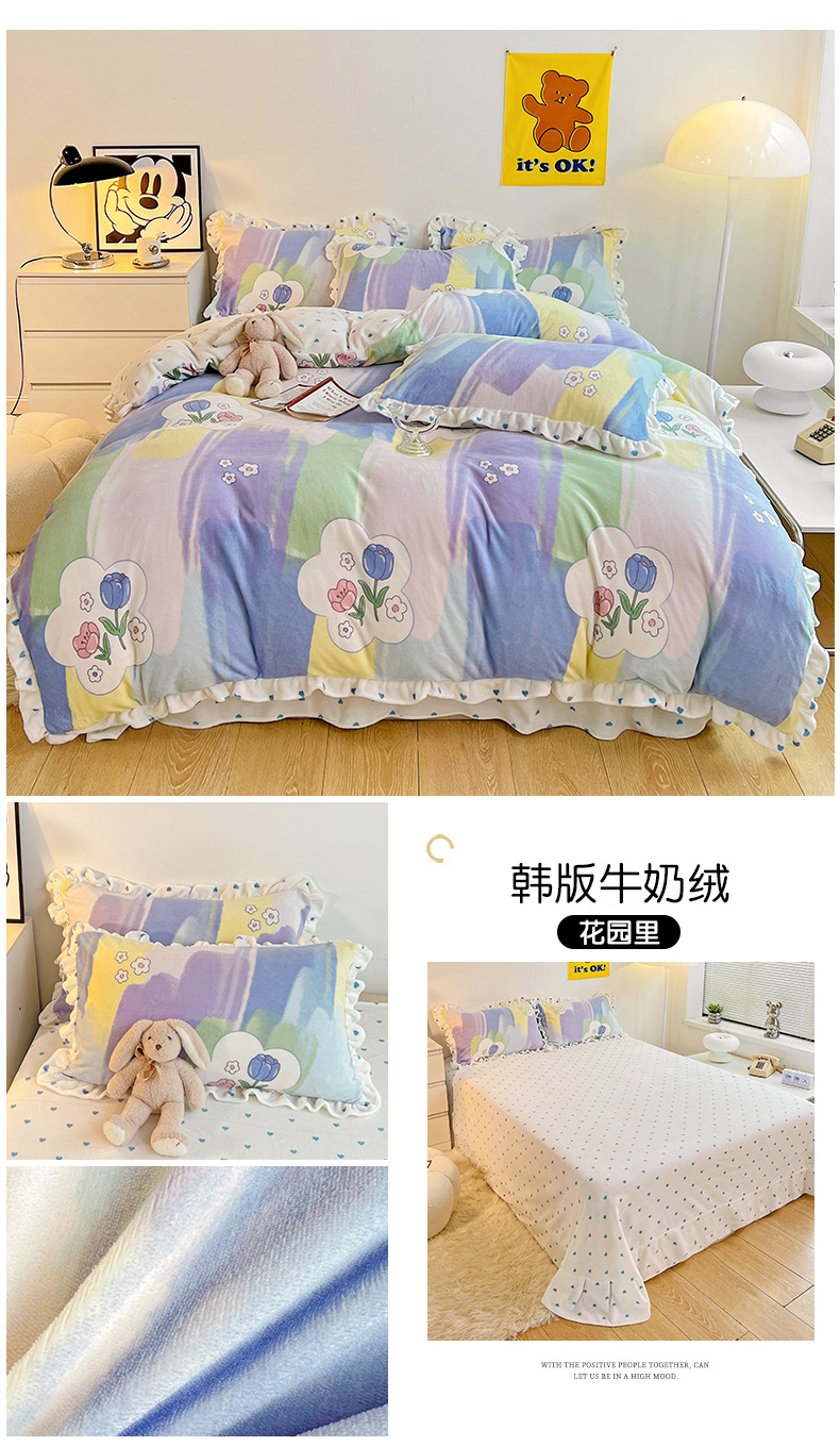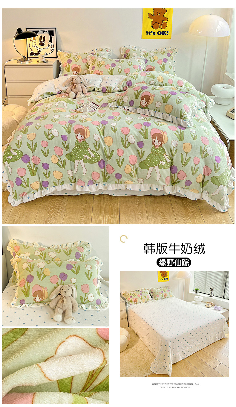 商品名称:(总)梵克保罗 2025秋冬新品韩版印花牛奶绒花边款四件套