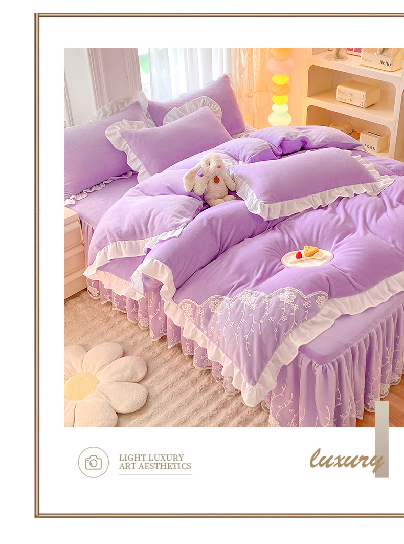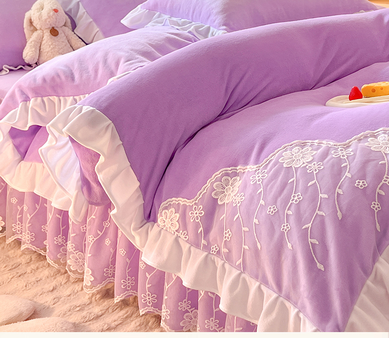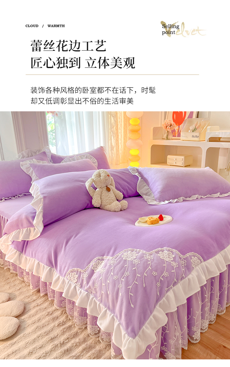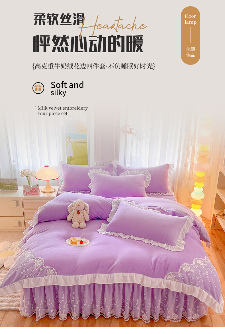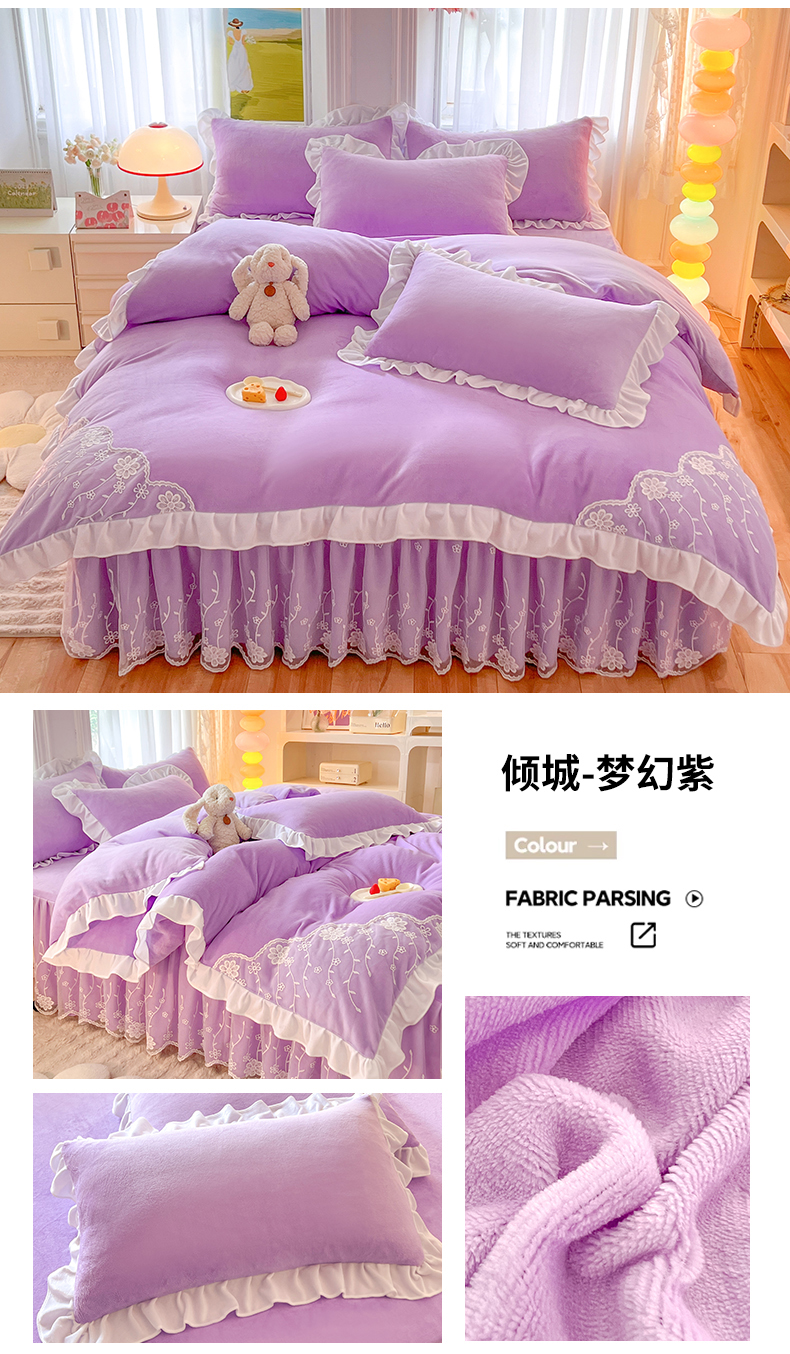 后庭寝室 2025新款牛奶绒床裙四件套倾城 倾城-梦幻紫