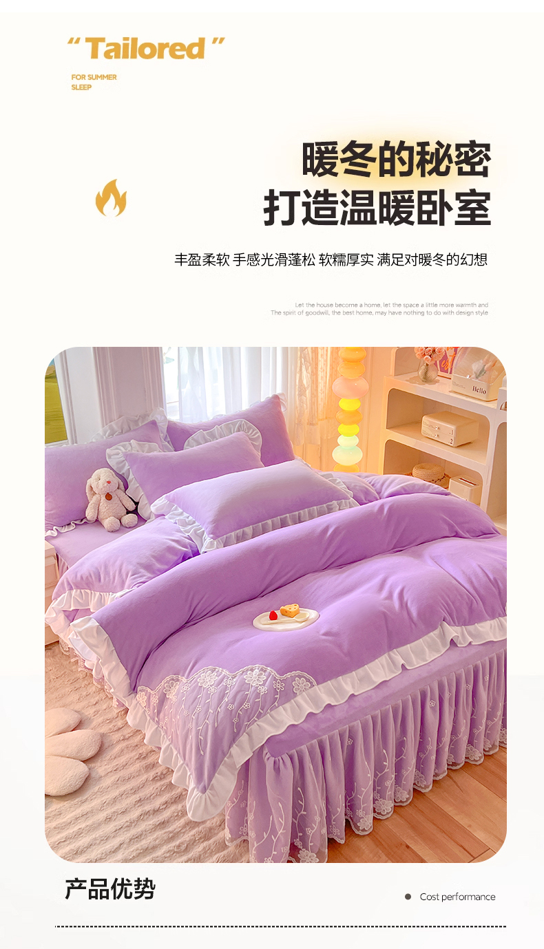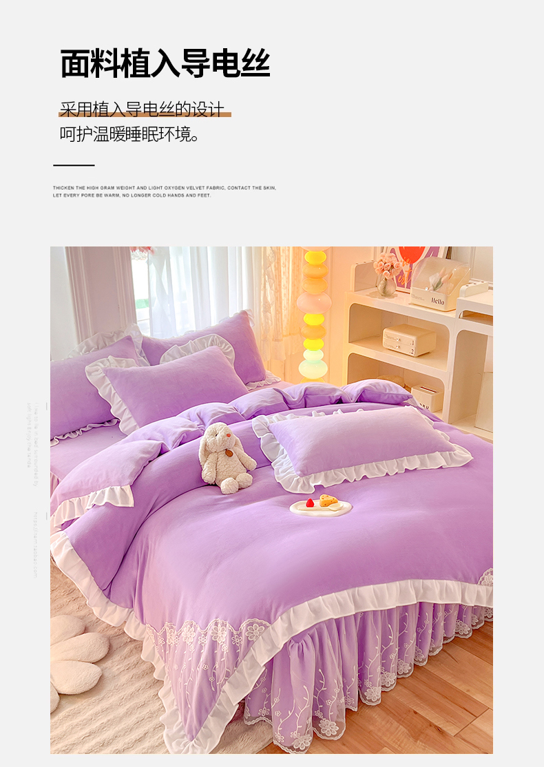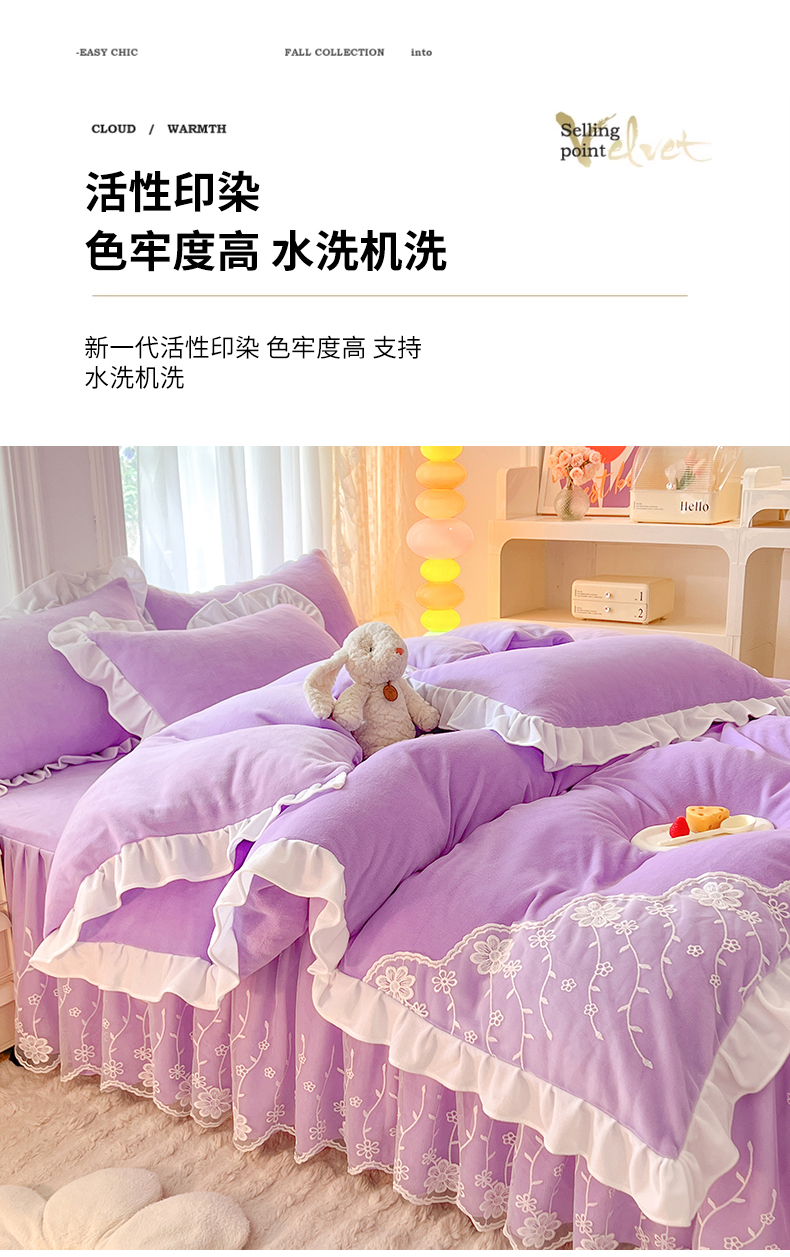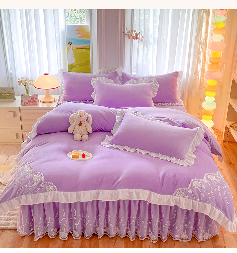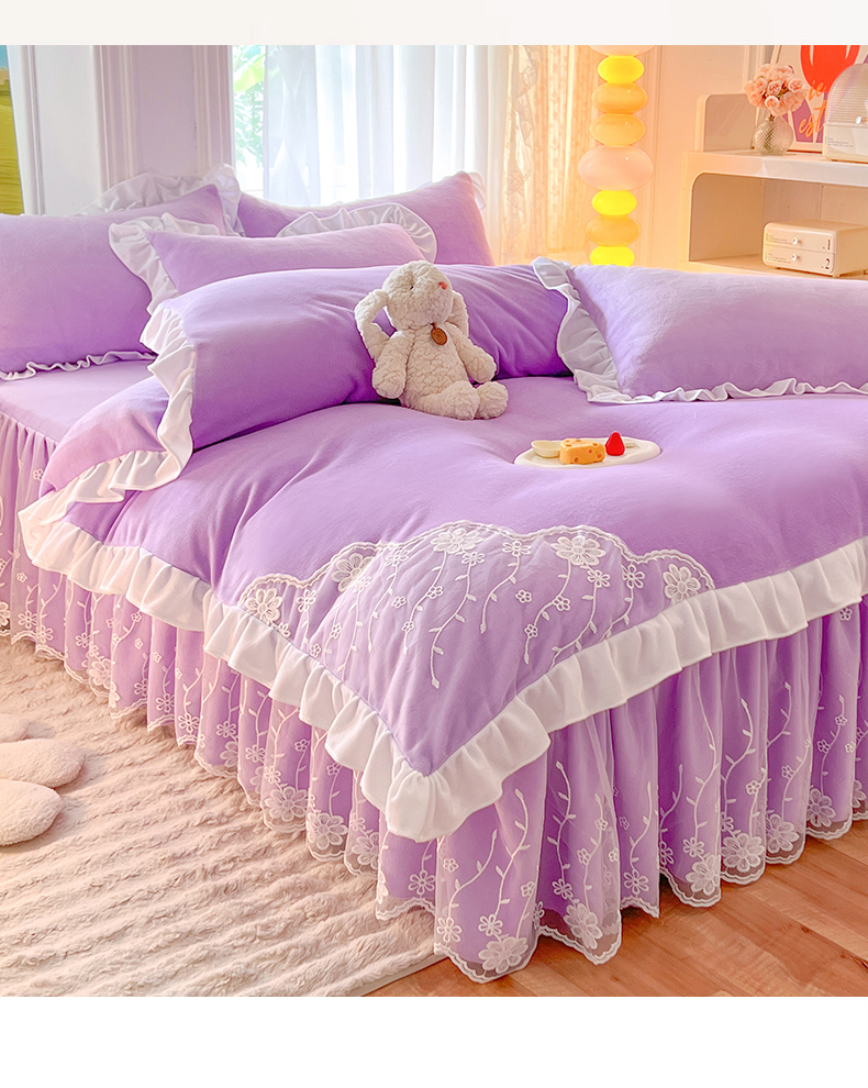 后庭寝室 2025新款牛奶绒床裙四件套倾城 倾城-梦幻紫