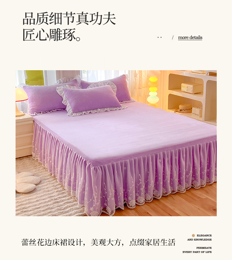 商品名称:后庭寝室 2025新款牛奶绒床裙四件套倾城 倾城-梦幻紫