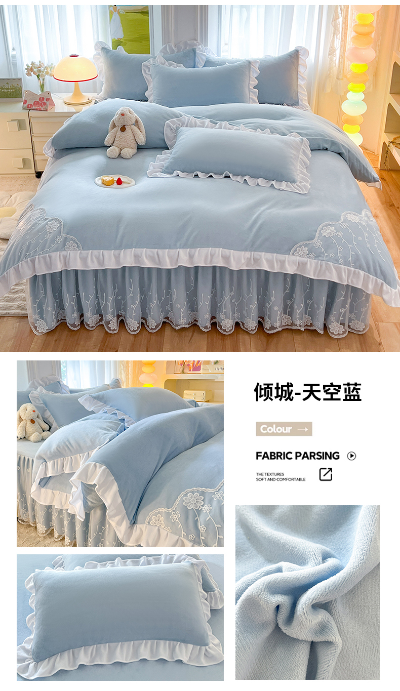 (总)后庭寝室 2025新款韩式花边牛奶绒四件套-香香公主系列,香香公主-嫩玉,香香公主-粉色,香香公主-豆沙,香香公主-粉玉,香香公主-湖蓝,香香公主-暖黄,香香公主-浅灰,香香公主-浅蓝,香香公主-浅紫,香香公主-玉色