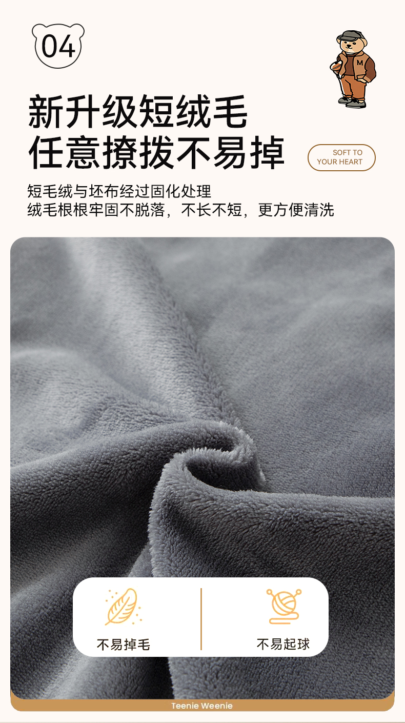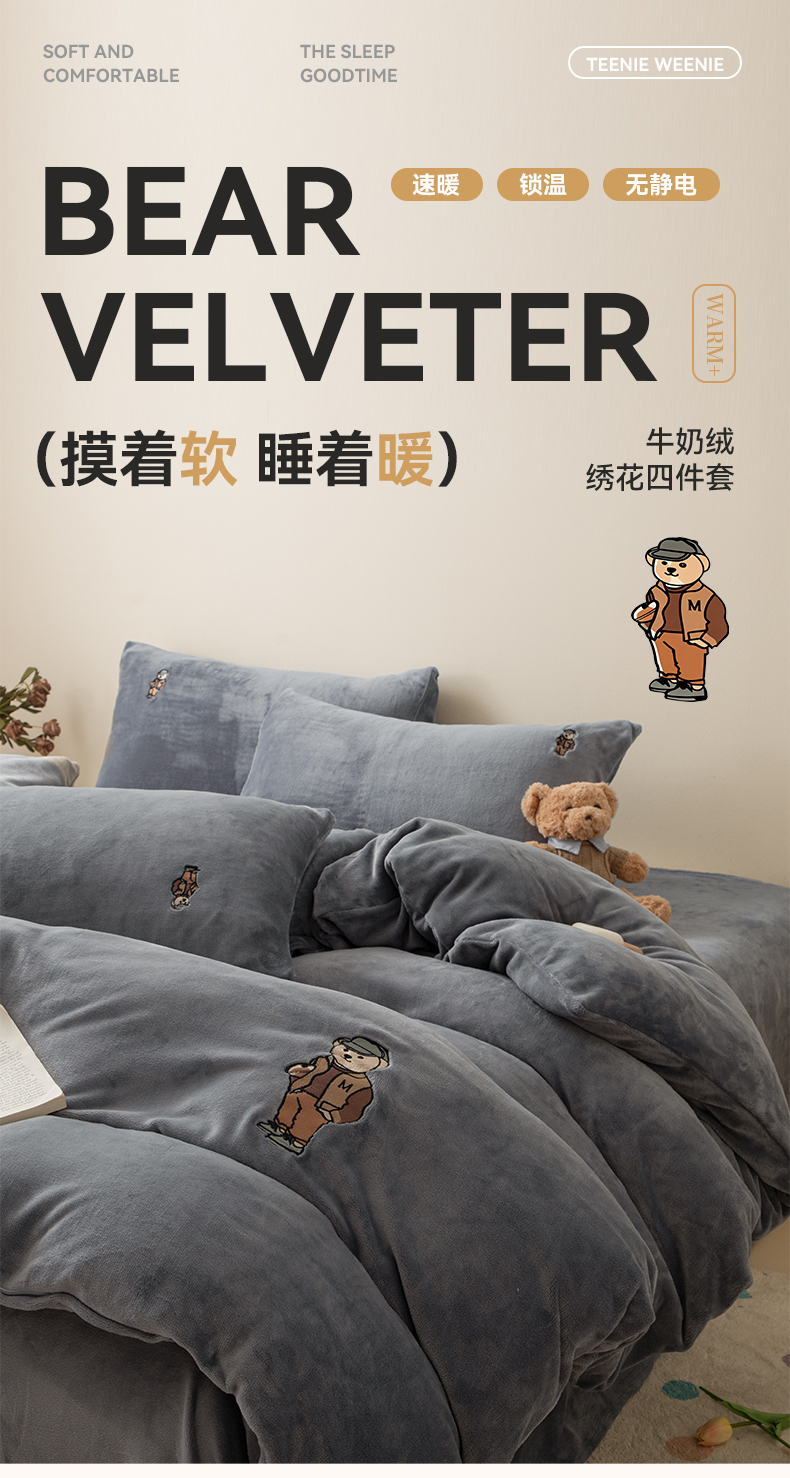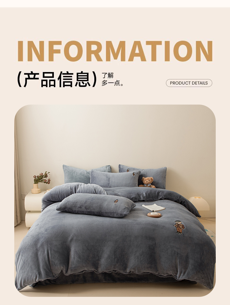 商品名称:恋绒家纺 2025新款小熊牛奶绒四件套卡通被套宿舍学生三件套 小熊先生-高级灰