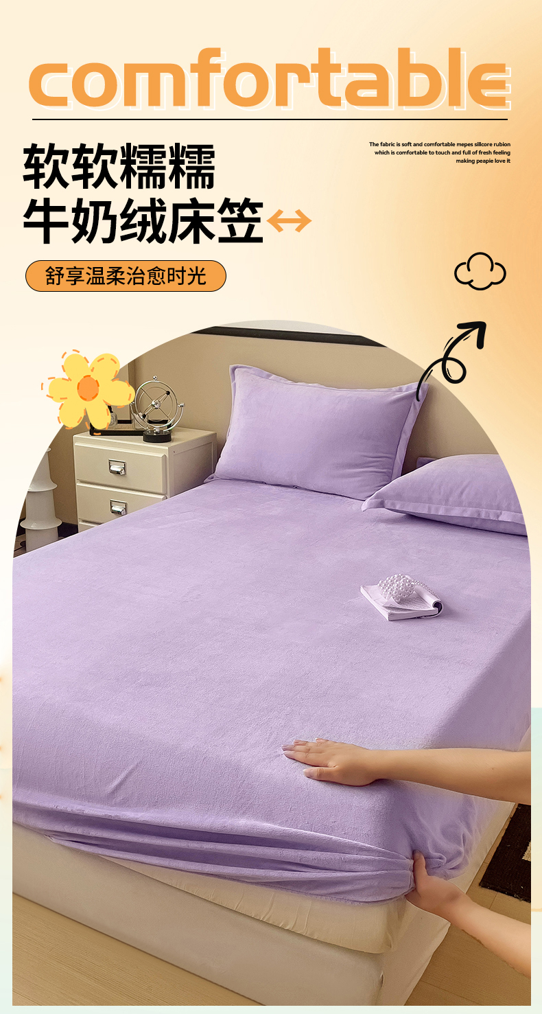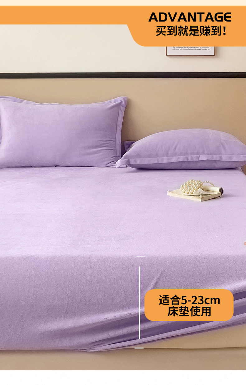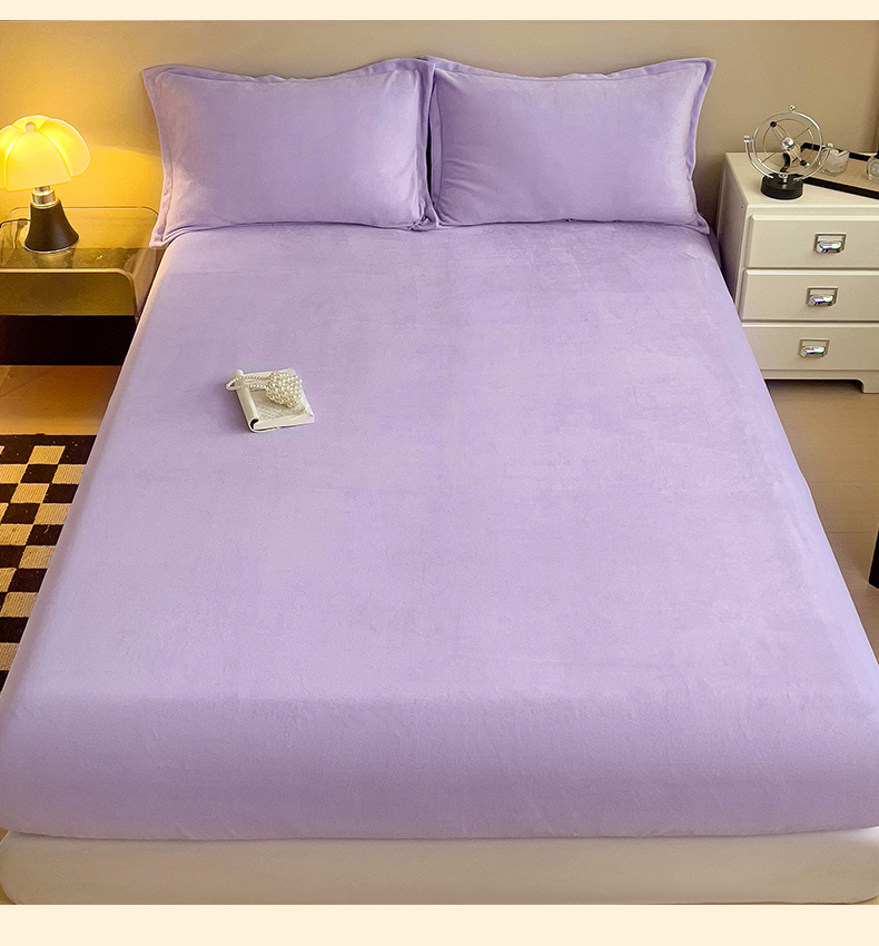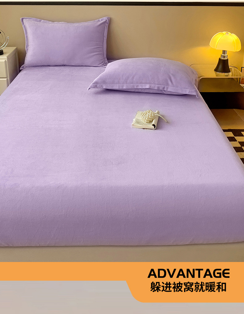 名兮家居 2025新款高克重加厚纯色牛奶绒床笠床单 素色-丁香紫