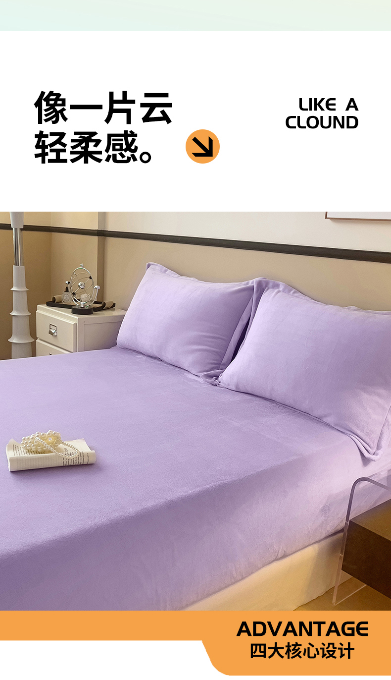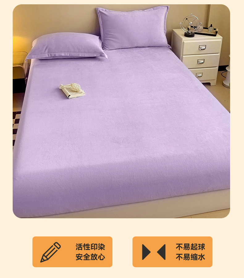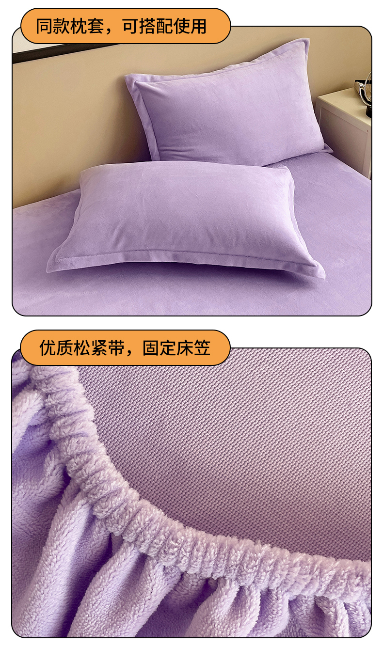 • 91家纺网 家纺一手货源 找家纺 名兮家居 2025新款高克重加厚纯色牛奶绒床笠床单 素色-丁香紫