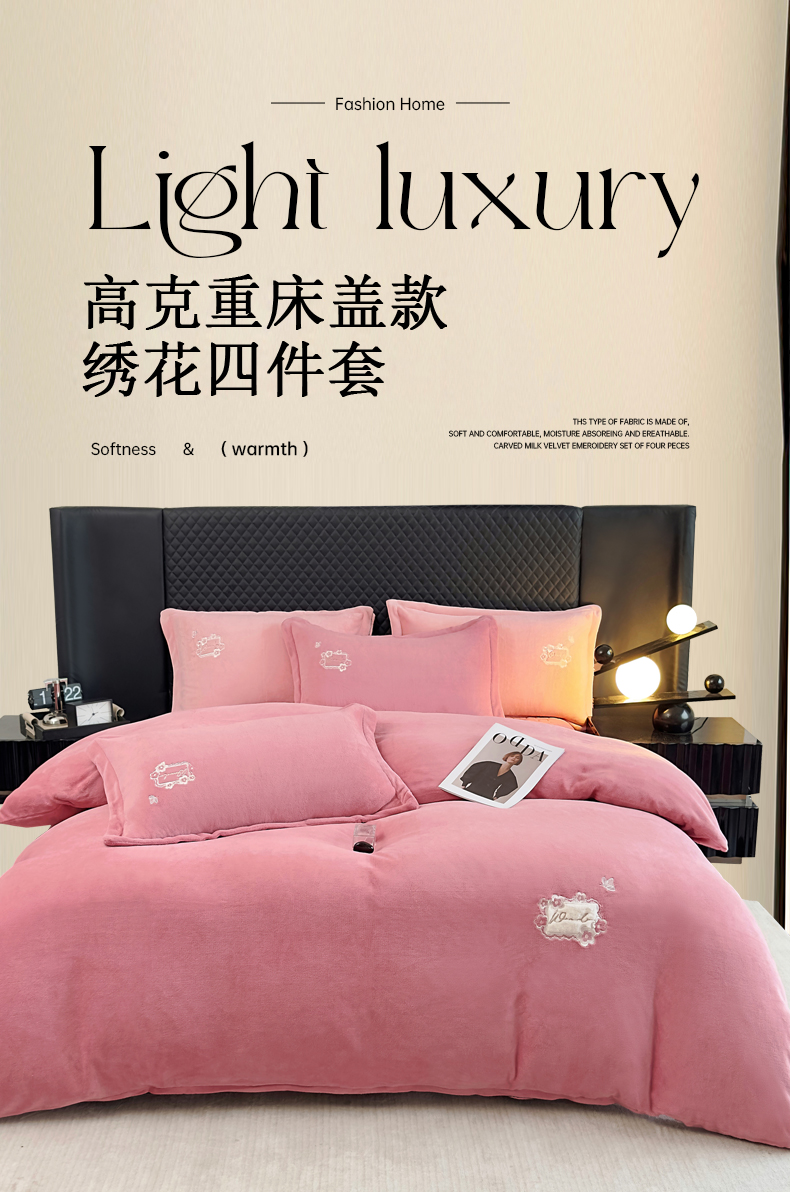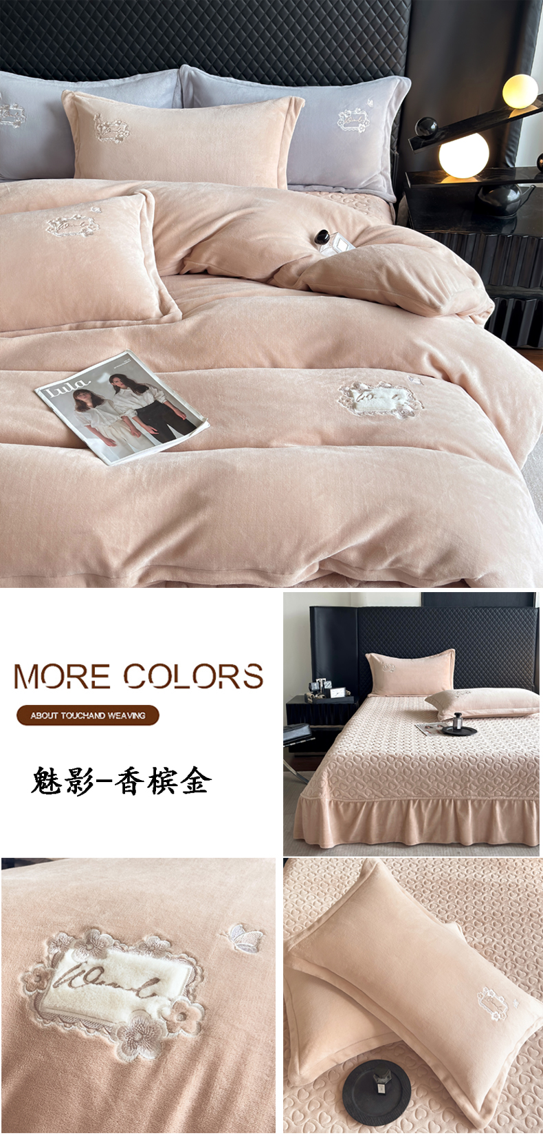 (总)琉宿家纺 2025新款牛奶绒床盖款绣花四件套,魅影-芙蓉绿,魅影-玫瑰粉,魅影-时尚灰,魅影-香槟金,魅影-月光粉,魅影-紫秋兰
