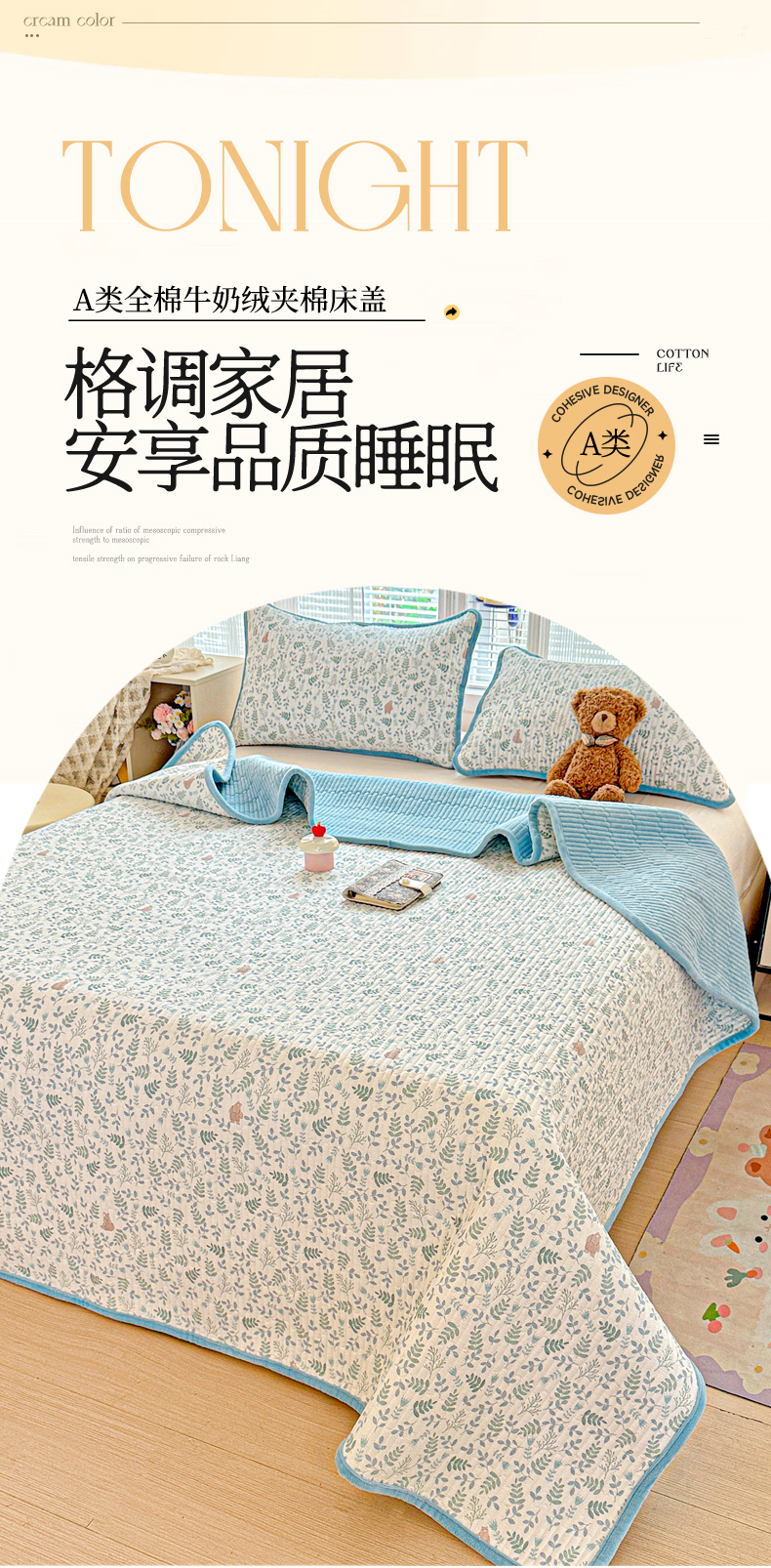 恒尚居 2025新款全棉牛奶绒床盖四季可用纯棉夹棉床单床褥垫三件套-秋冬款系列一 绿野仙踪【A纯棉-B牛奶绒】
