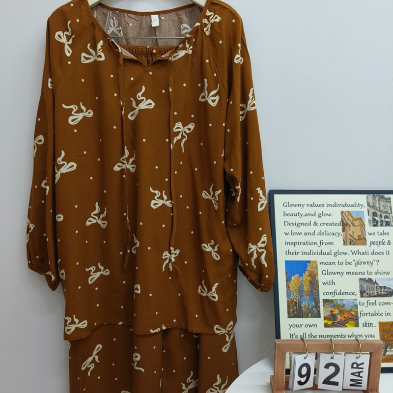 商品名称:妍景家居生活馆 2025新款亲肤舒适绵绸套装 蝴蝶结咖