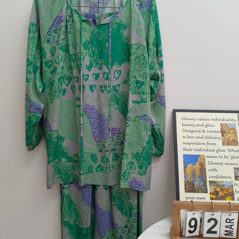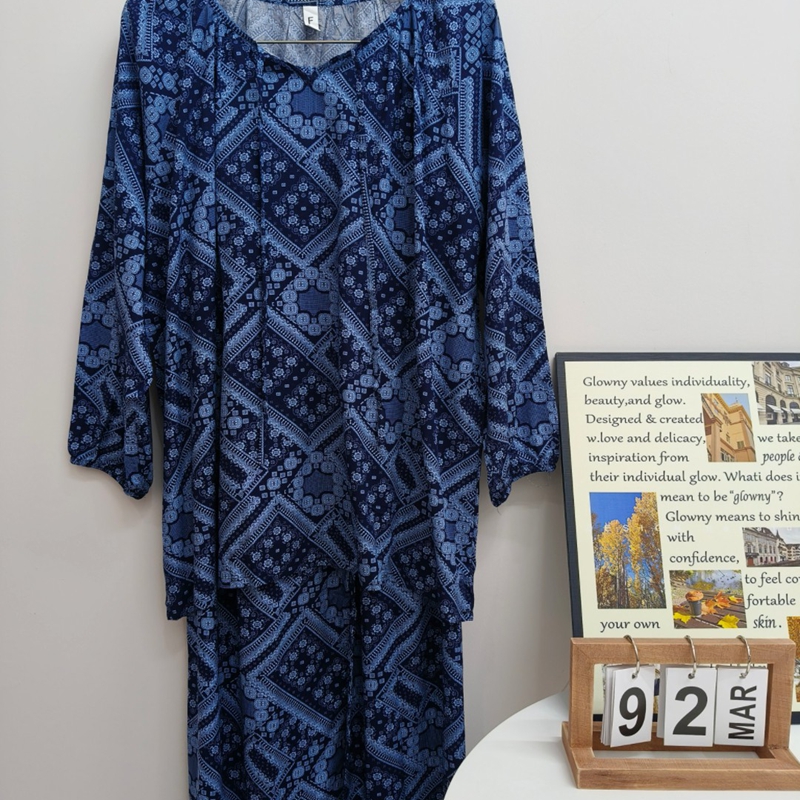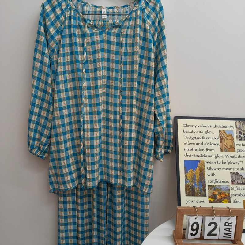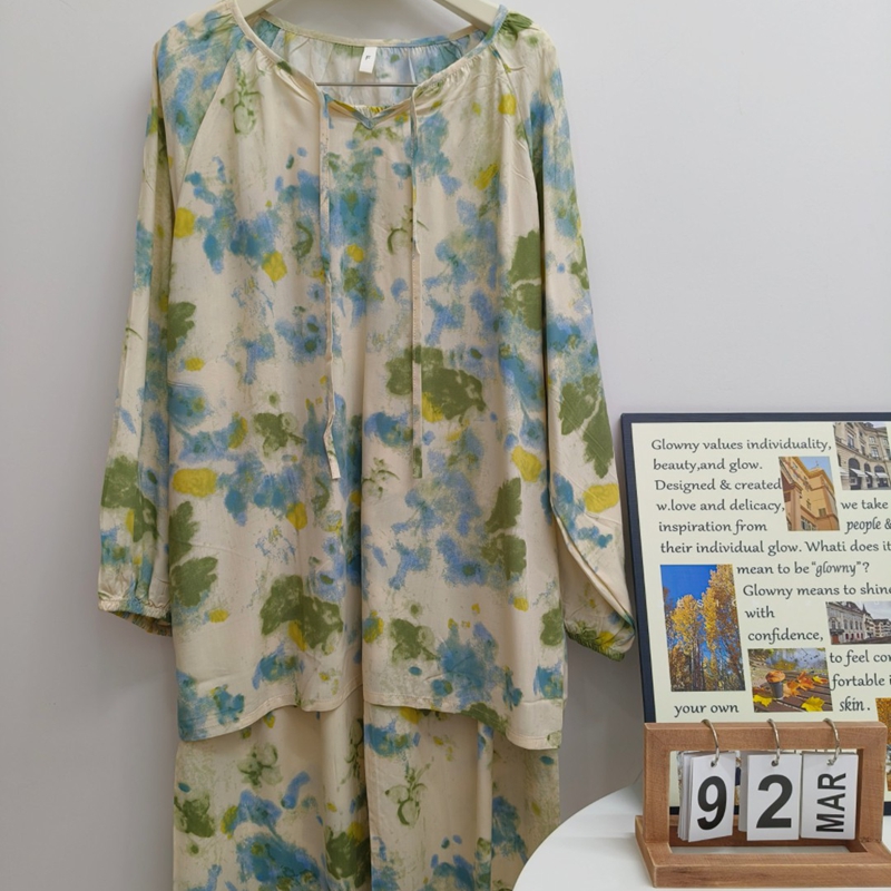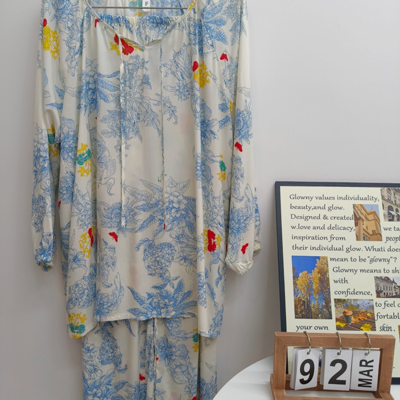 (总)妍景家居生活馆 2026新款针织棉 长袖碎花浅蓝家居服,针织棉 长袖碎花浅蓝