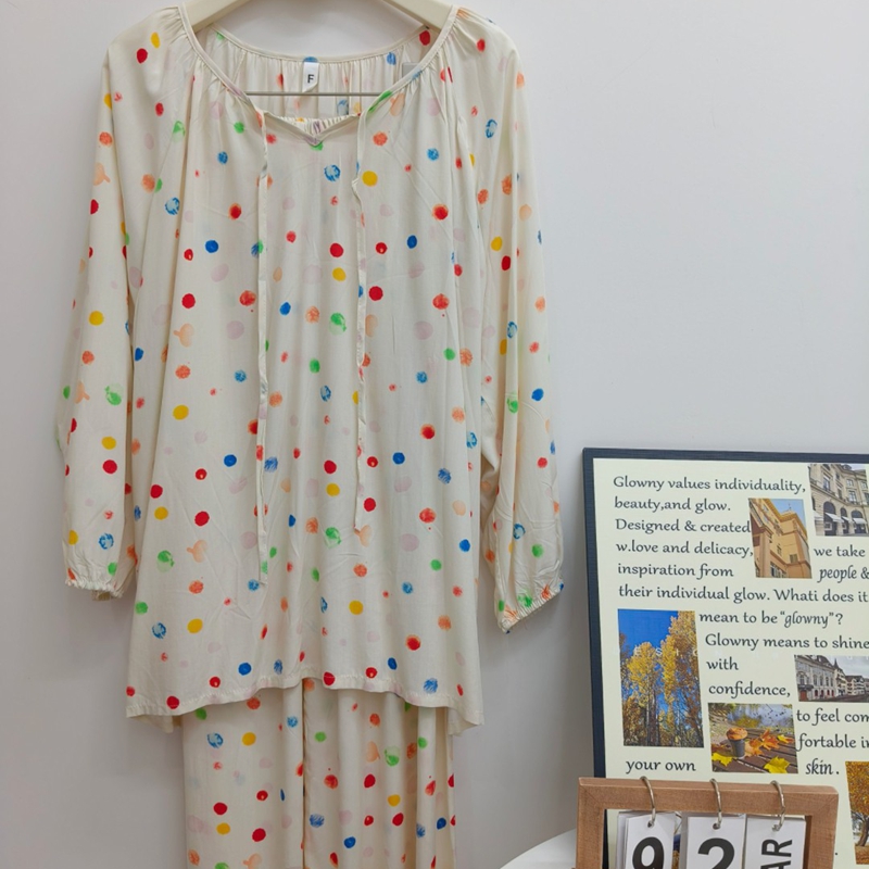 (总)妍景家居生活馆 2026新款木耳边黑波点短长家居服,木耳边黑波点短长