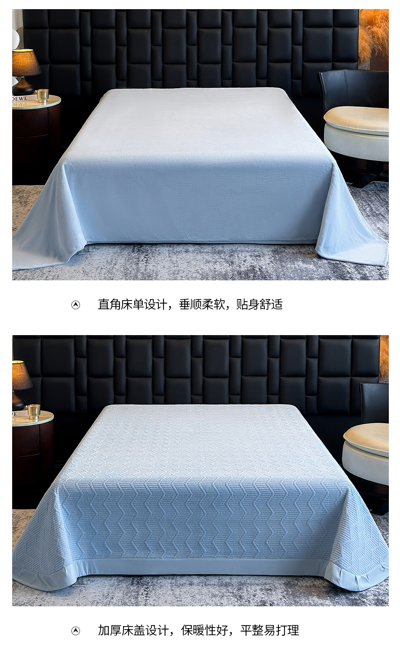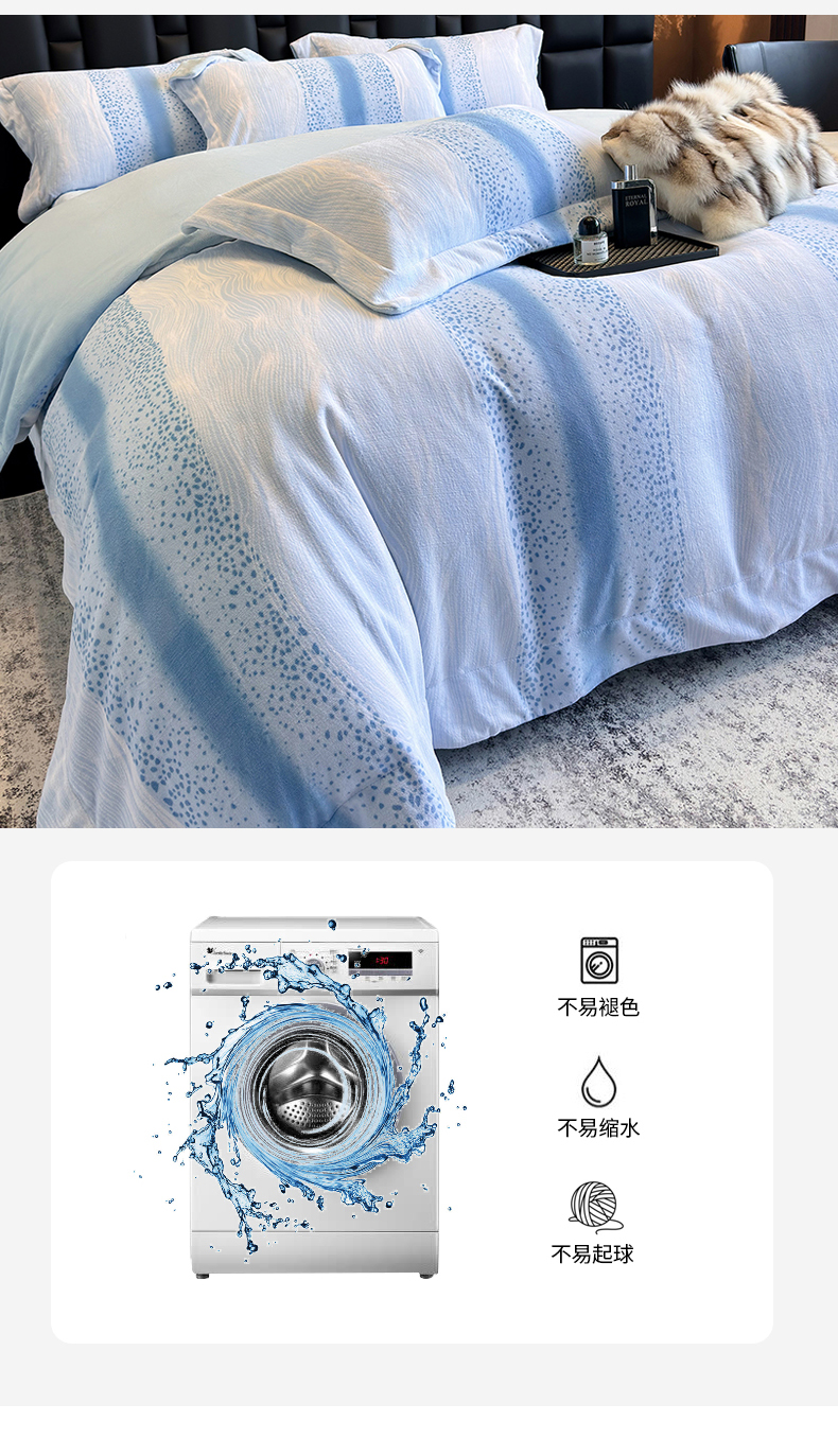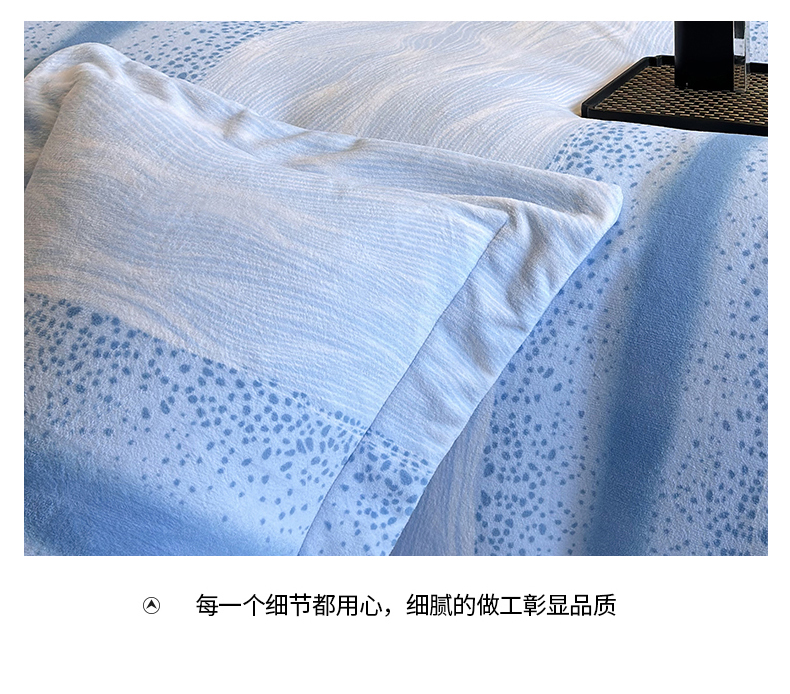 商品名称:新方向 2025新款240克全消光A类数码印花牛奶绒四件套床盖款-情怀 情怀-星月蓝