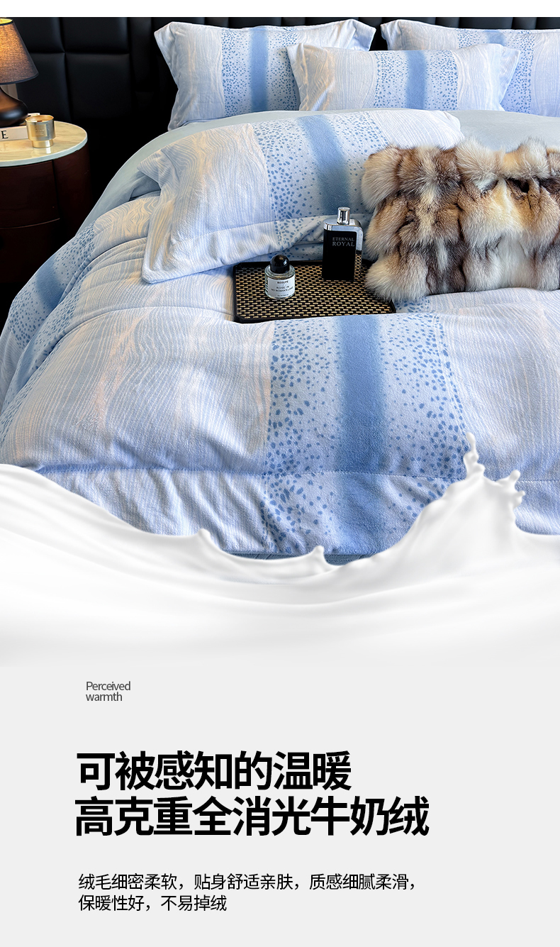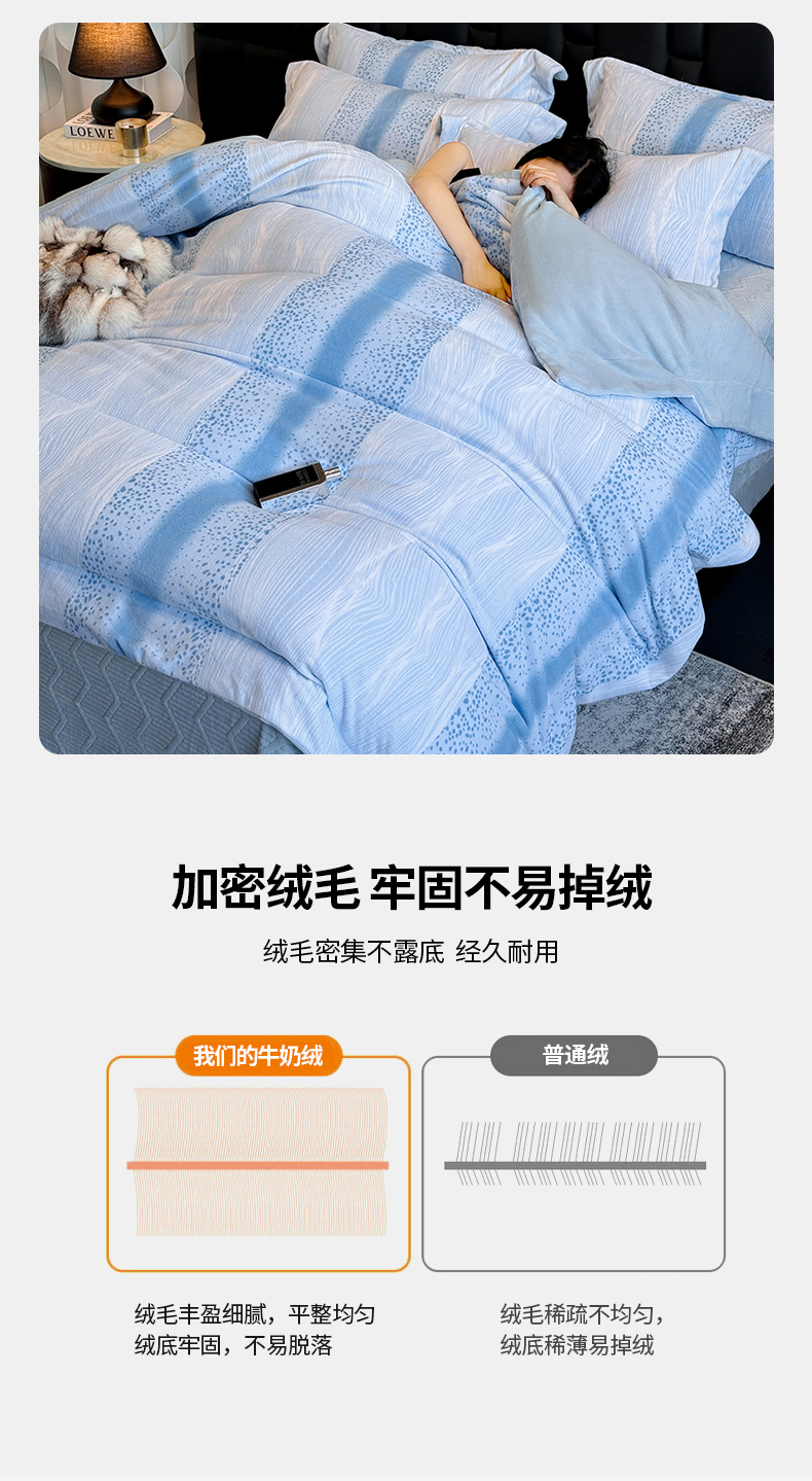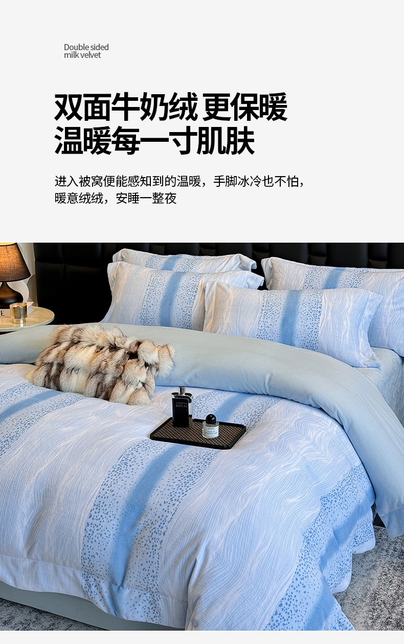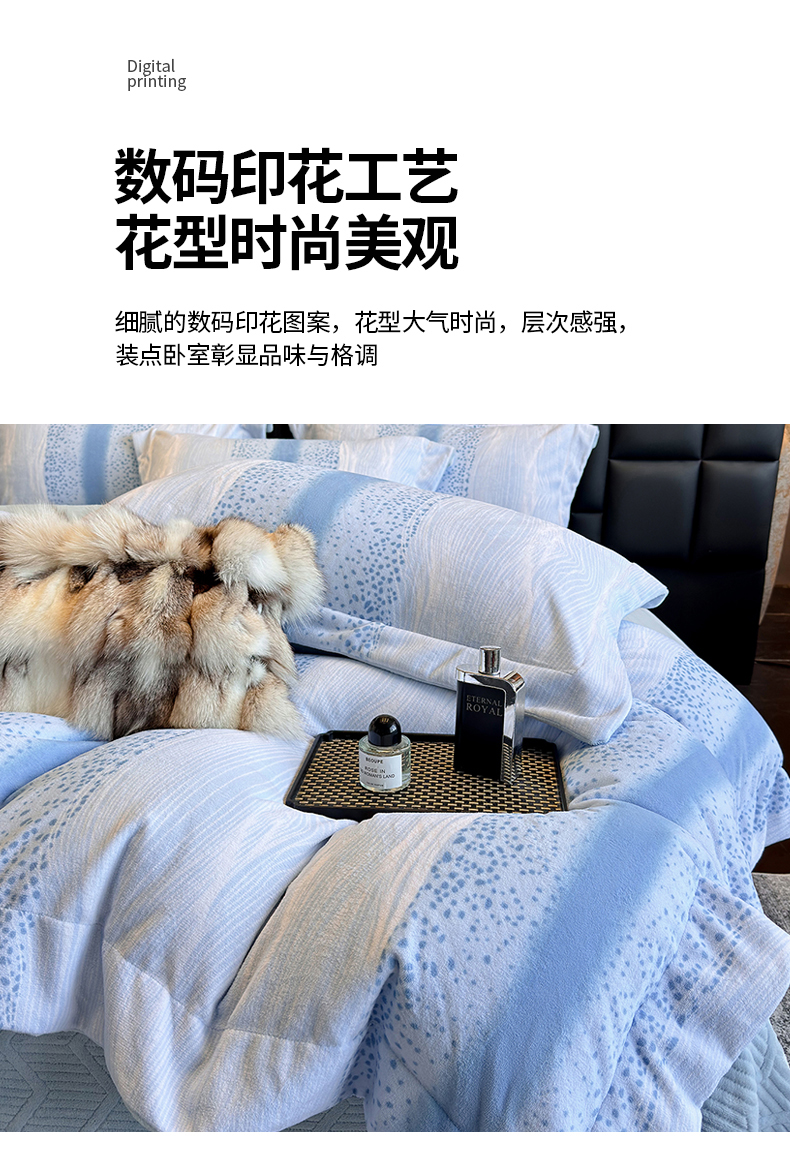 新方向 2025新款240克全消光A类数码印花牛奶绒四件套床盖款-情怀 情怀-星月蓝