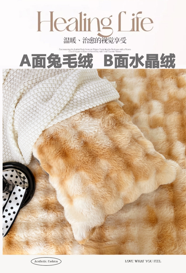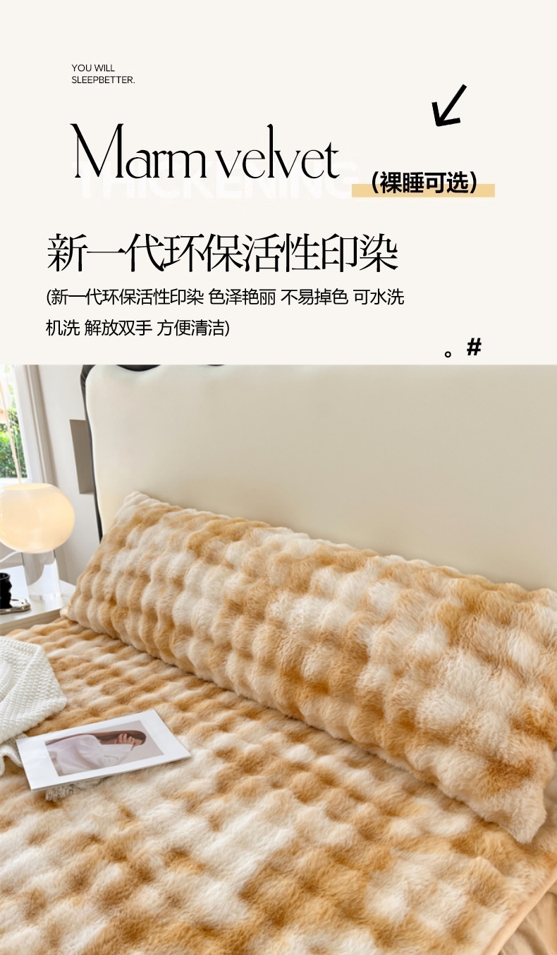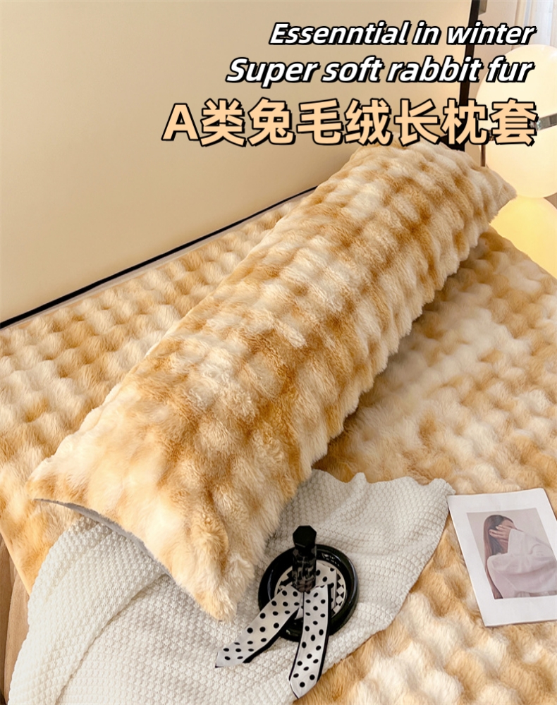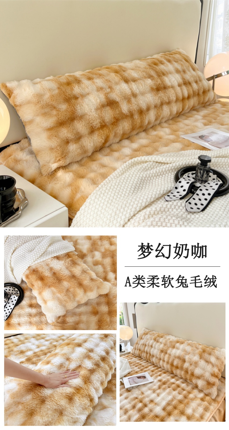 • 91家纺网 家纺一手货源 找家纺 梦舒羽 2025新款兔毛绒双人枕套牛奶绒加长情侣枕芯套雪花绒枕头套 兔毛绒泡泡-梦幻奶咖