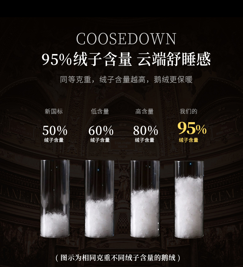 当前位置: 91家纺网 > 商品网购 > 被子 > 羽绒被 > 暖羽屋羽绒馆 2025新款国标95白鹅绒被子 羽绒被芯60s大提花羽绒被 双人鹅绒被2米 婚庆被子 普希斯 棕金