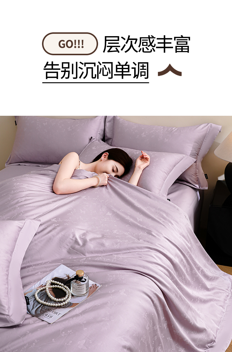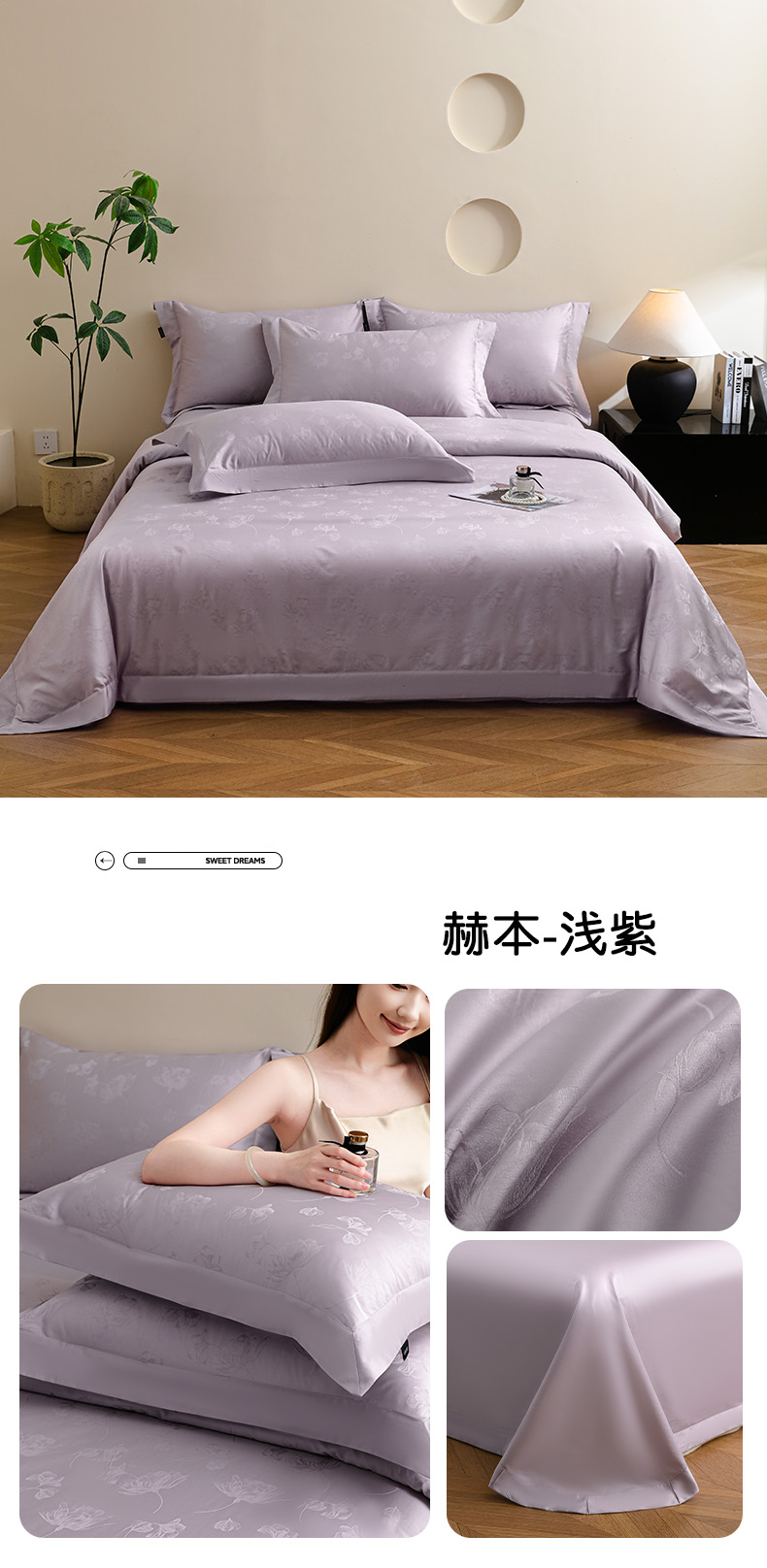 洺兰家居 2025新款60支全棉新疆棉大提花拼角款四件套长绒棉贴边床单床笠床上用品套件专版(控价标准245加大260床笠255) 梦蝶-浅紫