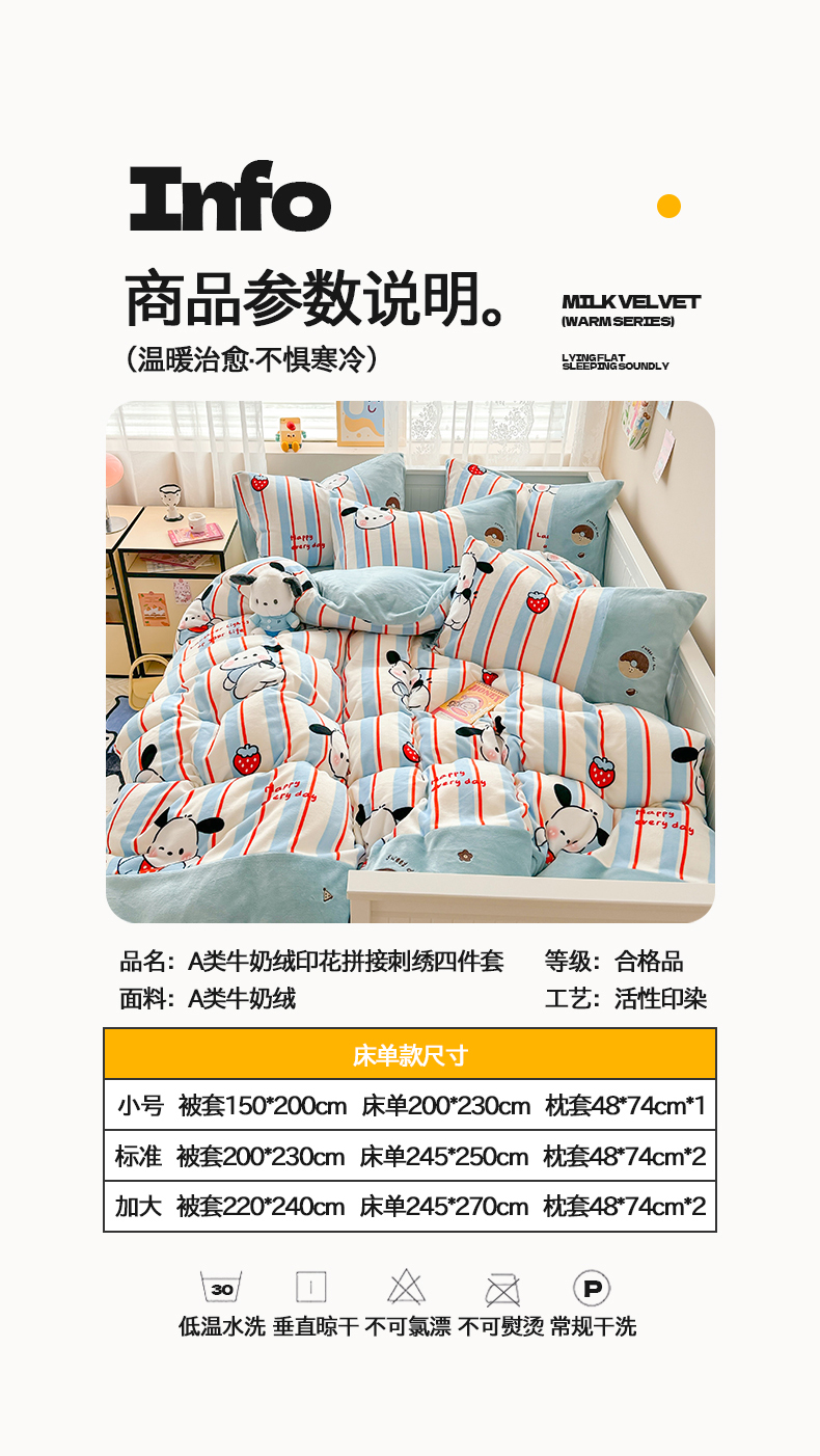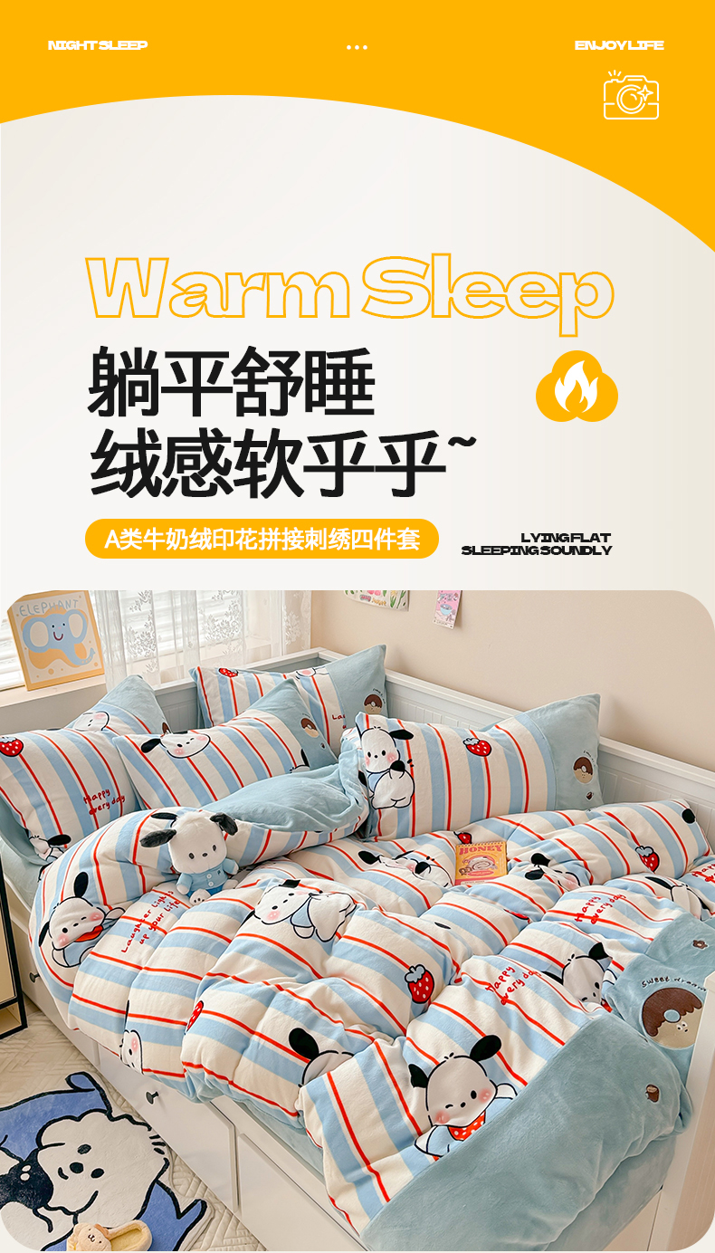 当前位置: 91家纺网 > 商品网购 > 床品套件 > 四件套 > 牛奶绒四件套 > 懒猫家纺 2025新款牛奶绒印花刺绣四件套 草莓小狗