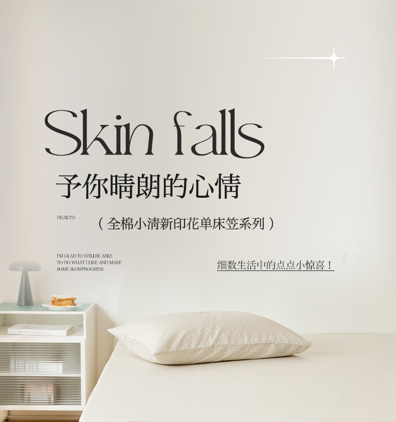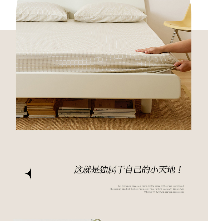 商品名称:EH家居 2025新款全棉小清新印花单床笠-织光系列 茶茶方格