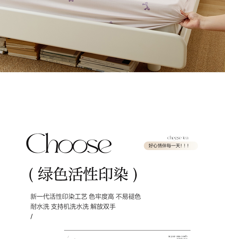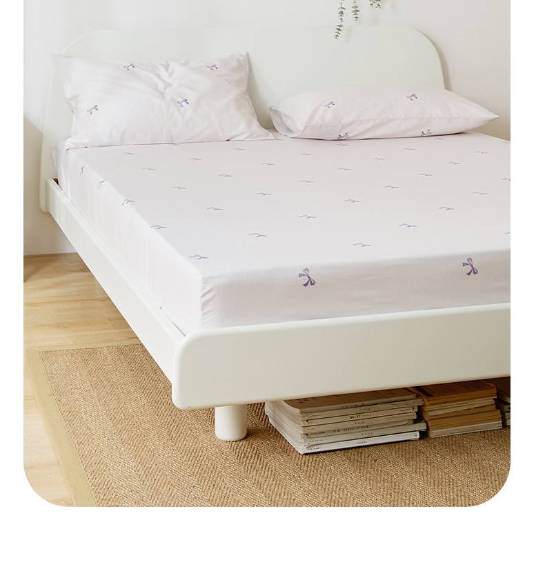 商品名称:EH家居 2025新款全棉小清新印花单床笠-织光系列 紫色蝴蝶结