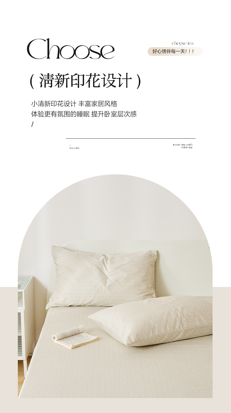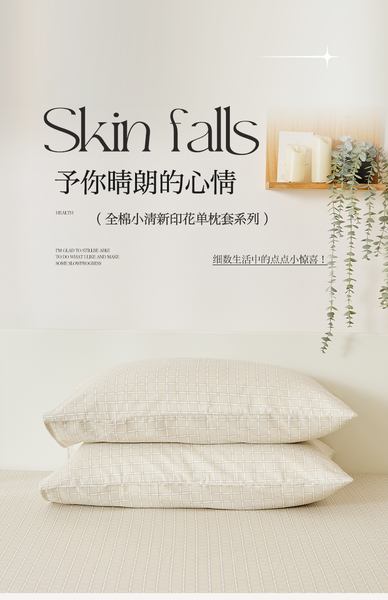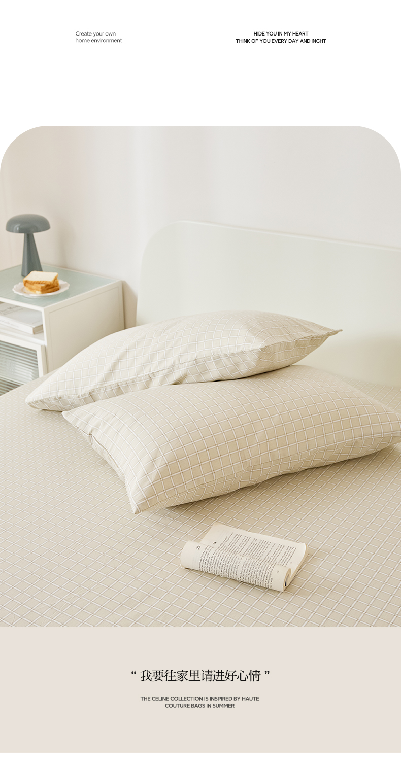 EH家居 2025新款全棉小清新印花单枕套-织光系列 茶茶方格
