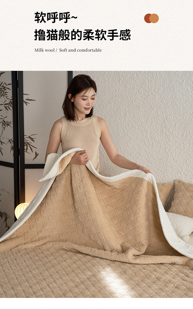 良品汇馆 2025【牛奶绒午睡毯】牛奶绒午睡毯子加厚纯色休闲沙发盖毯 米白