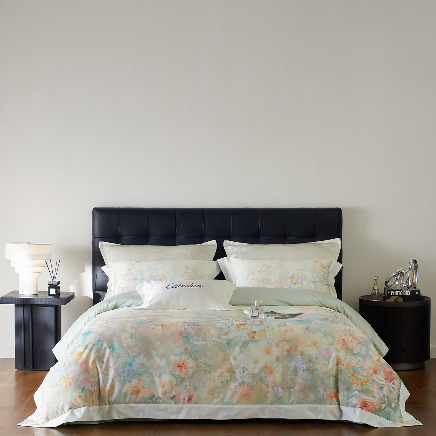 (总)卡巴伦2025新款60兰精天丝夏被四件套,晨露花园粉,晨露花园蓝