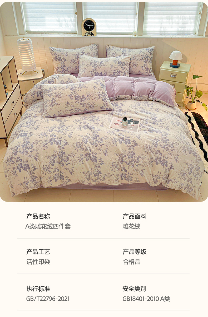 商品名称:优迈 2025新款牛奶绒雕花四件套 紫韵花笺
