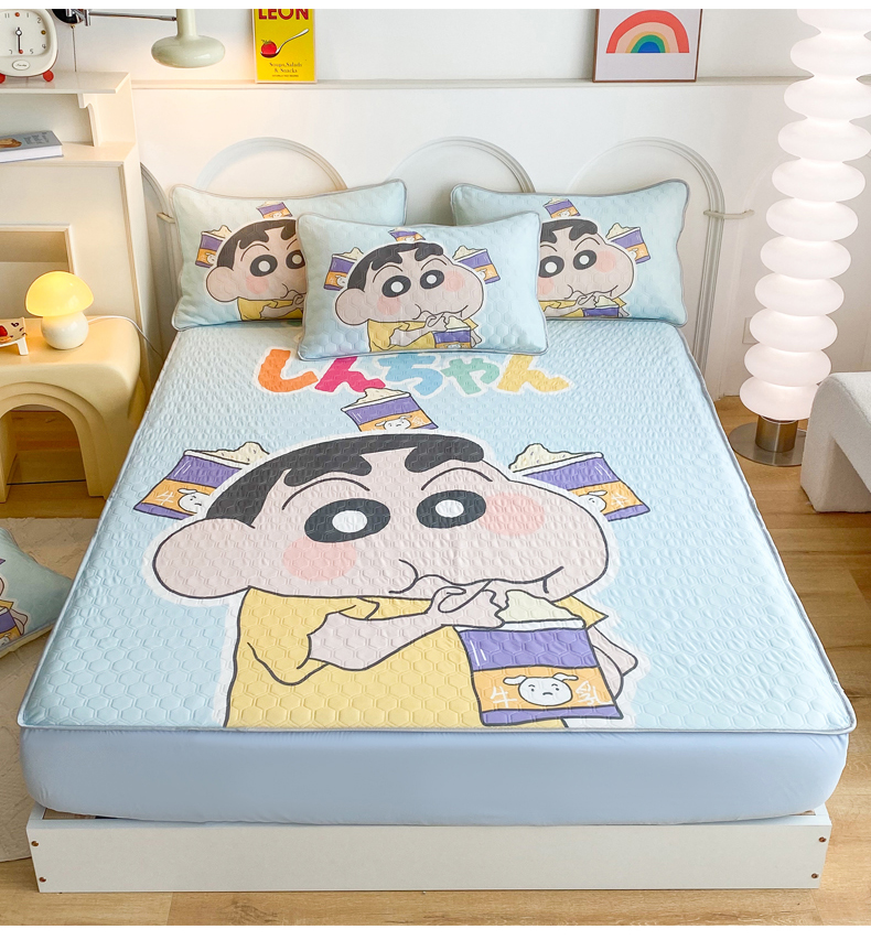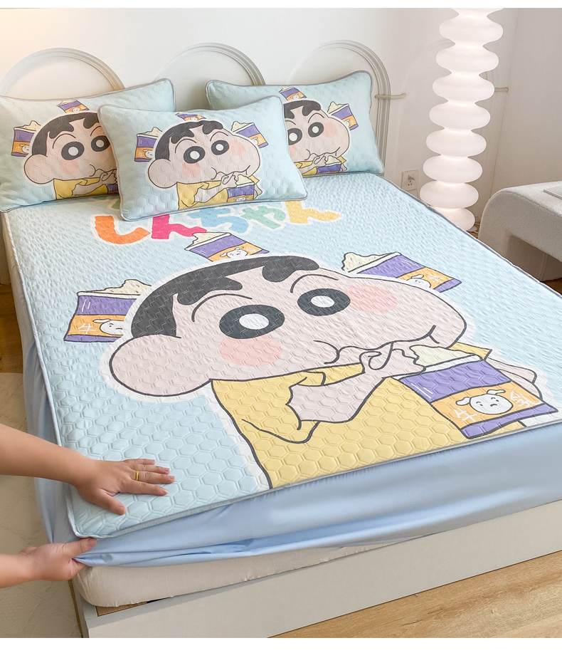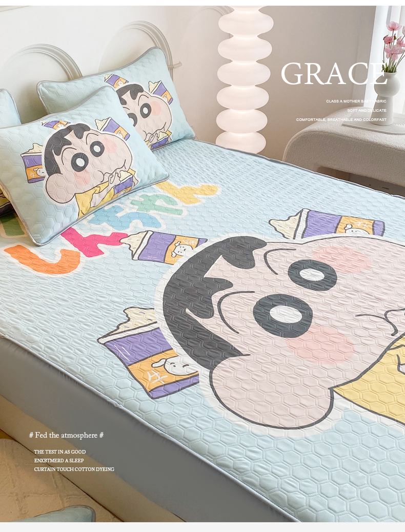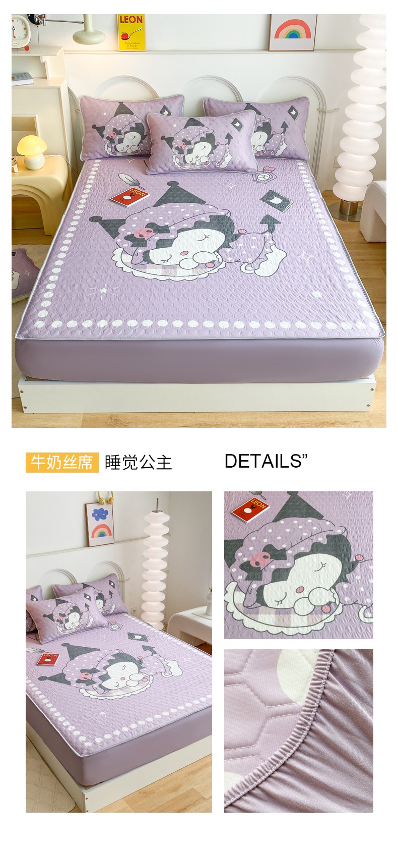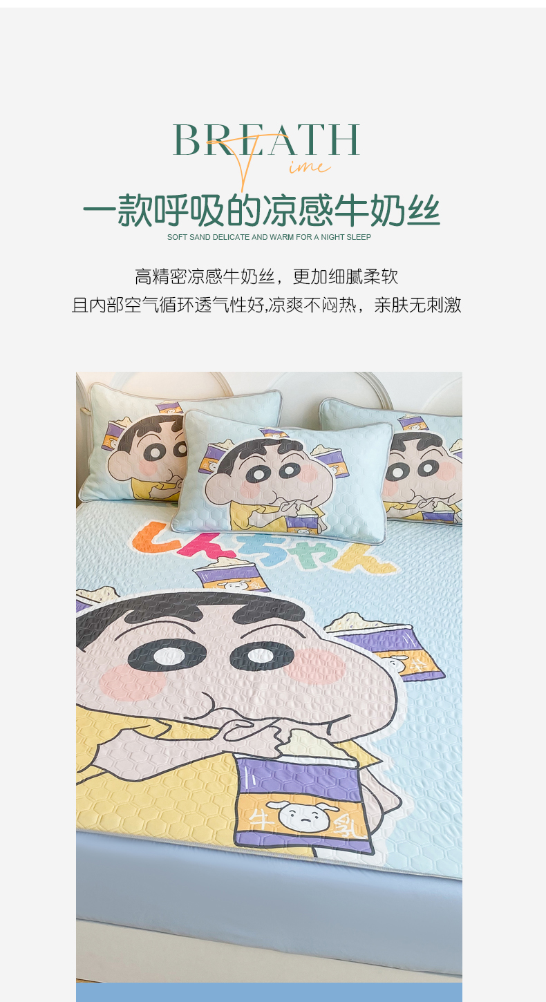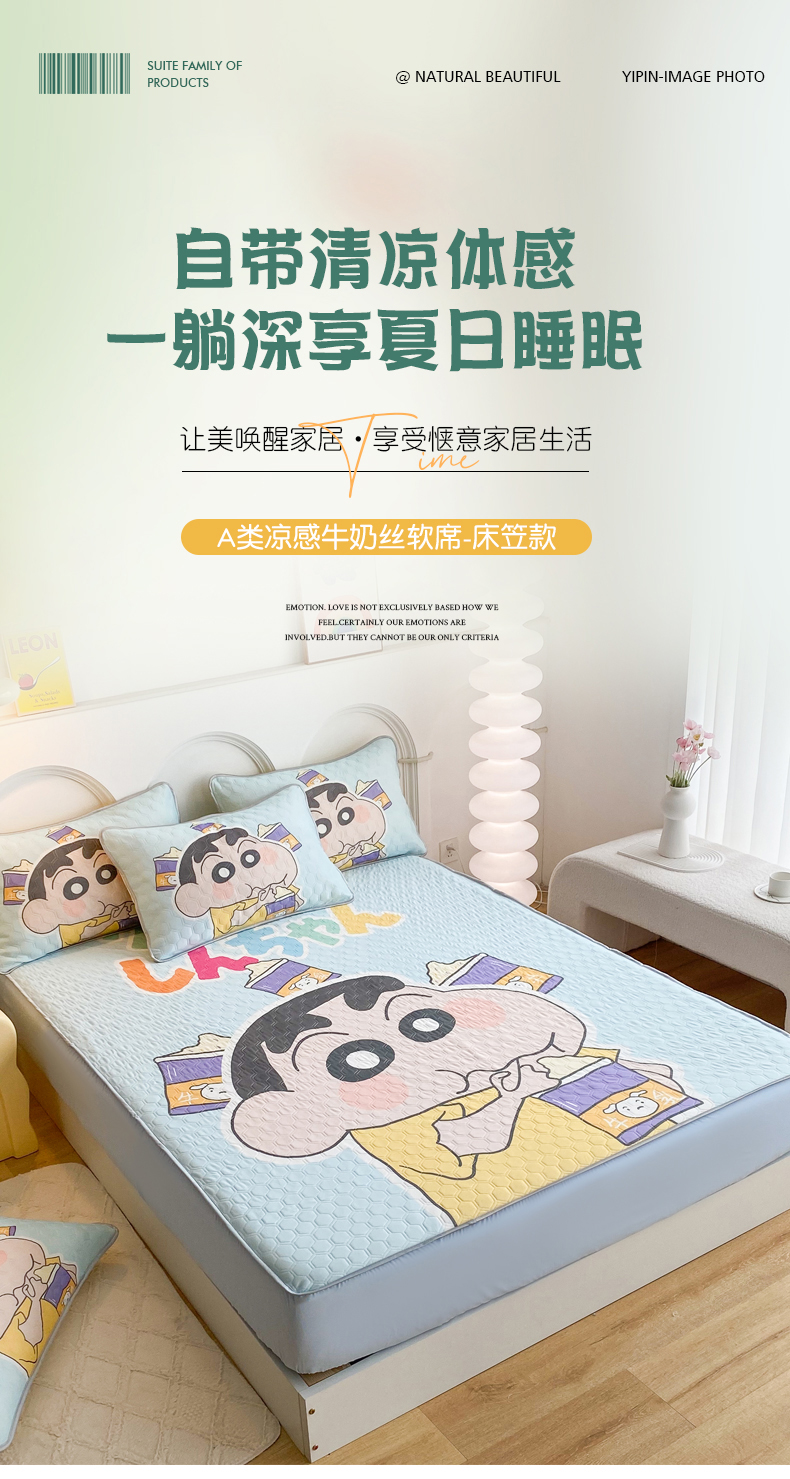 • 91家纺网 家纺一手货源 找家纺 一电 2025新款牛奶丝凉席床笠可水洗凉感丝凉席学生宿舍单人裸睡空调席-系列二 奶茶小新