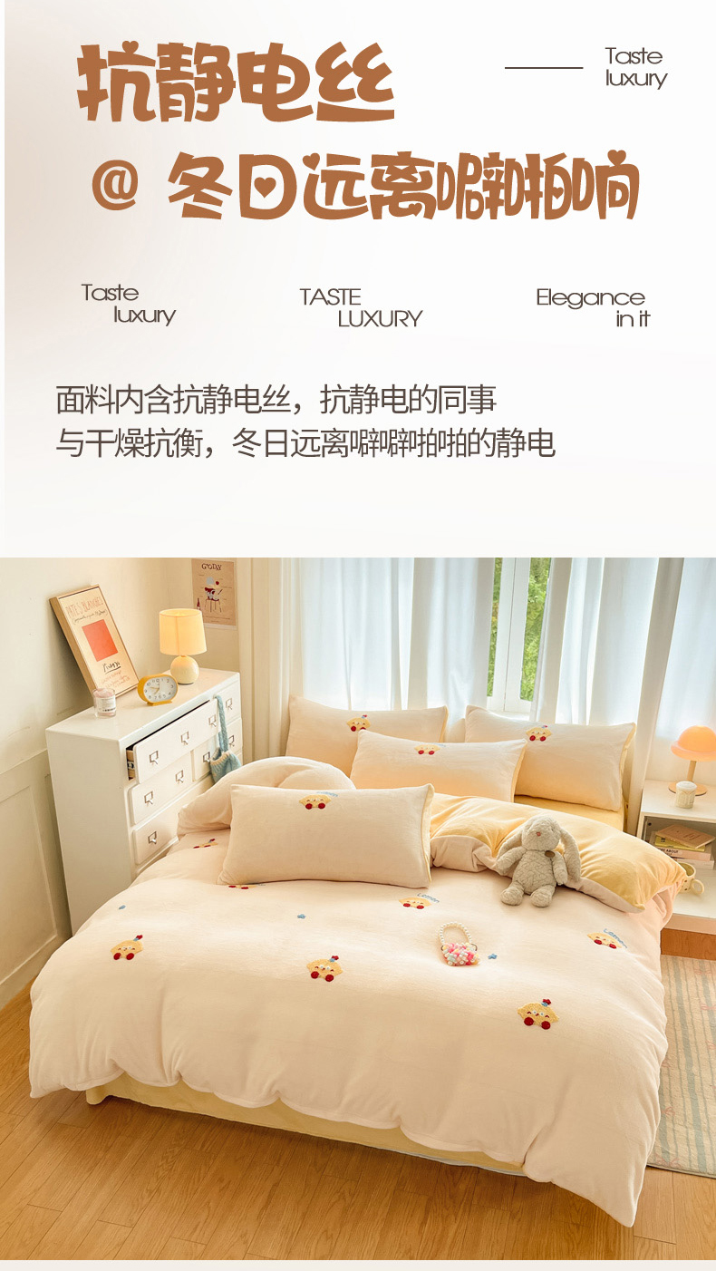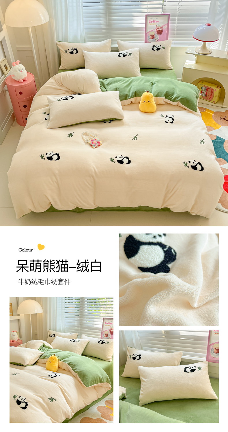 当前位置: 91家纺网 > 商品网购 > 床品套件 > 四件套 > 牛奶绒四件套 > 丽涵家纺 2025秋冬新品210克牛奶绒毛巾绣四件套卡通绣花学生床笠三件套 多多熊-绒杏