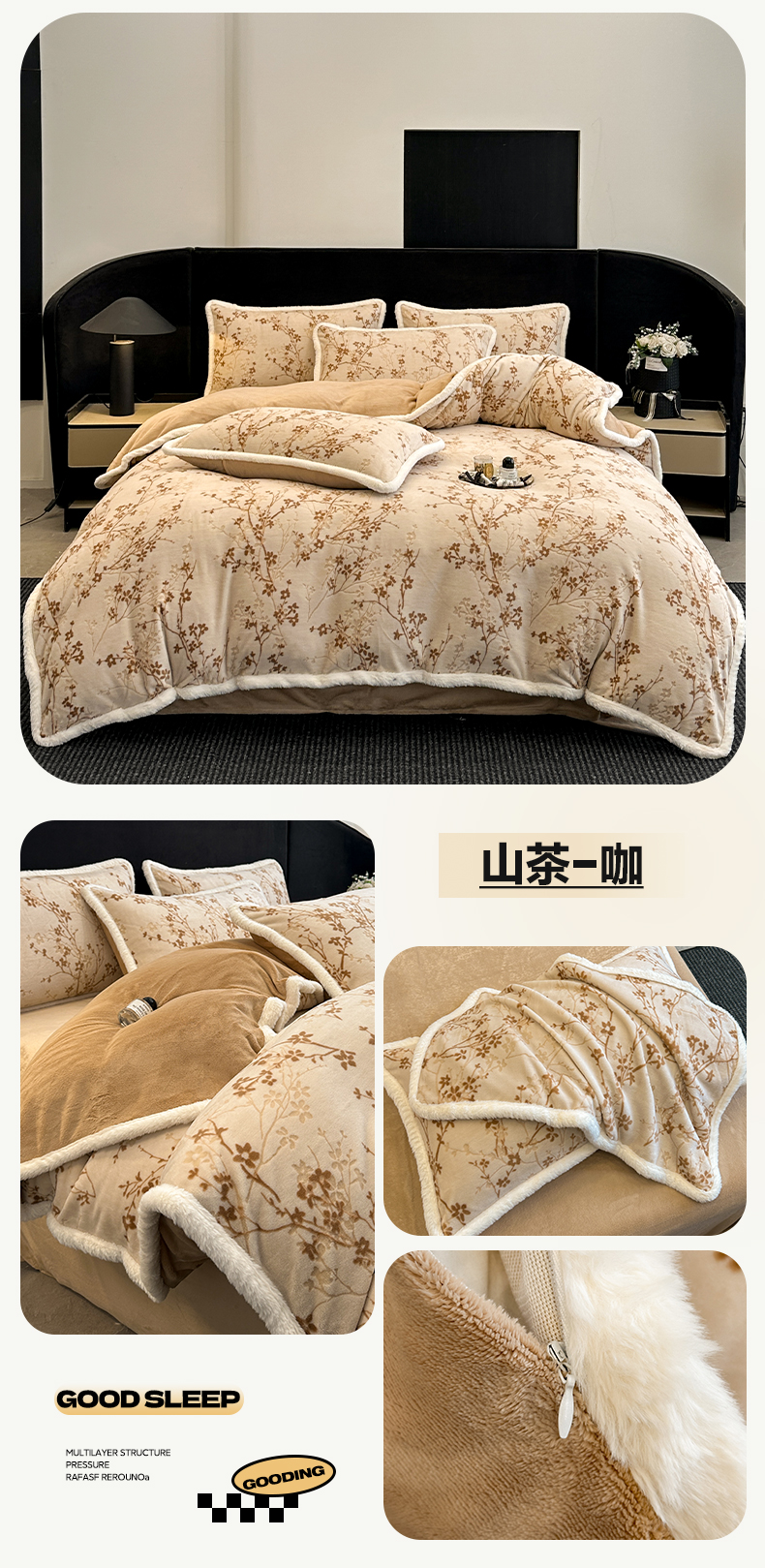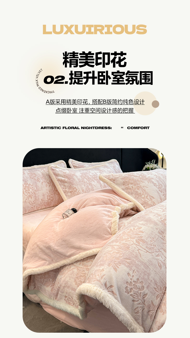 (总)如一 2025新款立体雕花牛奶绒兔毛包边四件套