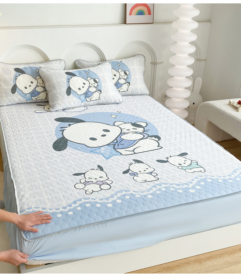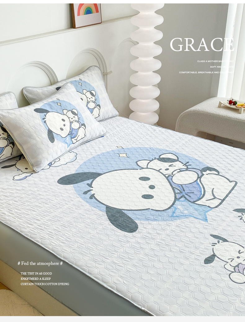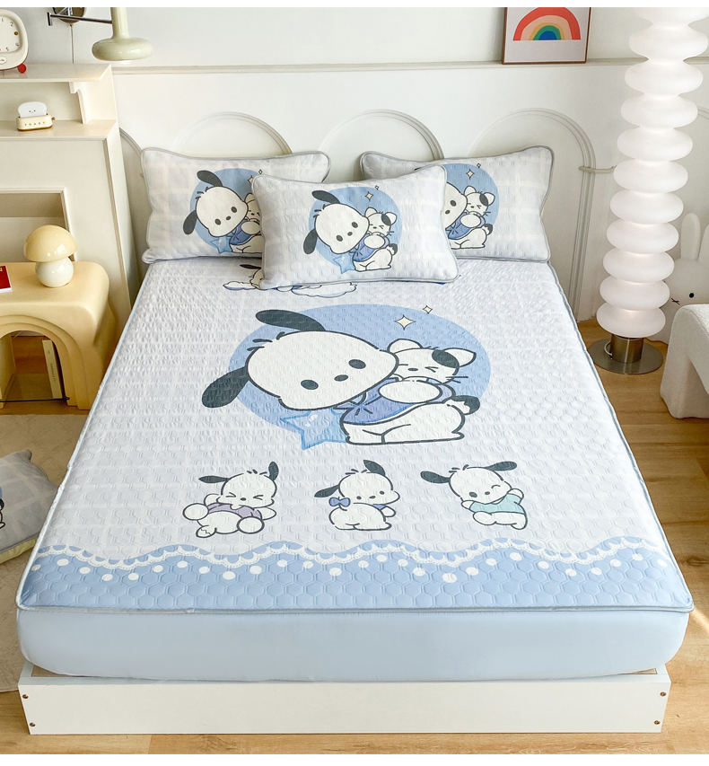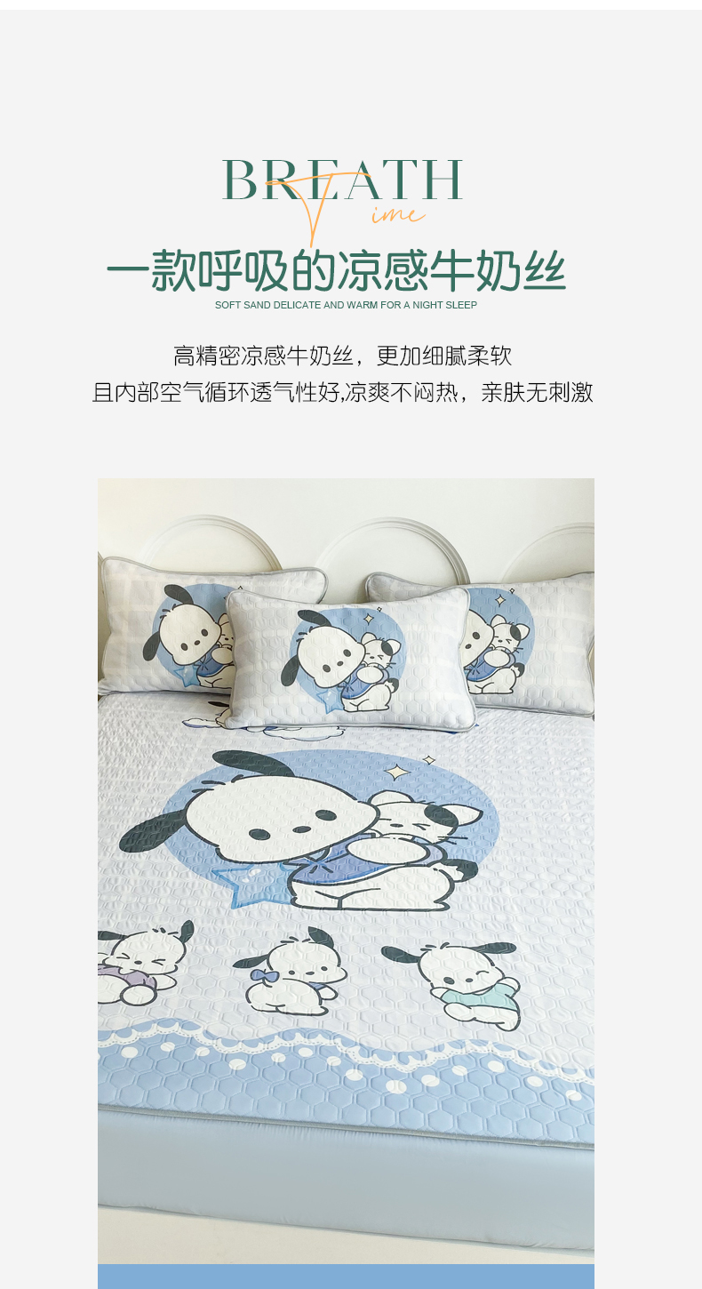 • 91家纺网 家纺一手货源 找家纺 一电 2025新款夏季牛奶丝凉席床笠可水洗凉感丝凉席学生宿舍单人裸睡空调席子 欢乐帕恰狗