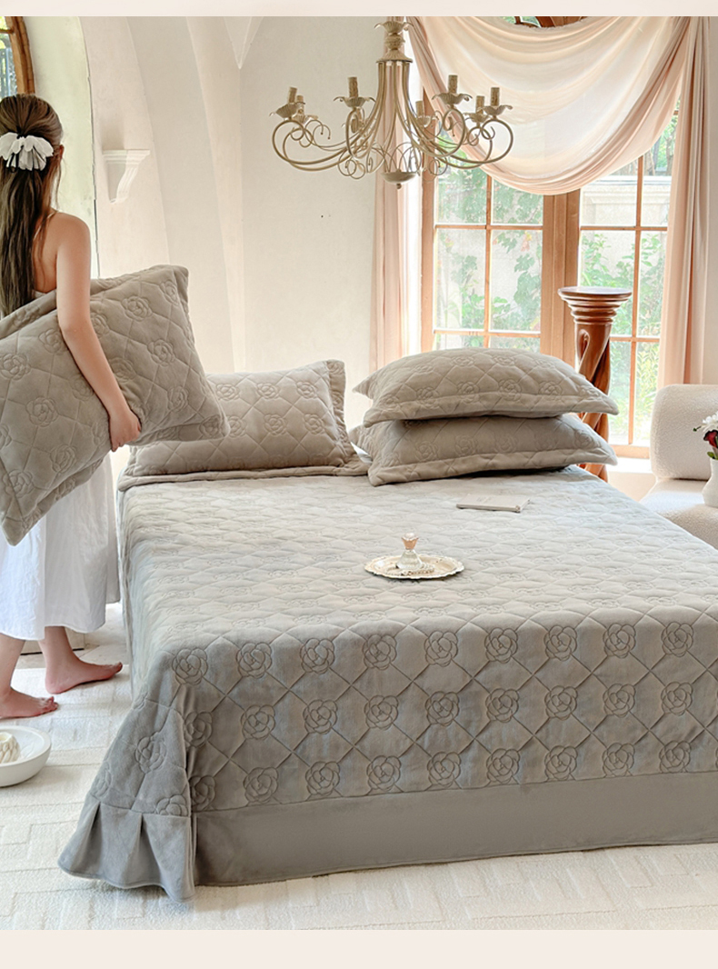 (总)7V 2025新款A类牛奶绒立体格四件套雕花绒夹棉床盖床笠四件套全工艺牛奶绒,粉色,灰色,蓝色,玫红,嫩黄,驼色,组合