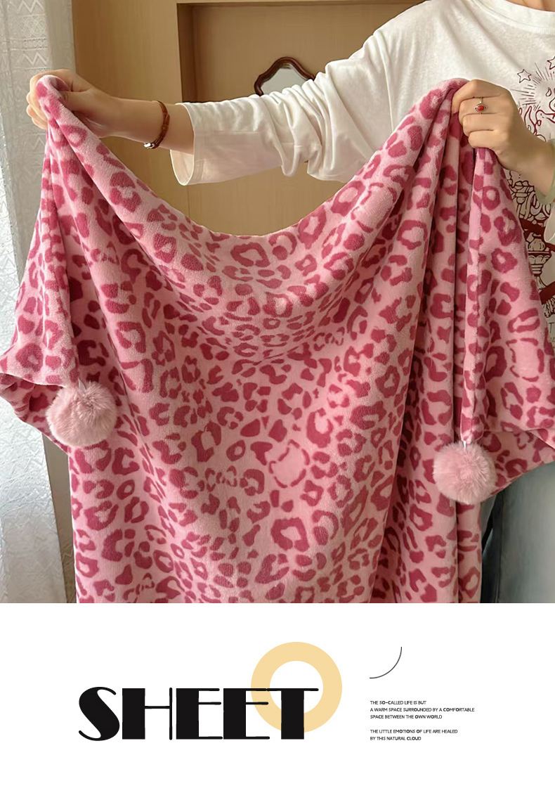 希诺家居 2025新款牛奶绒豹纹毛球毯子居家博主甜咖风格球球毛毯 毛毯 豹纹-粉