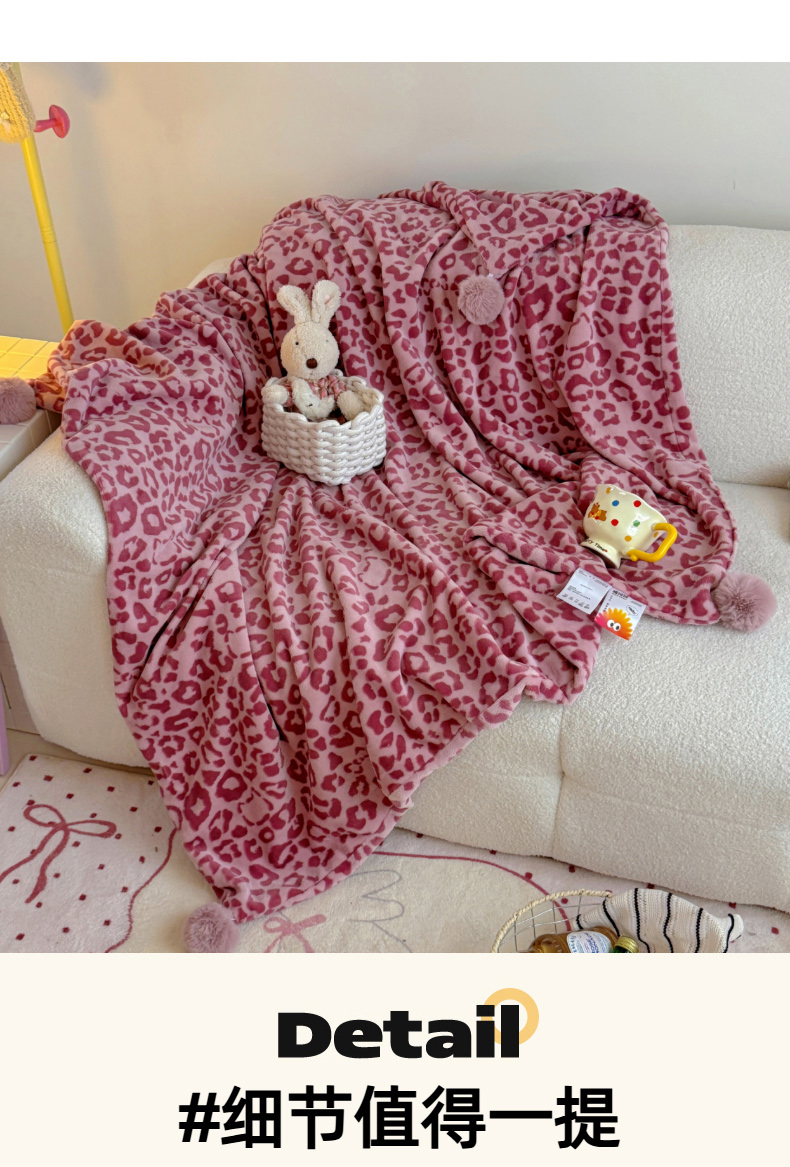 商品名称:希诺家居 2025新款牛奶绒豹纹毛球毯子居家博主甜咖风格球球毛毯 毛毯 豹纹-粉
