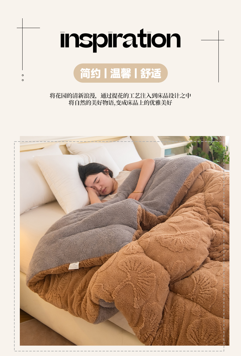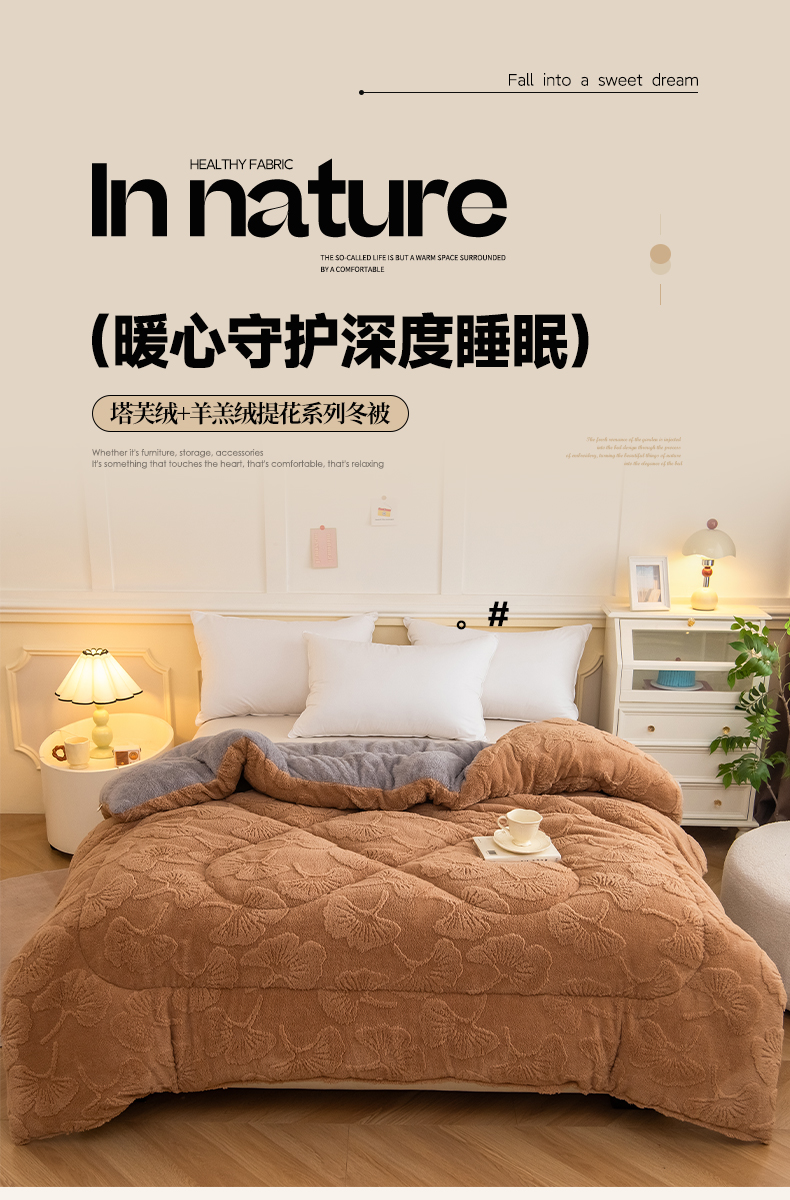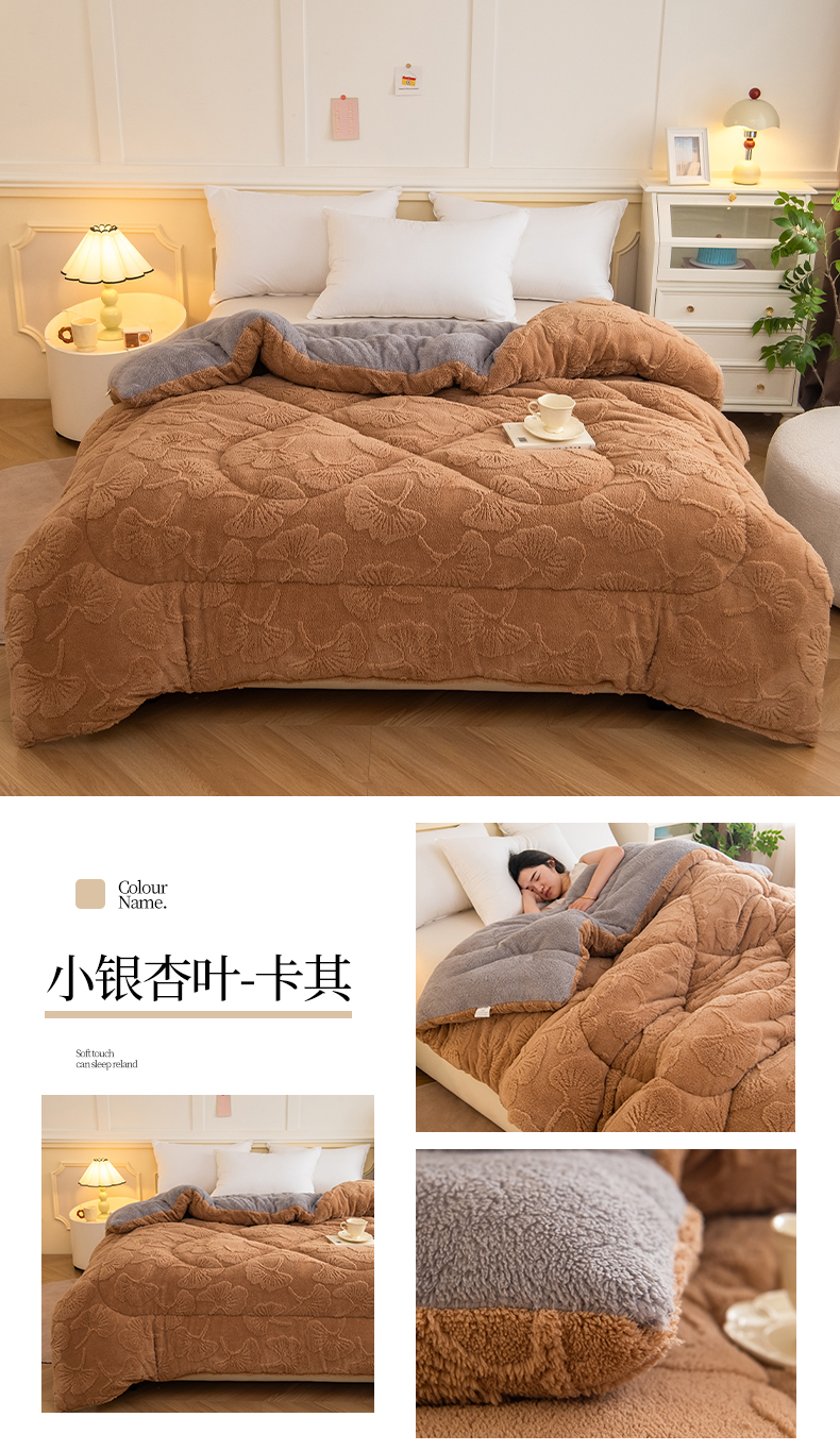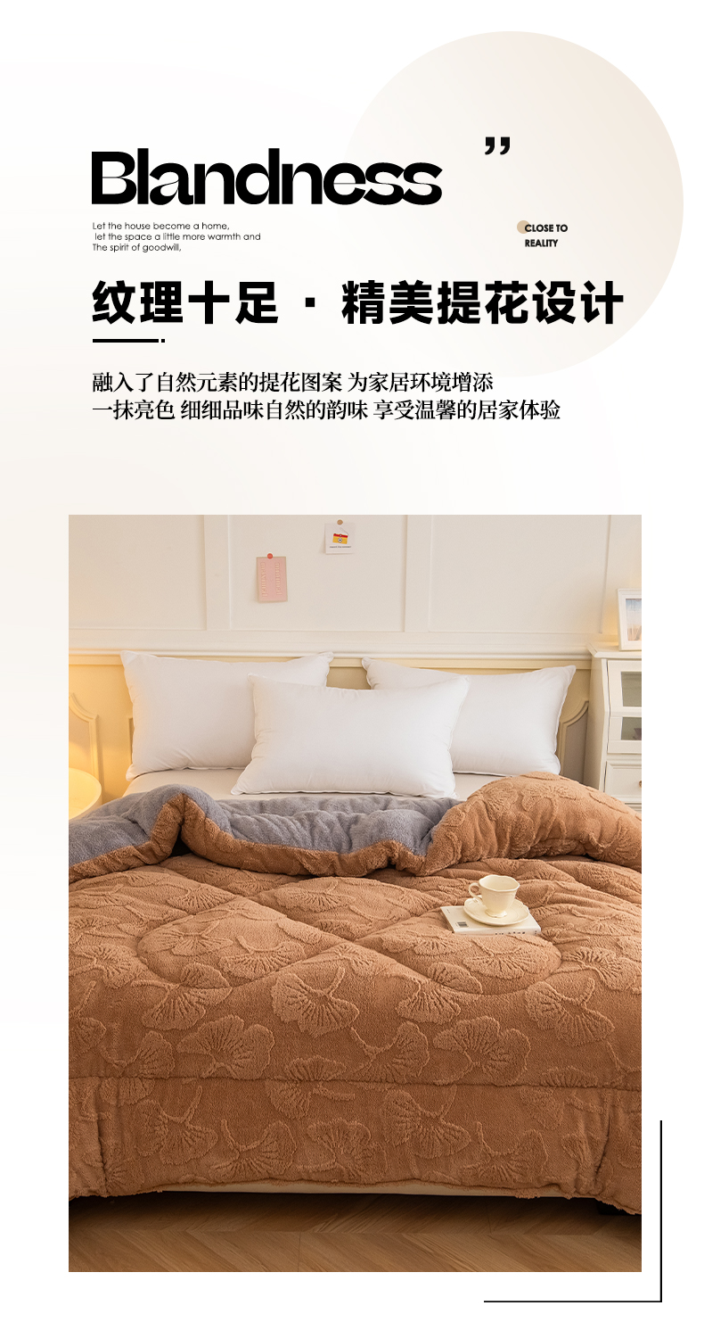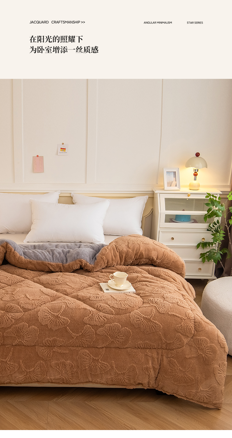 畅销被业 2025新款塔芙绒羊羔绒提花冬被子被芯-小银杏叶系列 小银杏叶-卡其