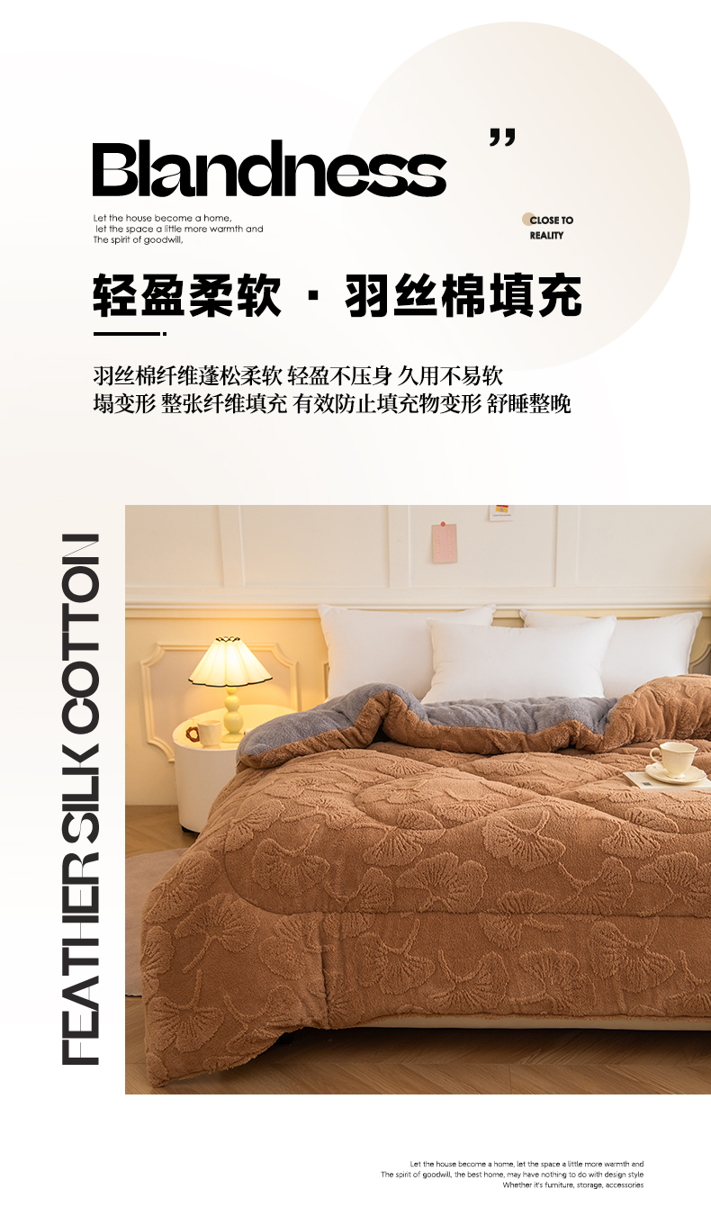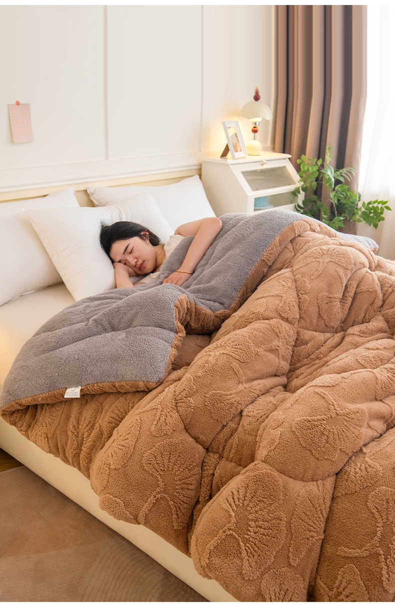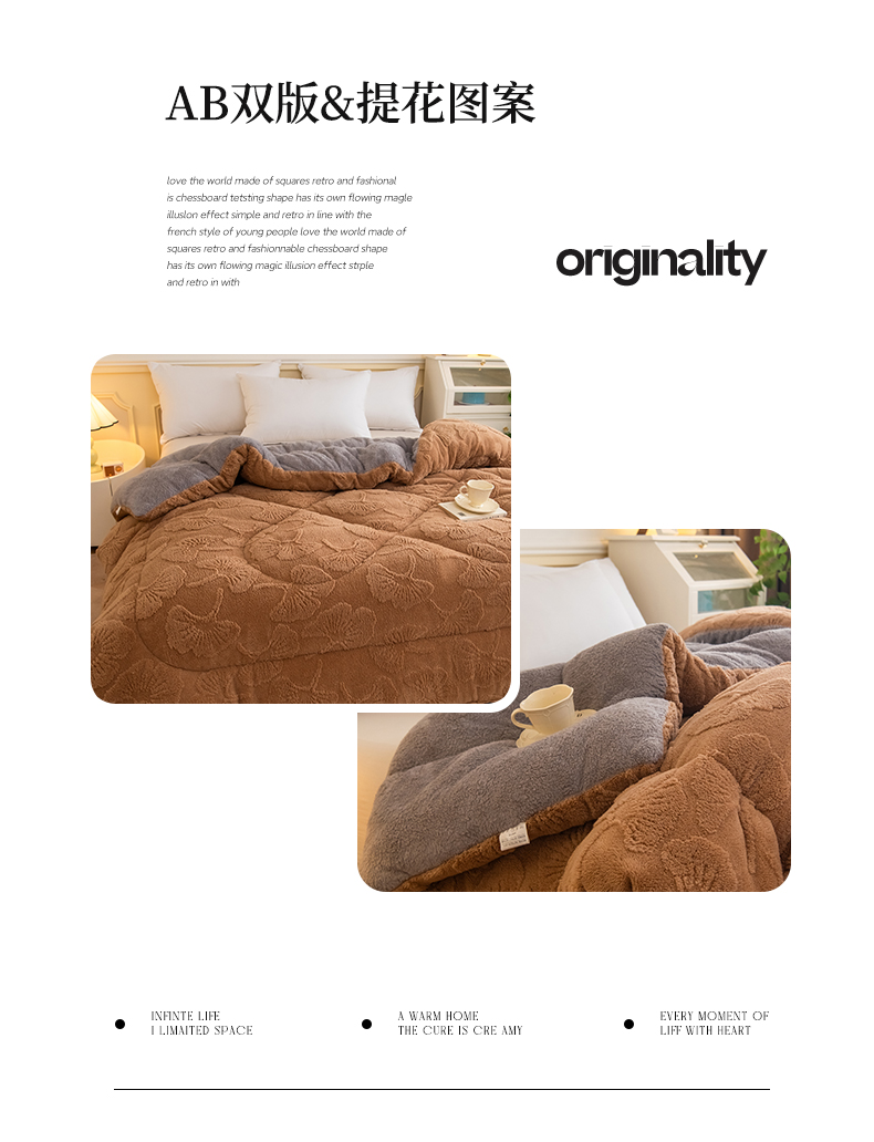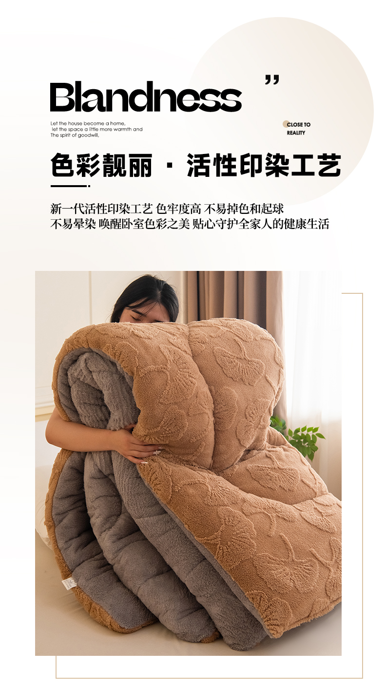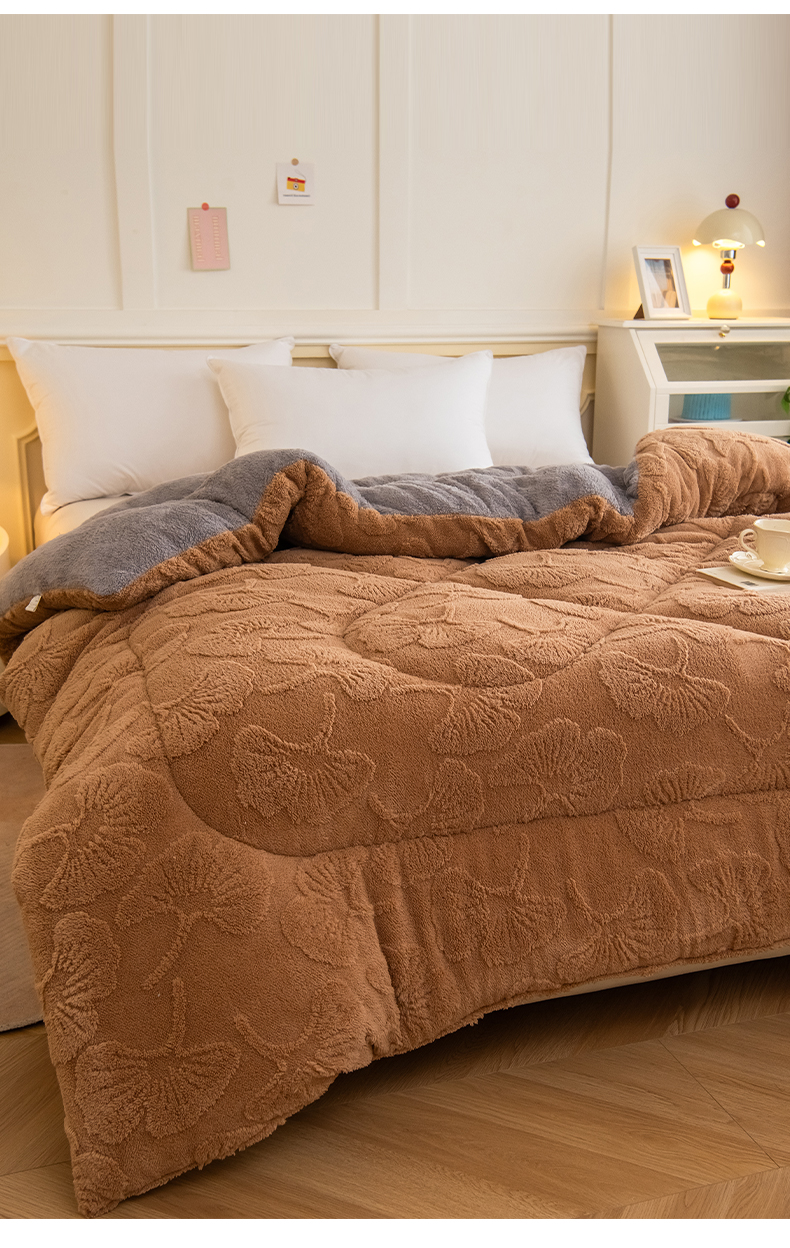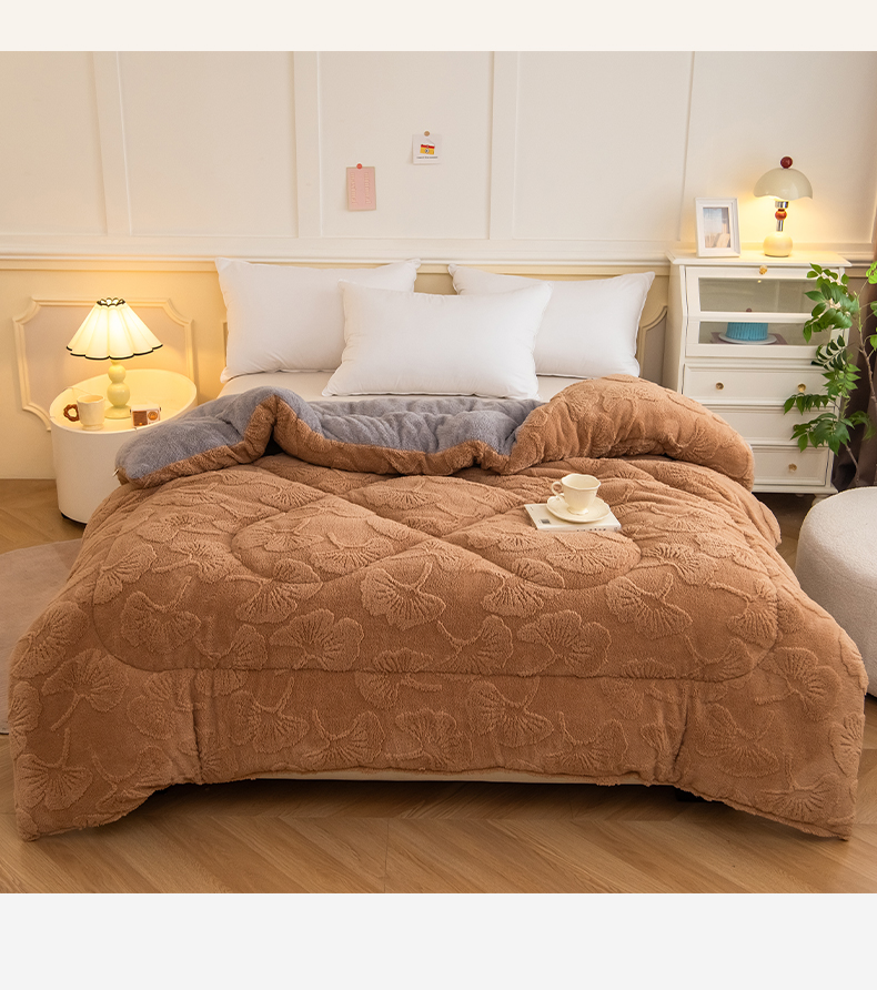 畅销被业 2025新款塔芙绒羊羔绒提花冬被子被芯-小银杏叶系列 小银杏叶-卡其