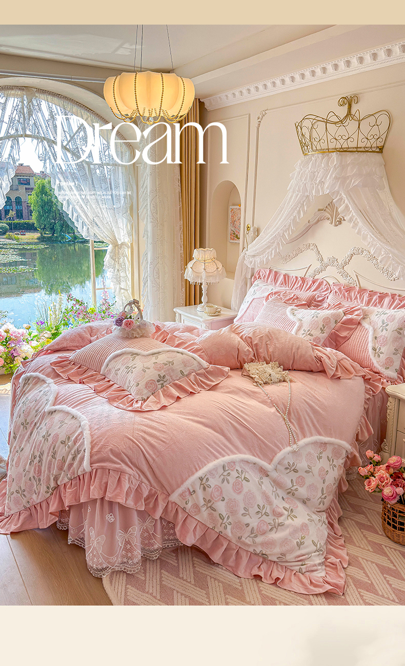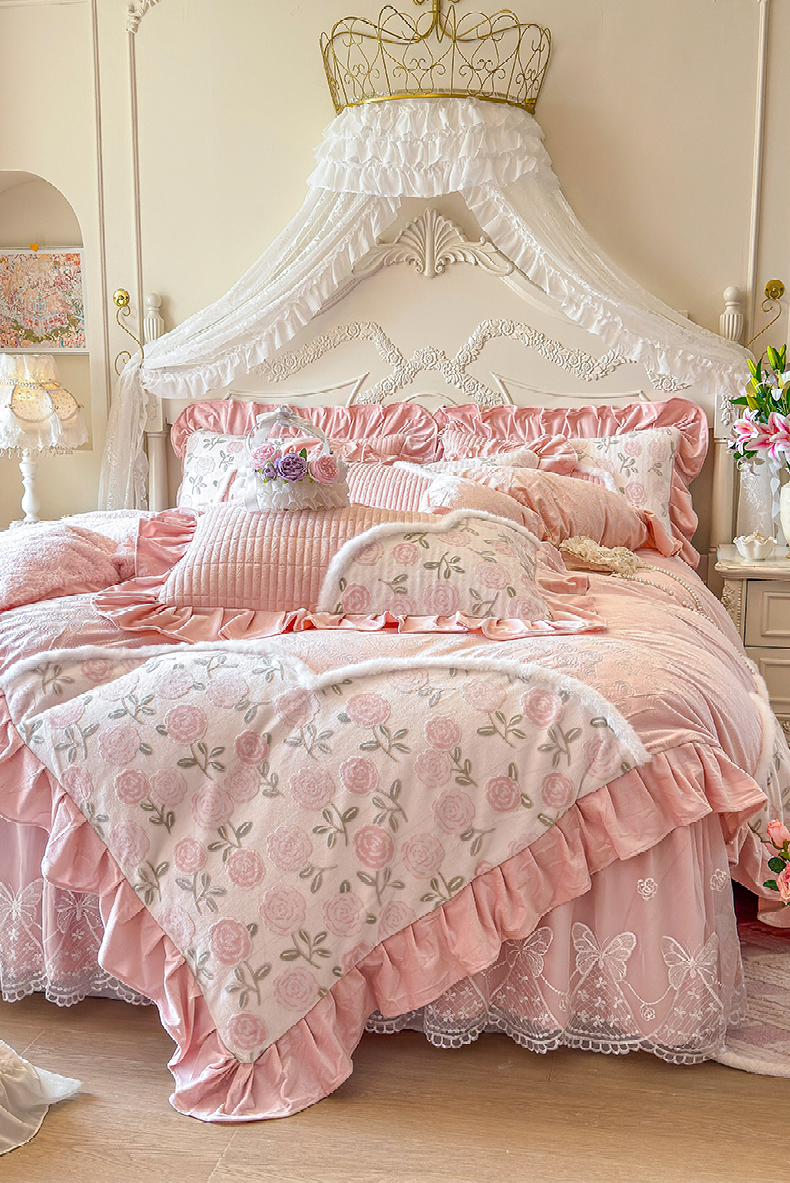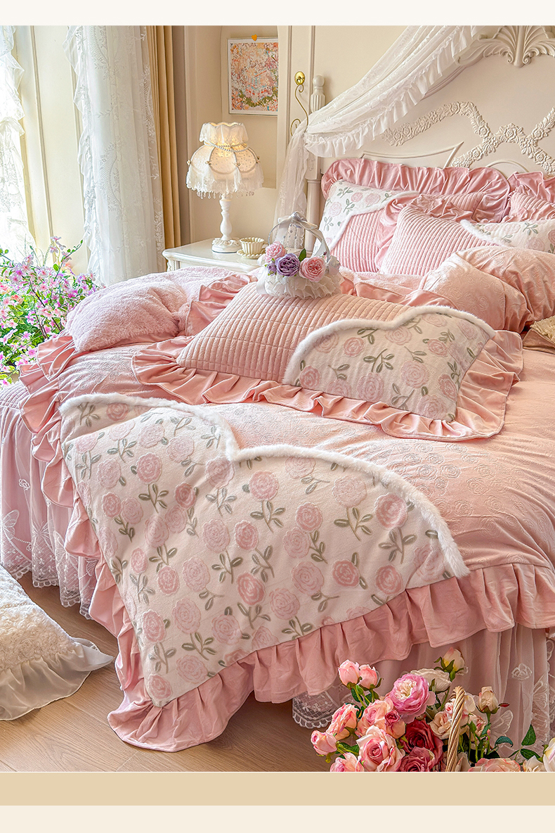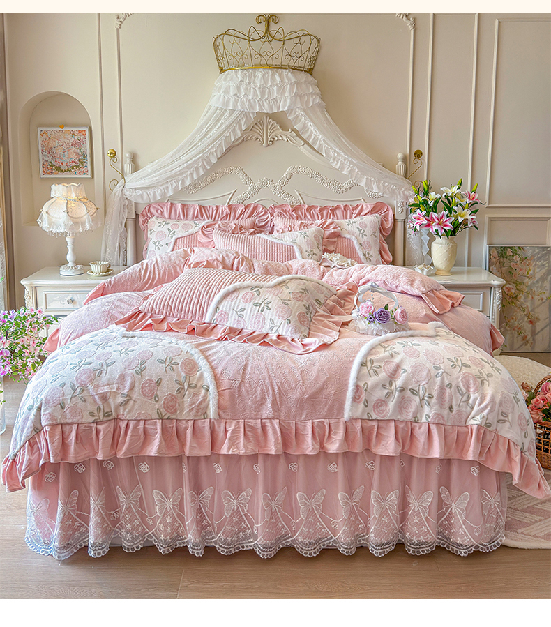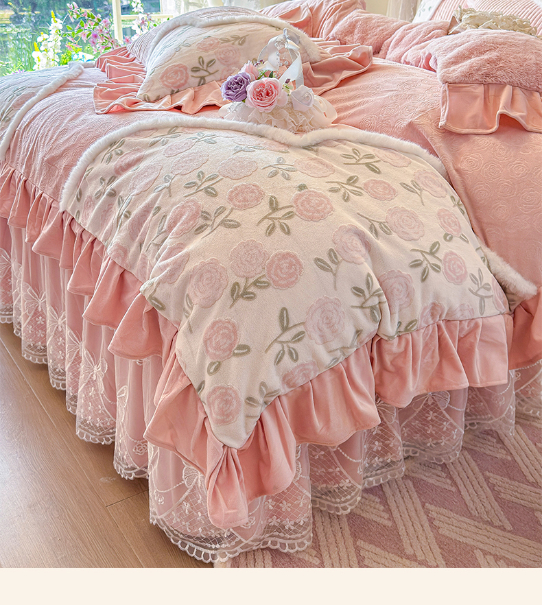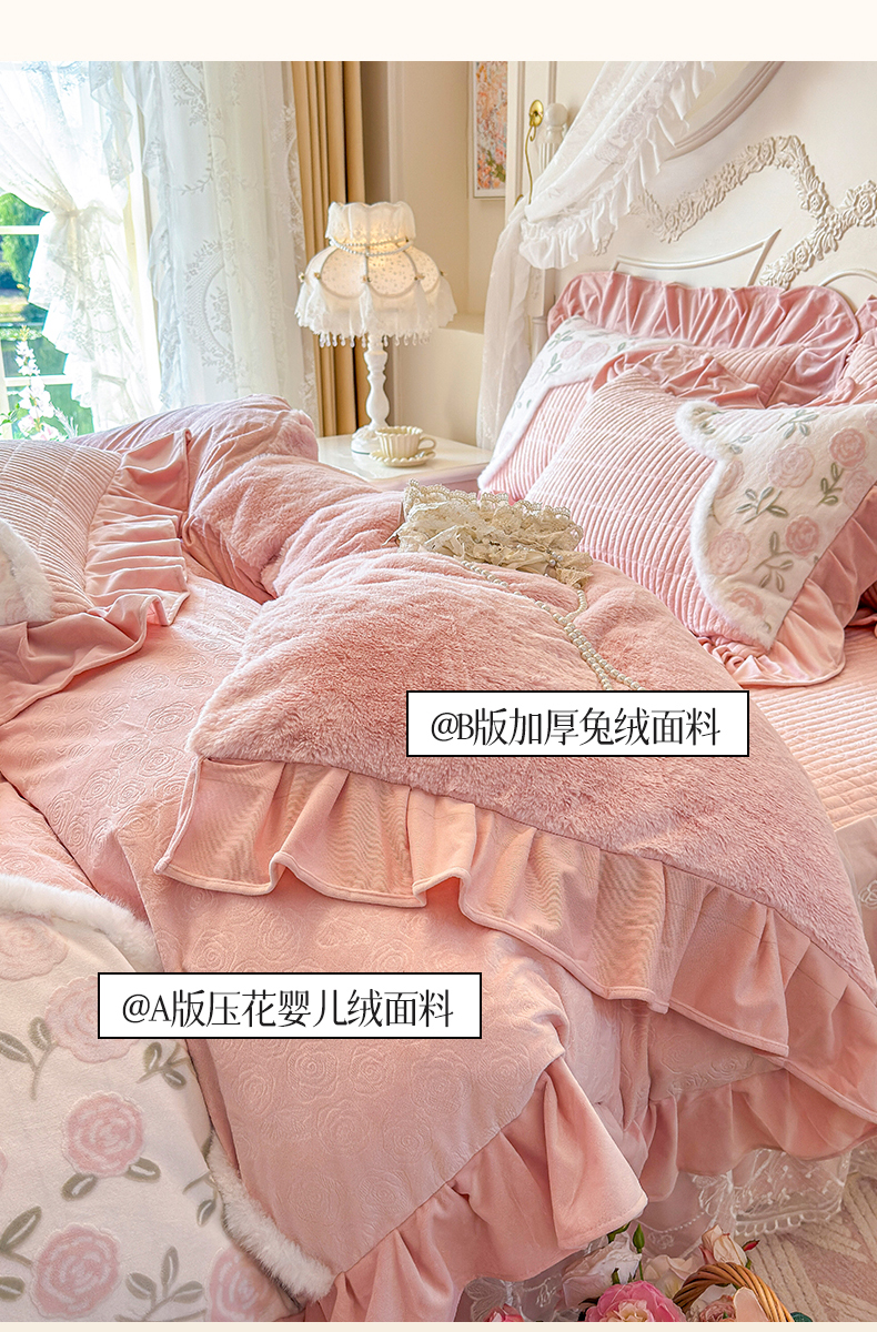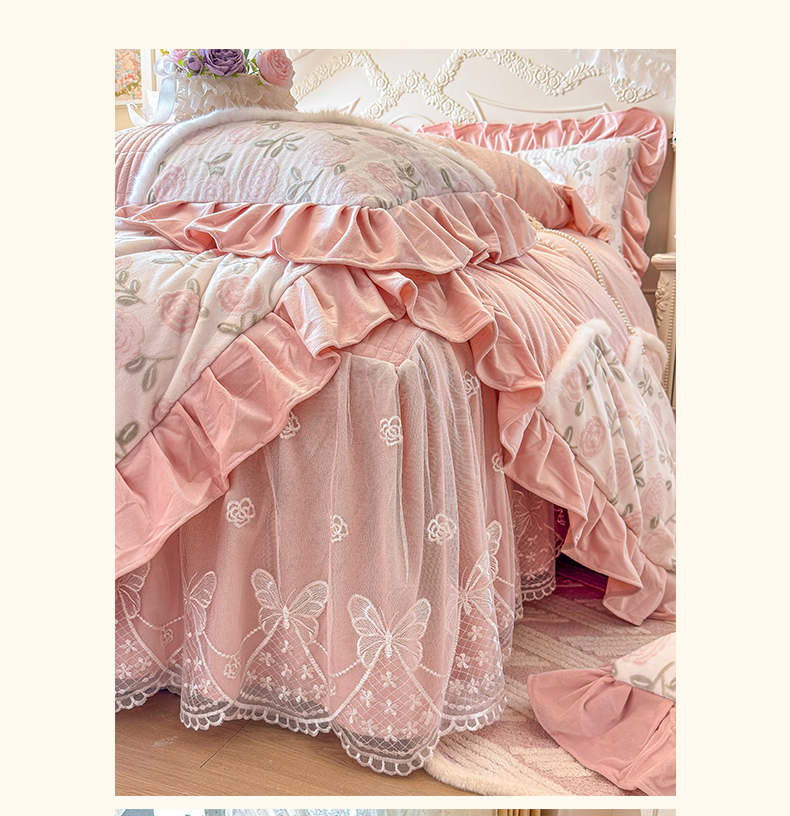 (总)宜凡家纺 2025新款兔绒提花牛奶绒夹棉床裙四件套,爱心 少女粉,爱心 粉紫,爱心 驼色,蝶舞 大红,蝶舞 米色,蝶舞 浅紫,蝶舞 玉色,简爱 苍青,简爱 豆沙紫,简爱 玉色,樱桃 苍青,樱桃 豆沙紫,樱桃 奶油白
