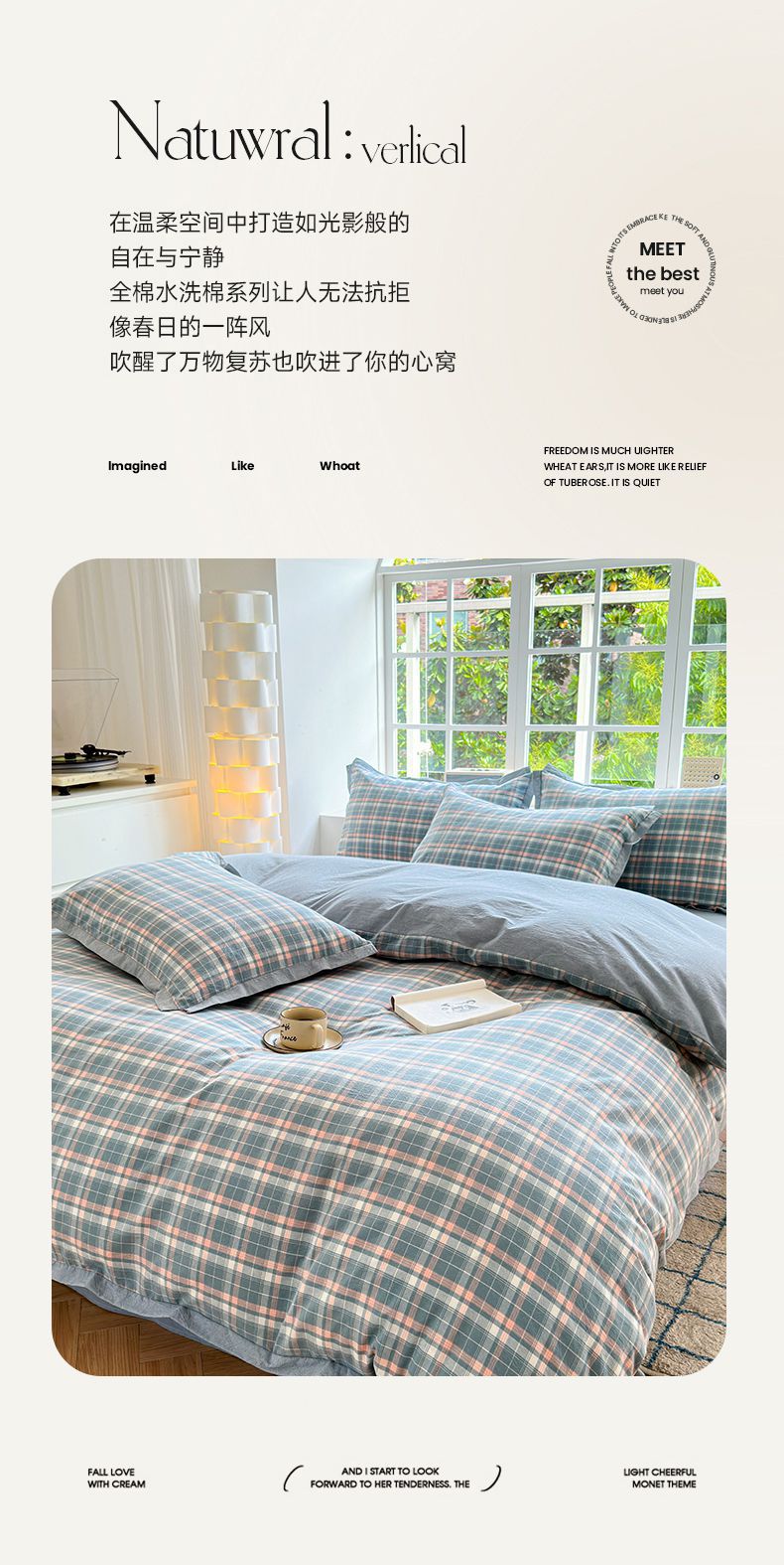 当前位置: 91家纺网 > 商品网购 > 床品套件 > 四件套 > 水洗棉四件套 > 宜家坊 2025新款A类全棉纯棉色织水洗棉宽边断角工艺四件套 可定制尺寸 小幸运-粉蓝