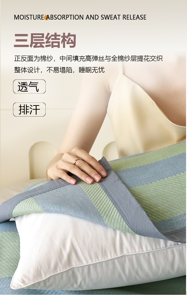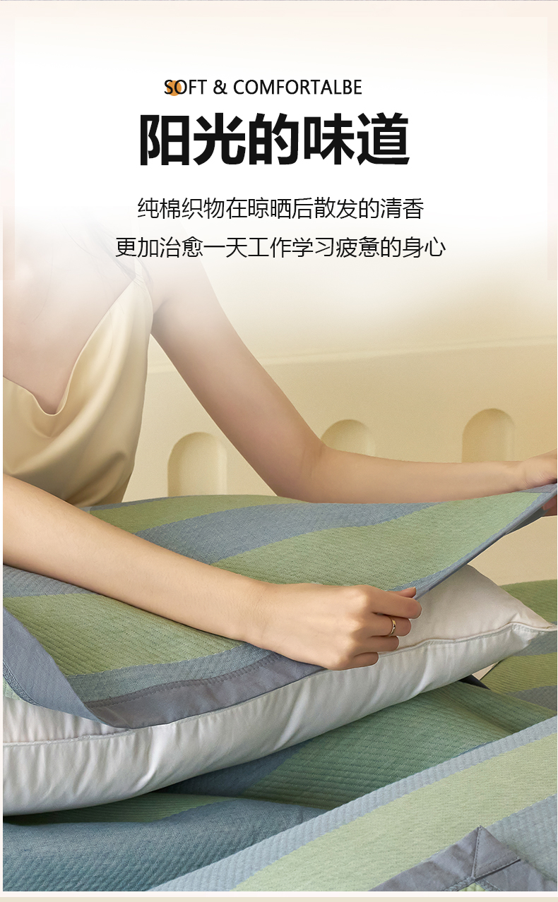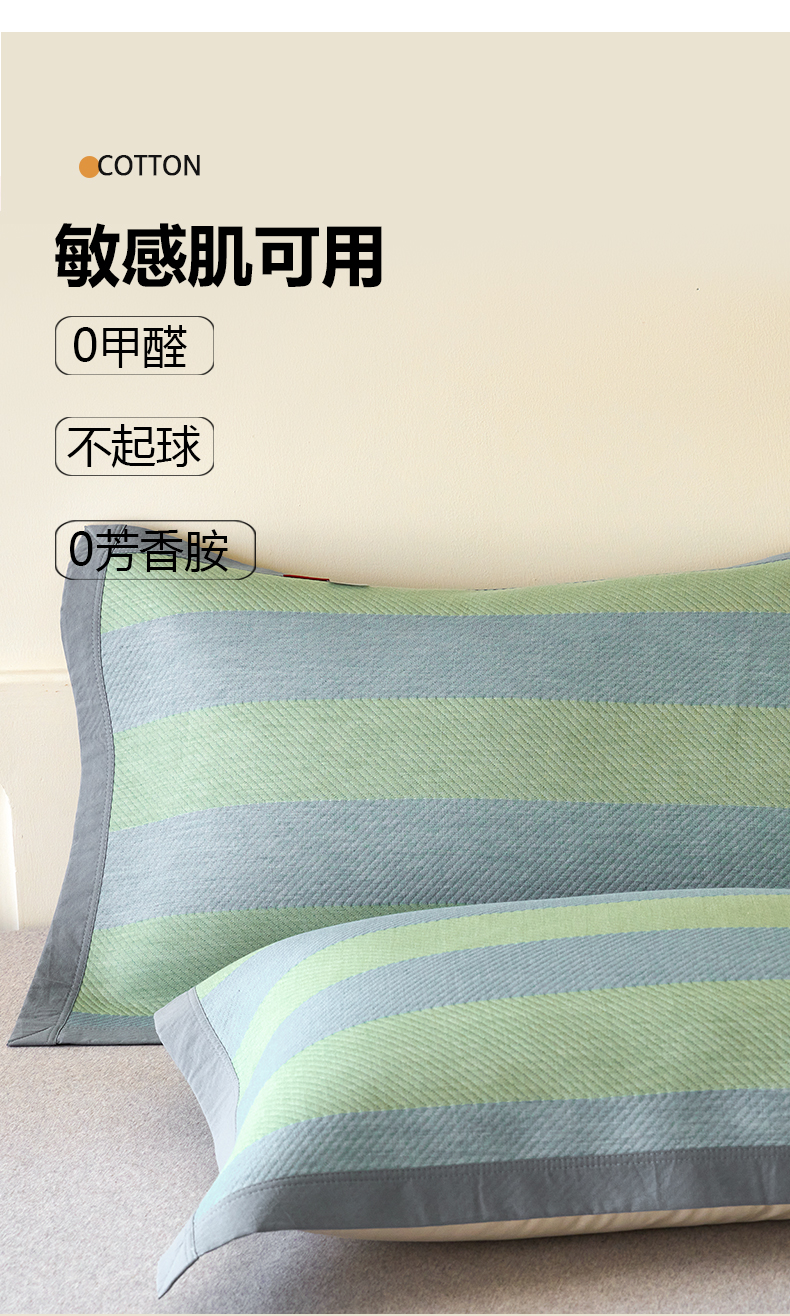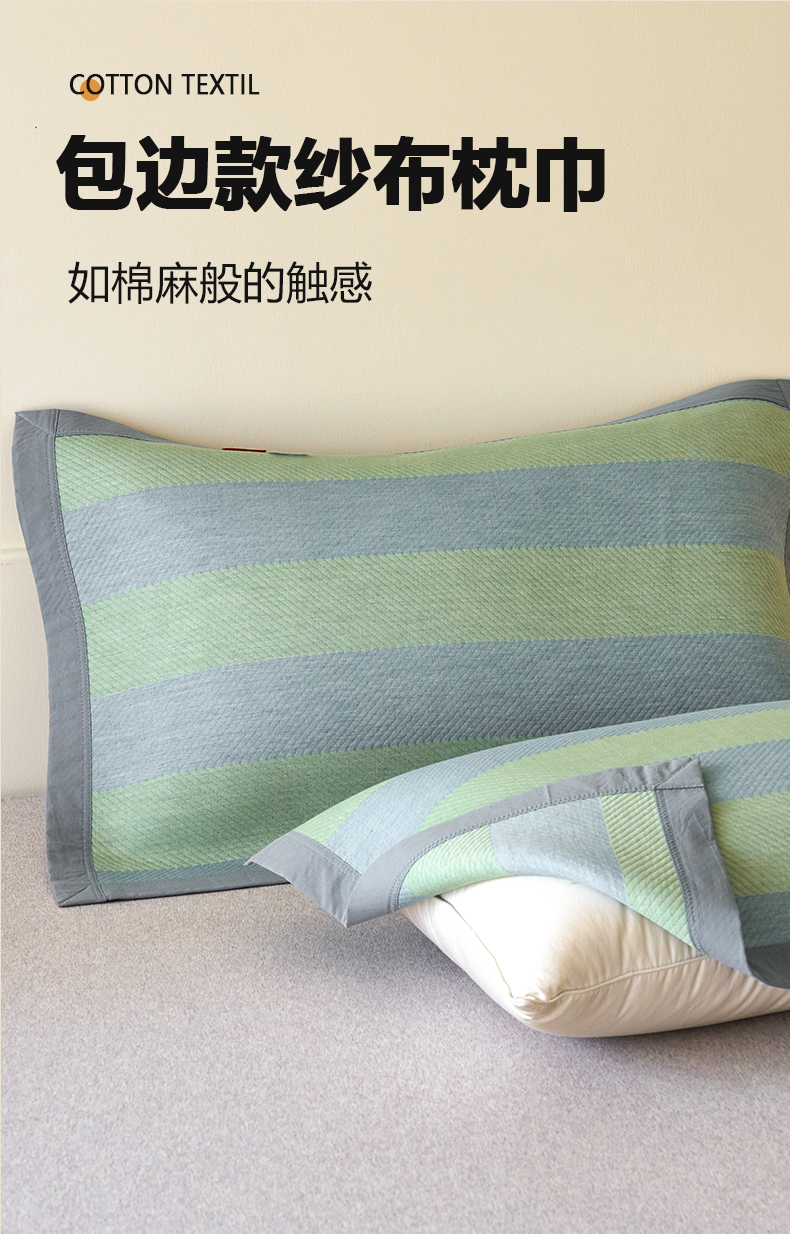 棠薇家纺 2025新款简约包边款枕巾纯棉枕巾夹绵枕巾透气吸汗 极简生活绿枕巾