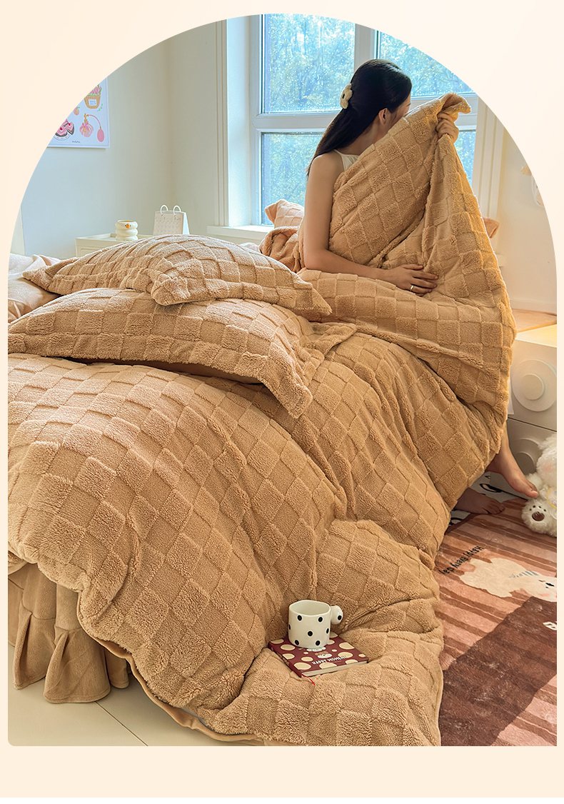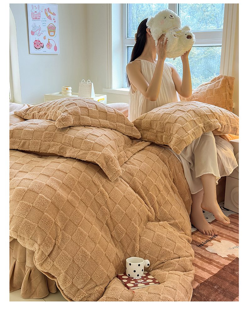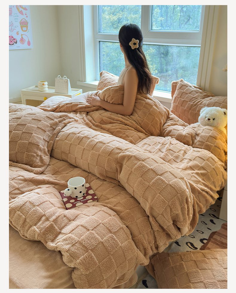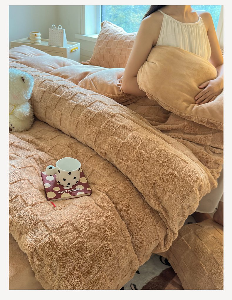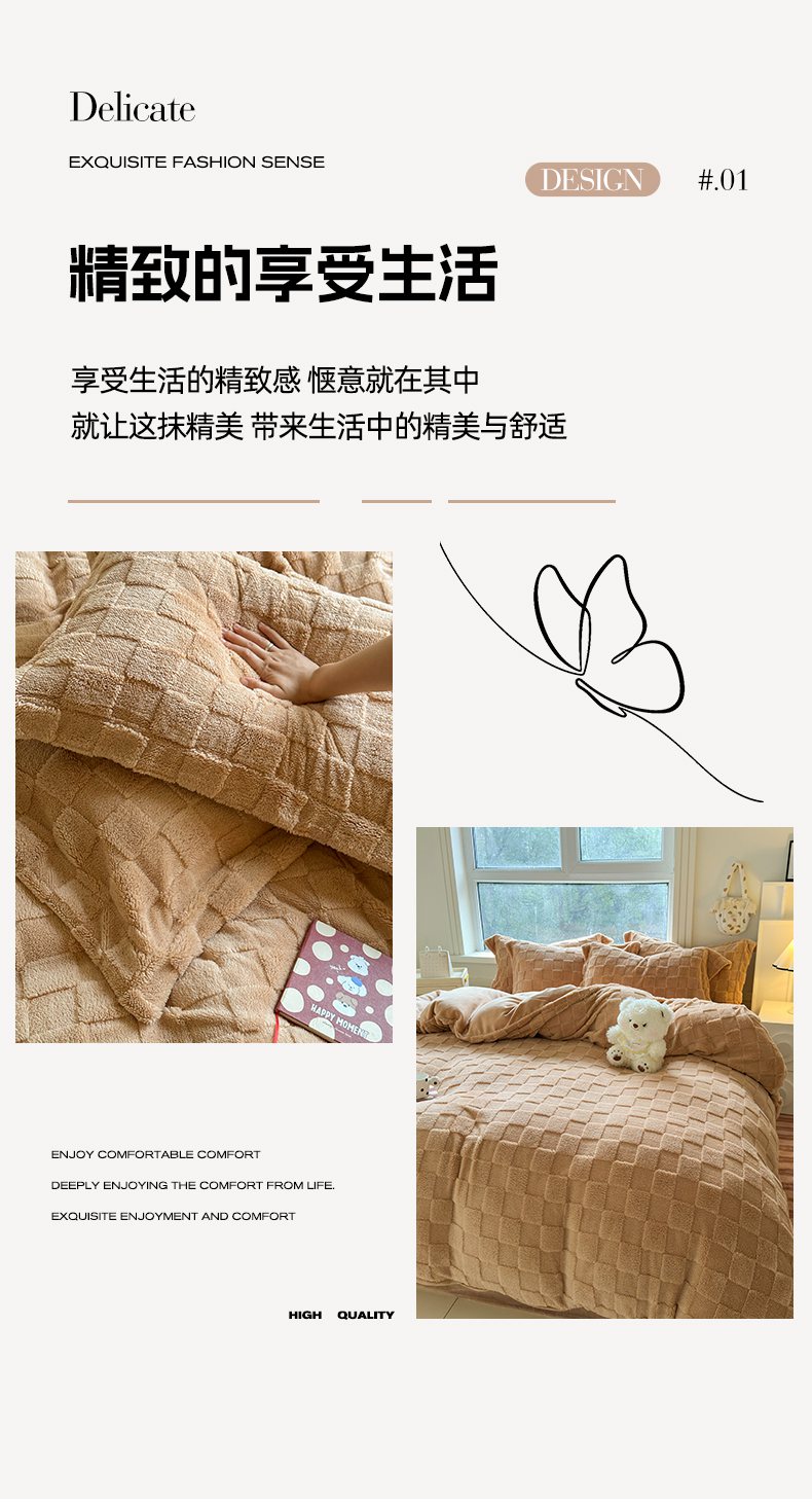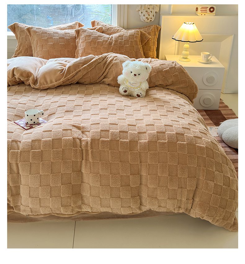 当前位置: 91家纺网 > 商品网购 > 床品套件 > 四件套 > 牛奶绒四件套 > 7V 2025新款A类牛奶绒立体格四件套雕花绒夹棉床盖床笠四件套全工艺牛奶绒 驼色