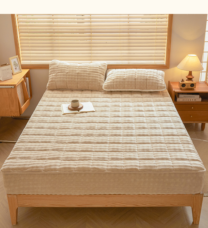鑫顺欣 2025新款泡泡牛奶绒床笠套件三件套 奶卡色