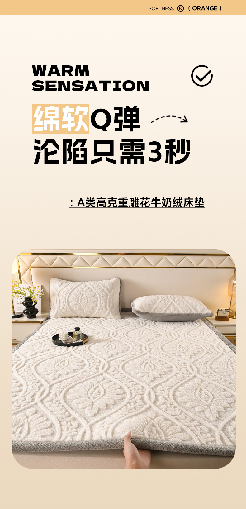 商品名称:鑫姿席业 2025新款A类高克重雕花牛奶绒床垫 米兰-象牙白