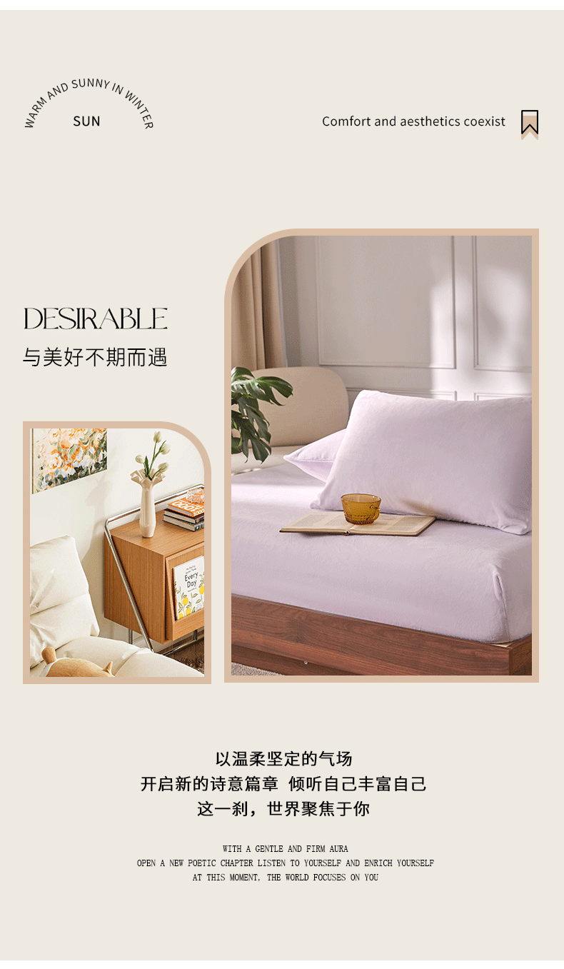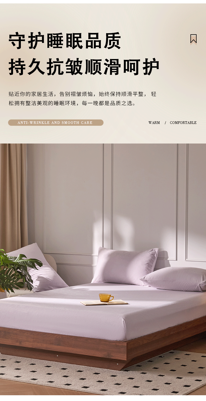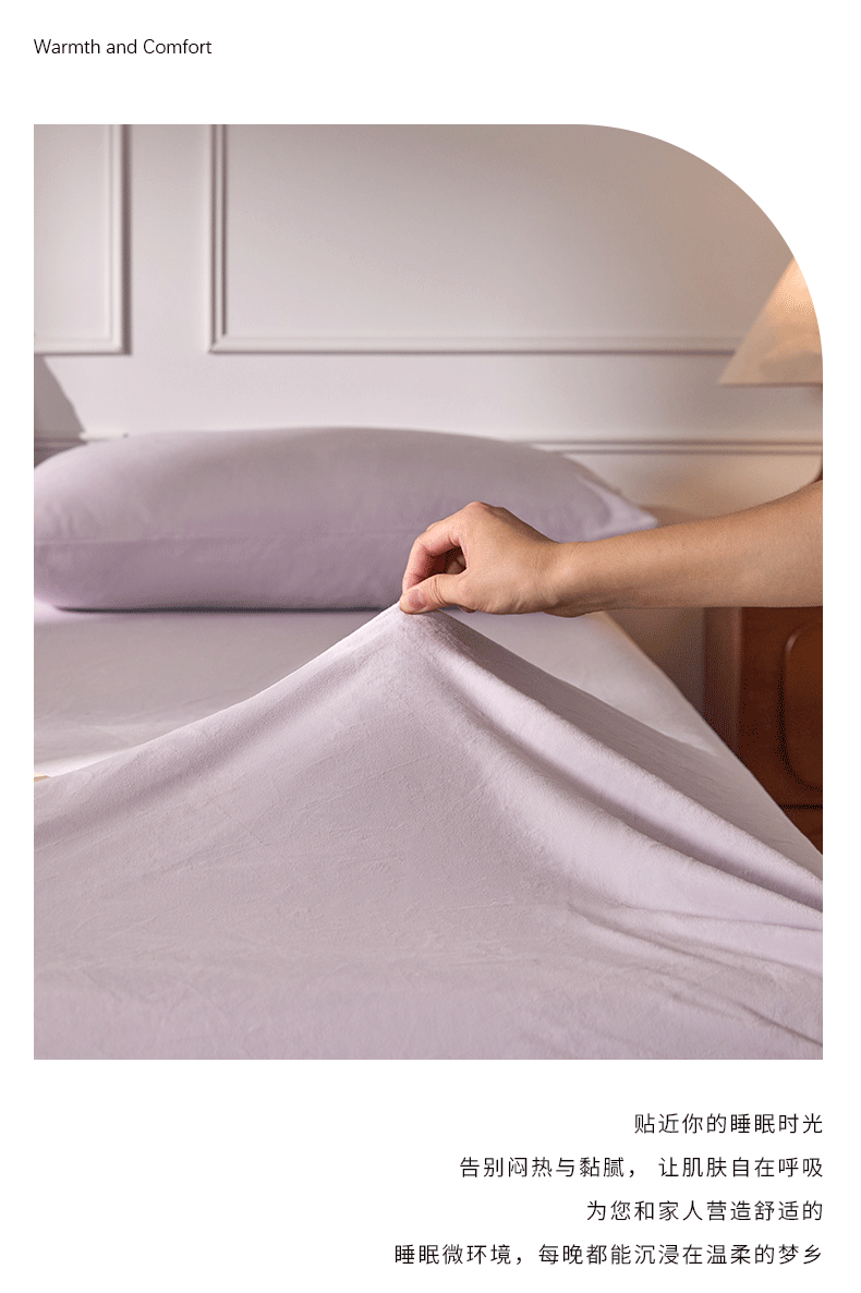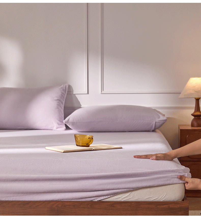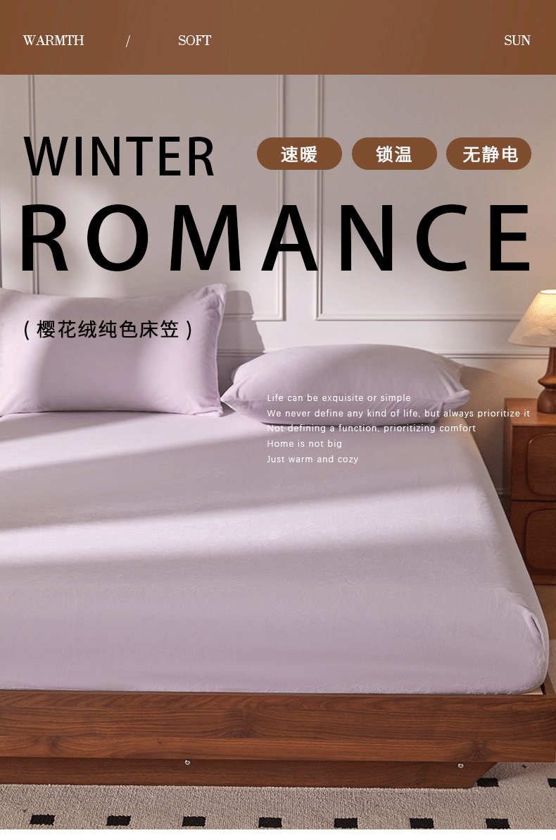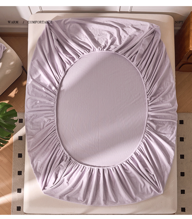 商品名称:618家纺 2025新款樱花绒单品四件套系列-单床笠 雾紫
