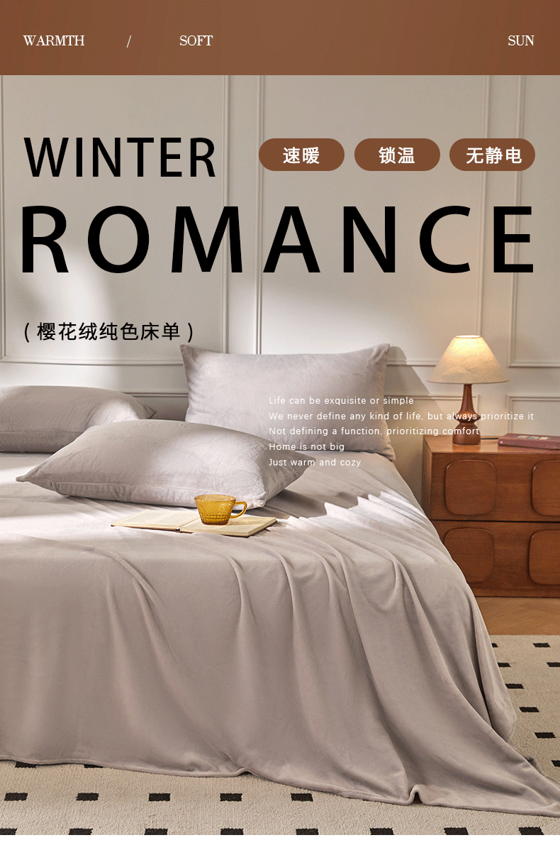 618家纺 2025新款樱花绒单品四件套系列-单床单 雾灰