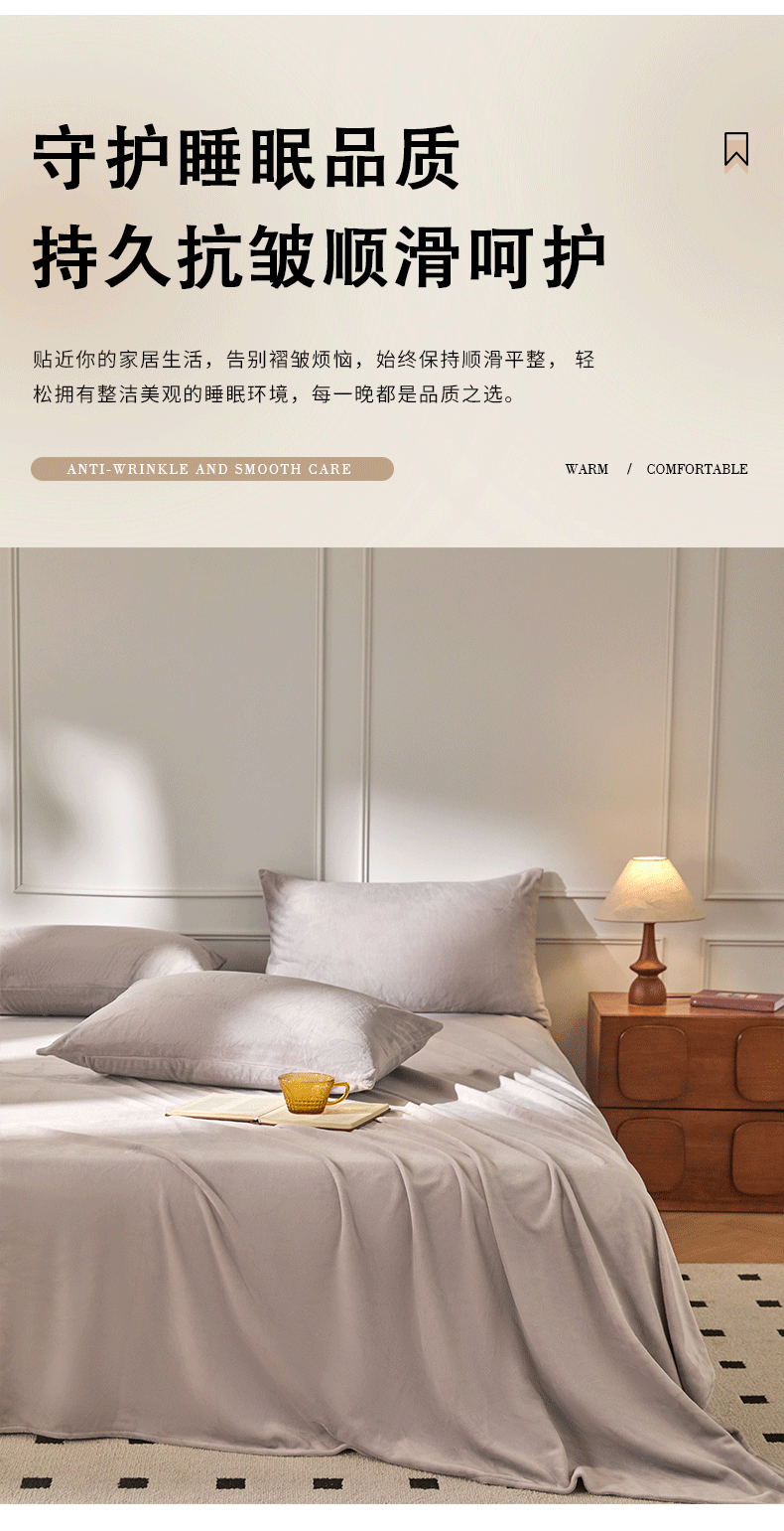 商品名称:618家纺 2025新款樱花绒单品四件套系列-单床单 雾灰