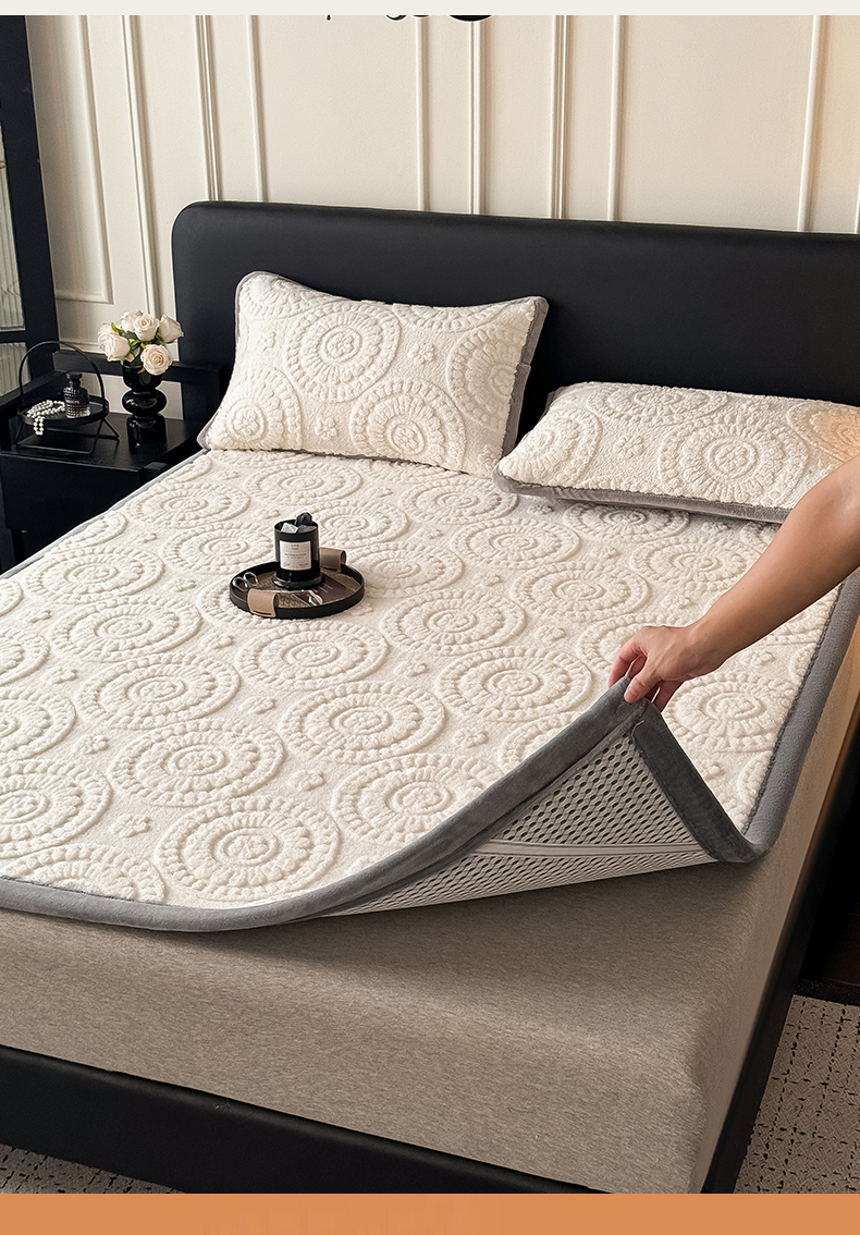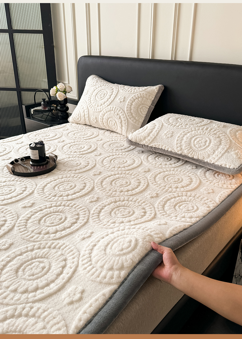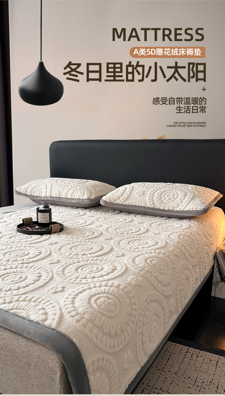 鑫姿席业 2025新款5D雕花绒床褥垫床垫 饼干花-白