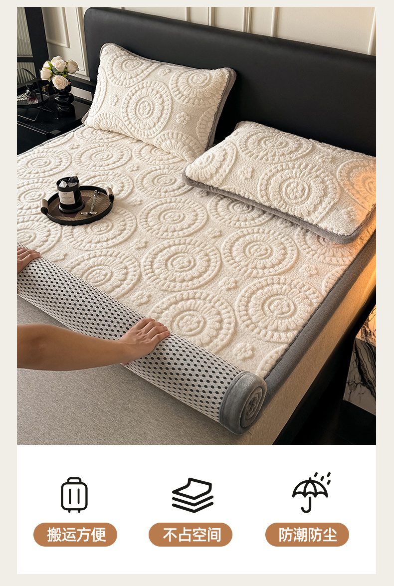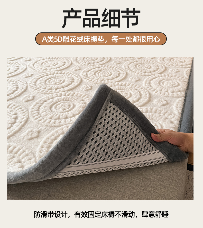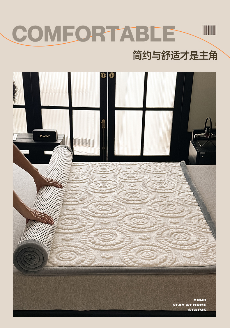 商品名称:鑫姿席业 2025新款5D雕花绒床褥垫床垫 饼干花-白