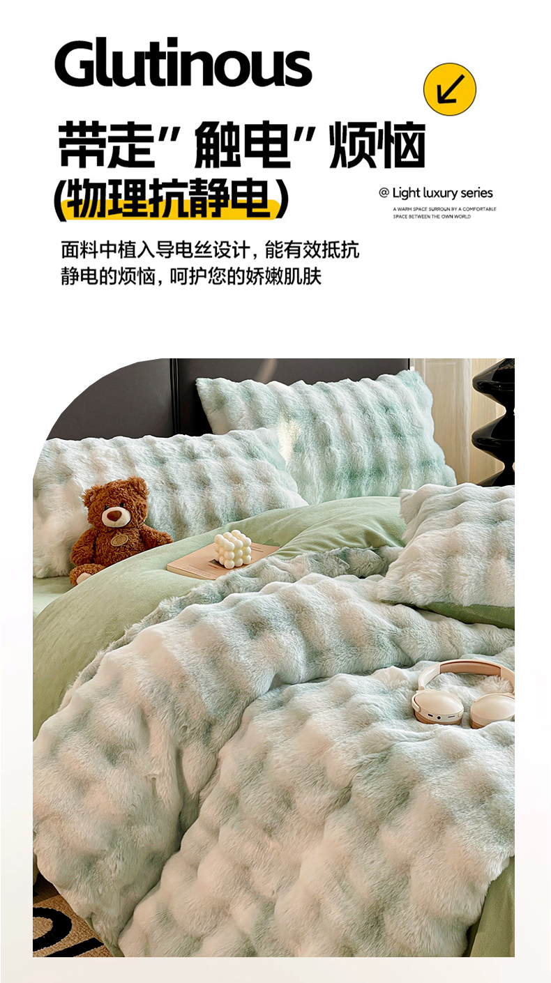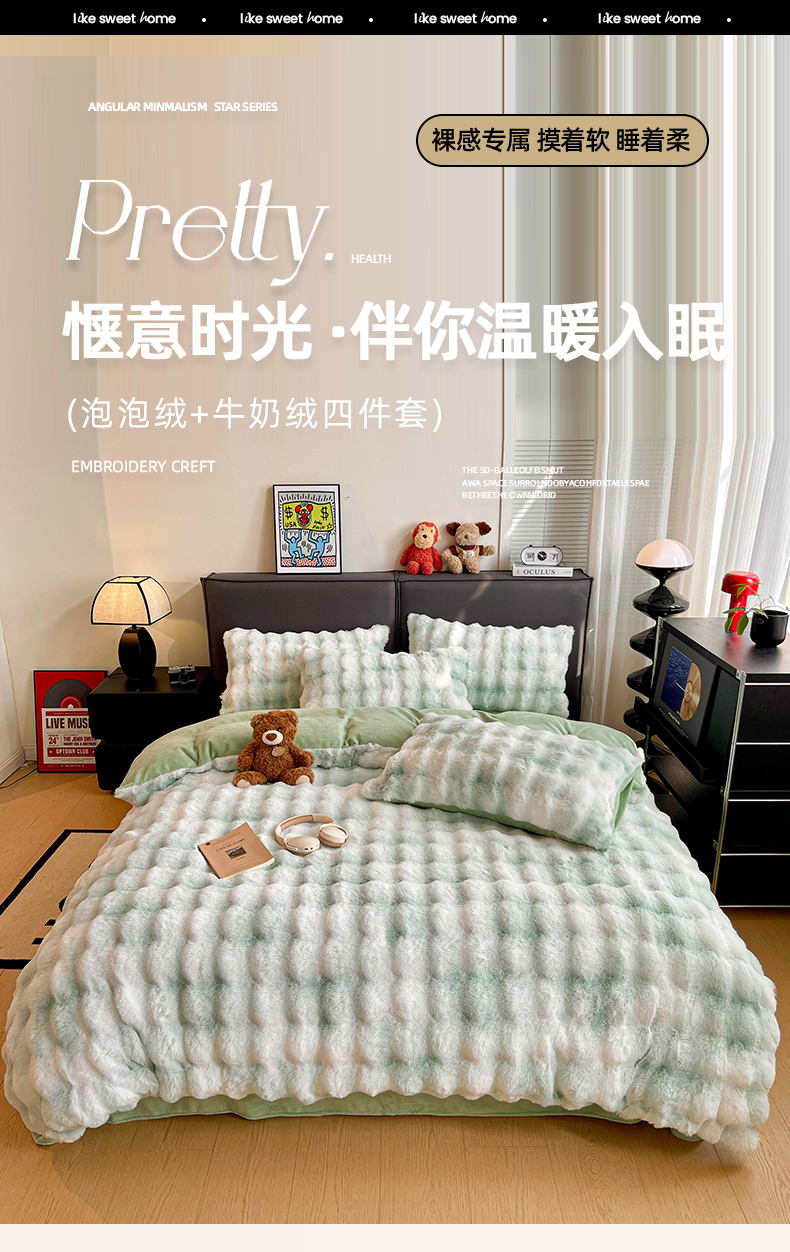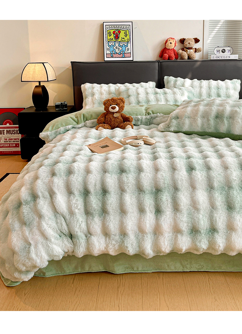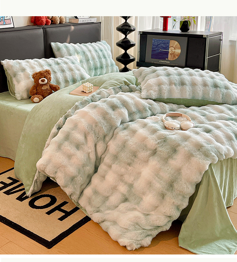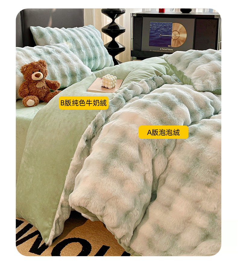 商品名称:凯洛奇 2025新款兔毛绒四件套牛奶绒四件套大泡泡兔毛四件套 迷雾幻境-绿