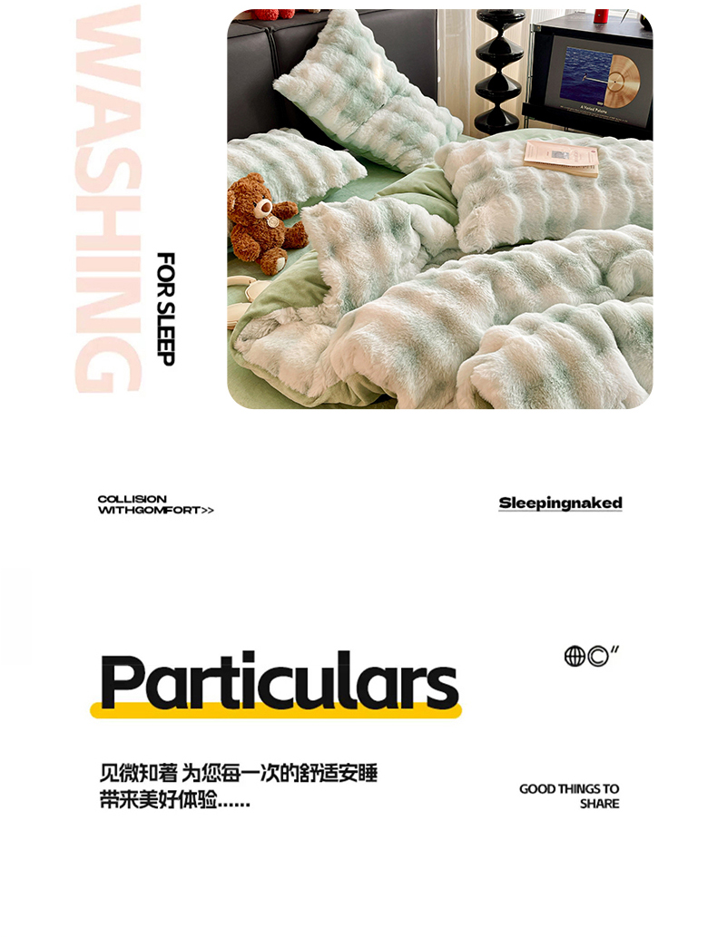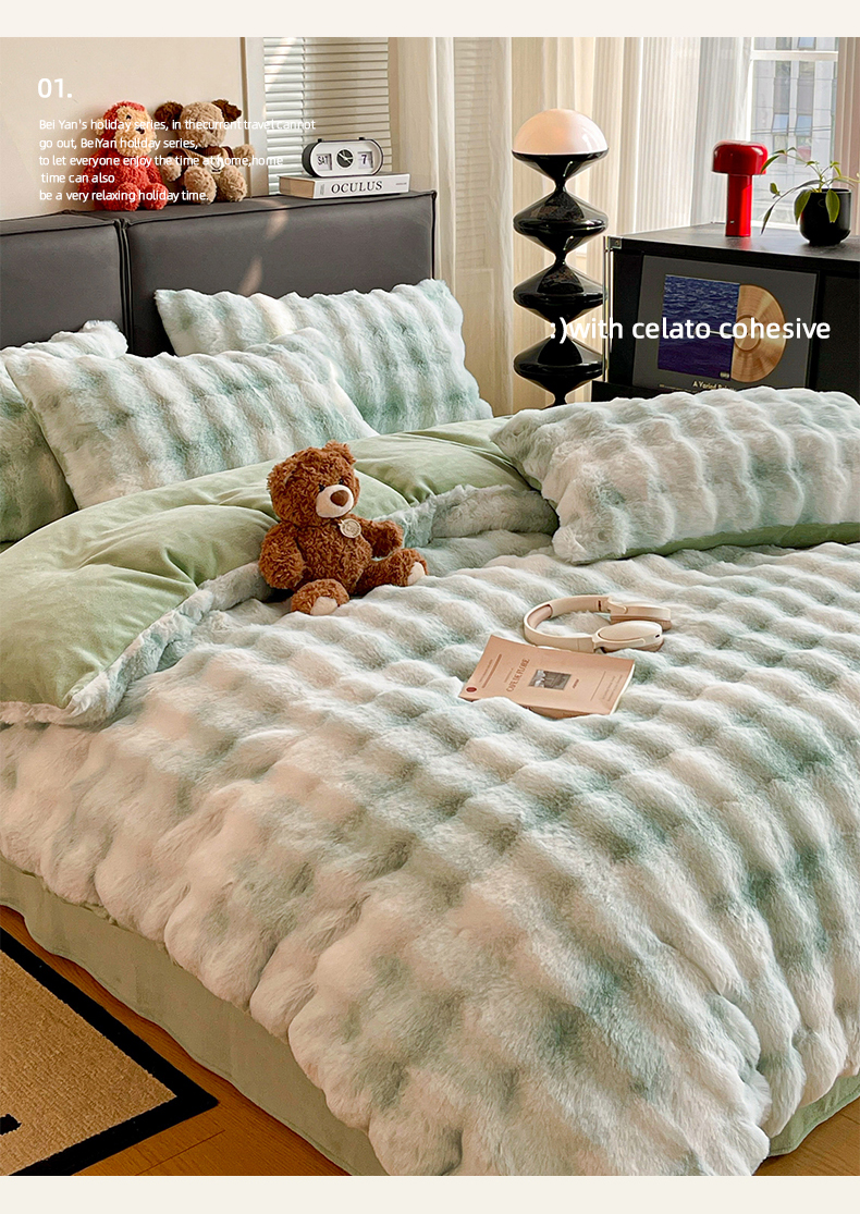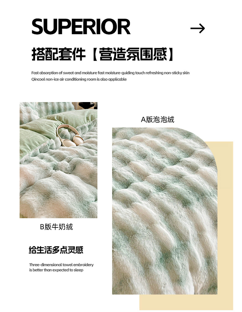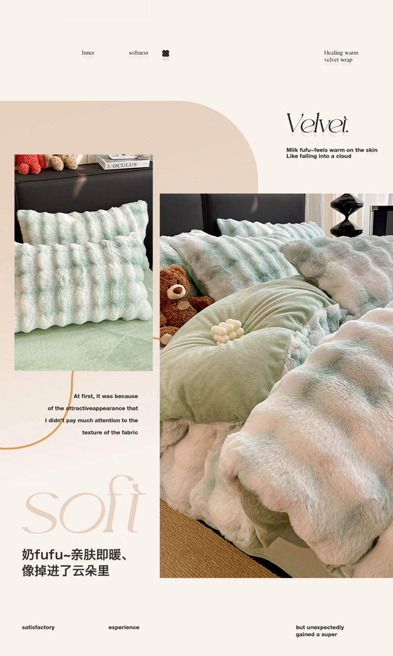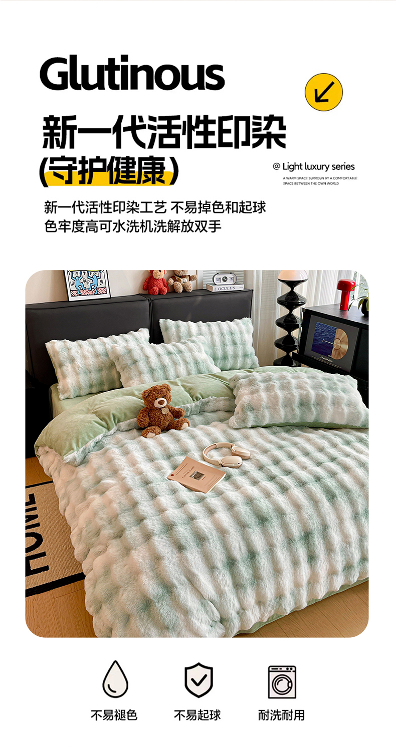 商品名称:凯洛奇 2025新款兔毛绒四件套牛奶绒四件套大泡泡兔毛四件套 迷雾幻境-绿