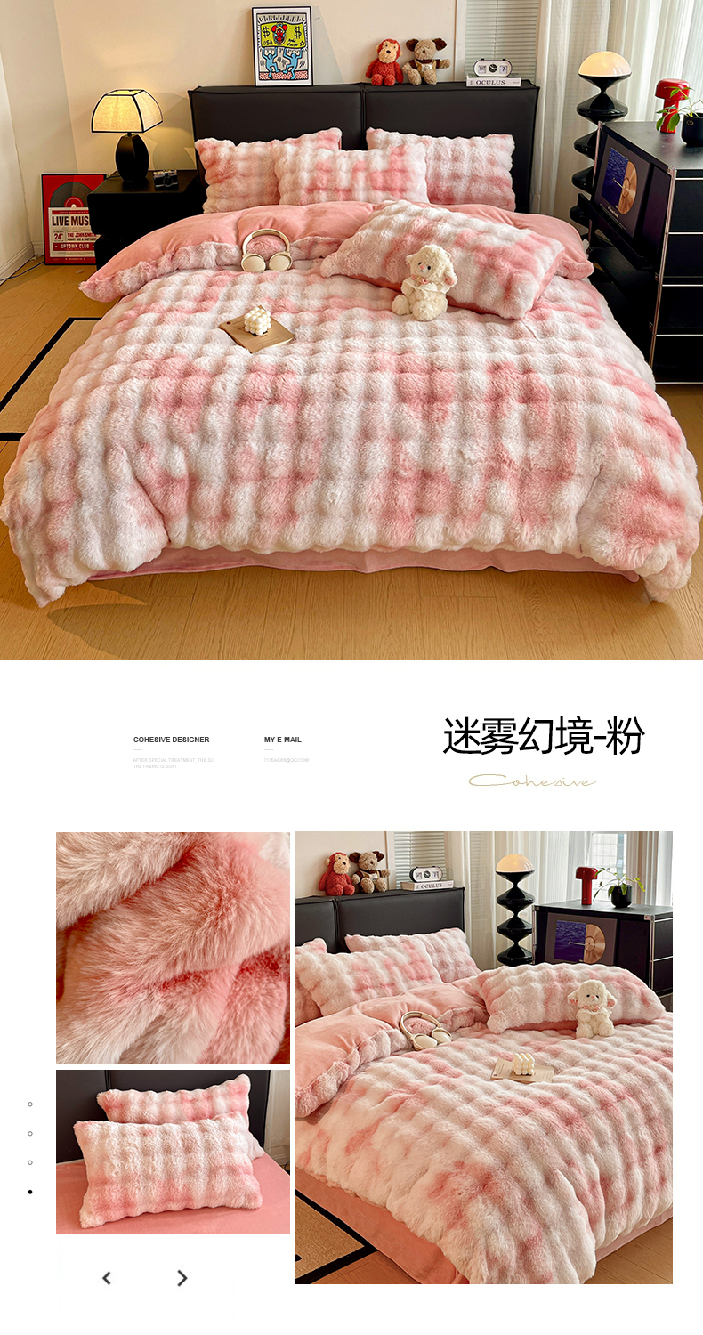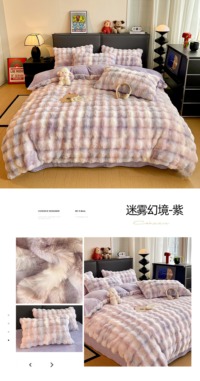 (总)凯洛奇 2025新款兔毛绒四件套牛奶绒四件套大泡泡兔毛四件套,迷雾幻境-粉,迷雾幻境-灰,迷雾幻境-紫,迷雾幻境-绿,浅卡其,迷雾幻境-蓝,奶油白,暗夜灰,月光灰