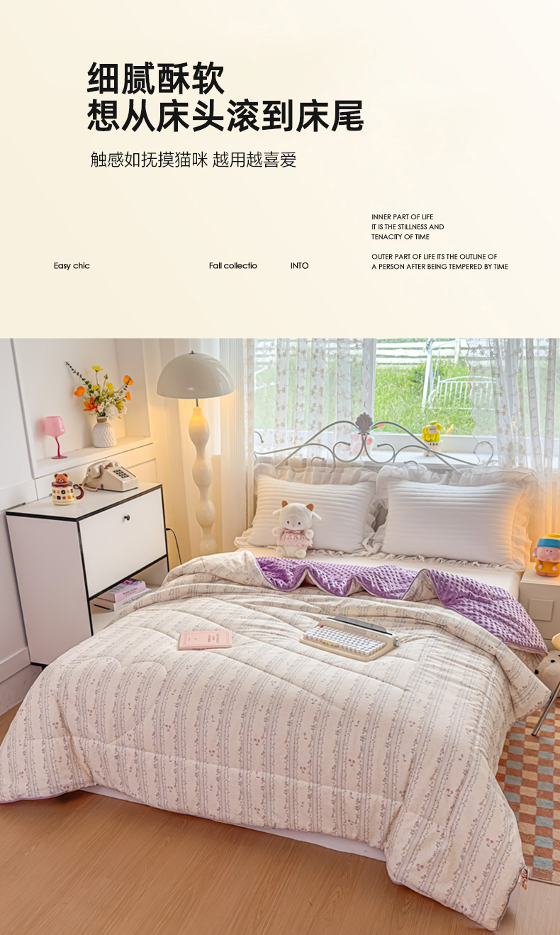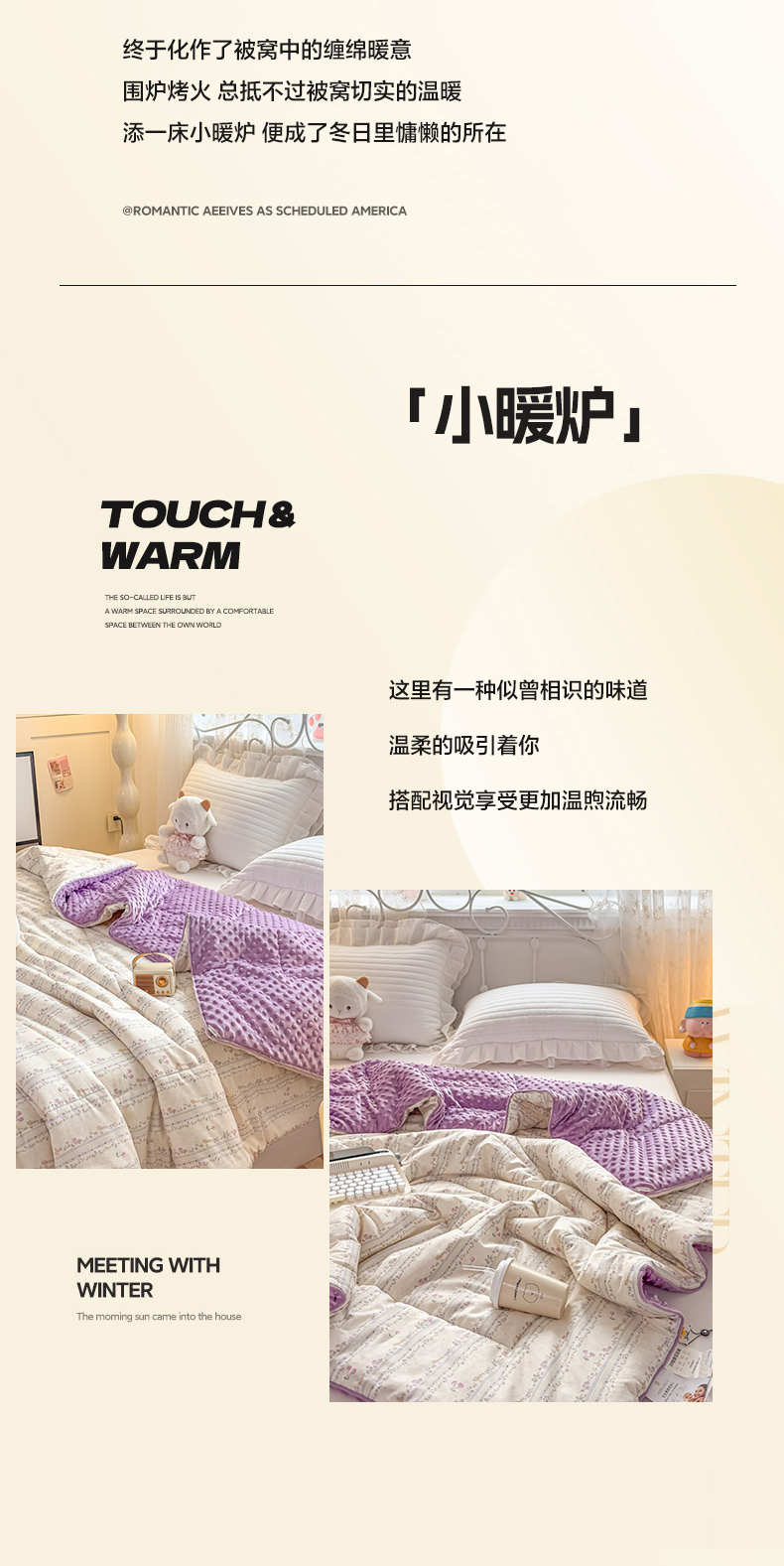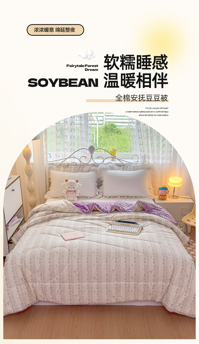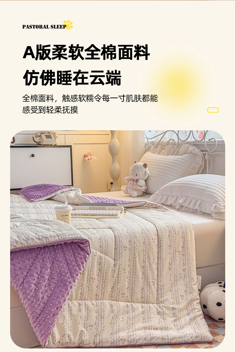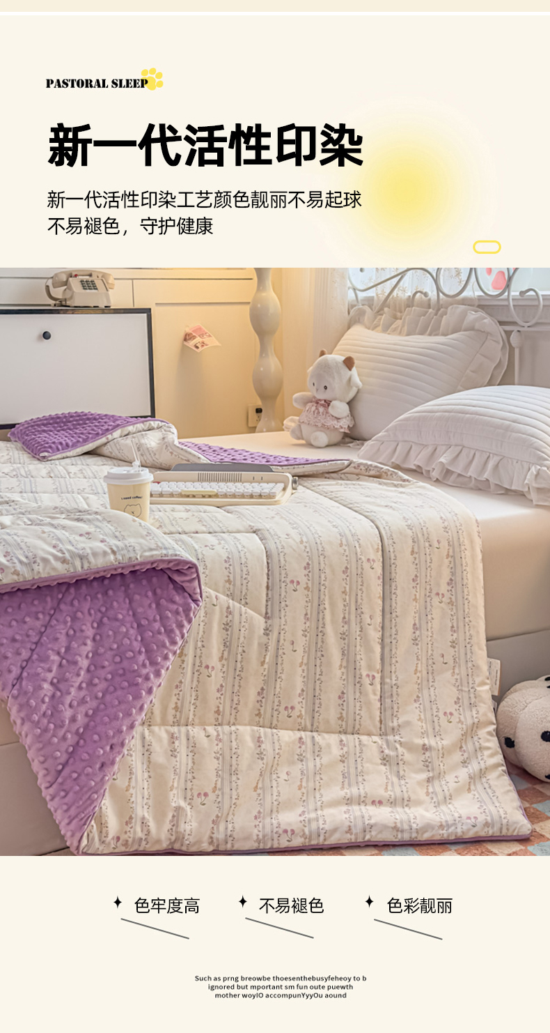 商品名称:青螺家纺 2025新款高密全棉嵌绳宝宝绒春秋豆豆被 支持定制花色和冬被 有量来门市优惠 花季时光