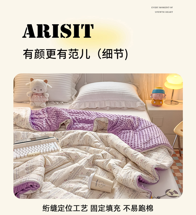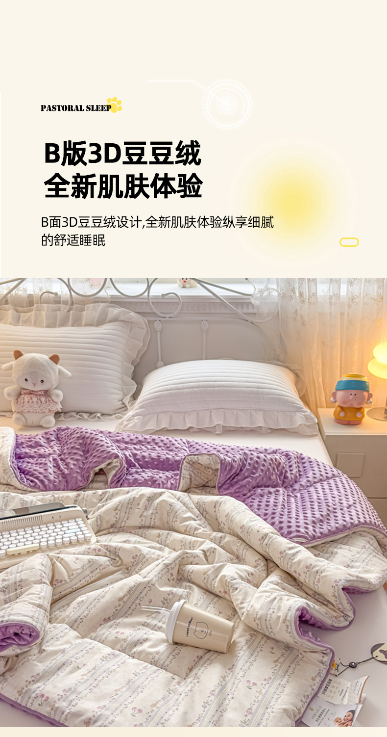青螺家纺 2025新款高密全棉嵌绳宝宝绒春秋豆豆被 支持定制花色和冬被 有量来门市优惠 花季时光